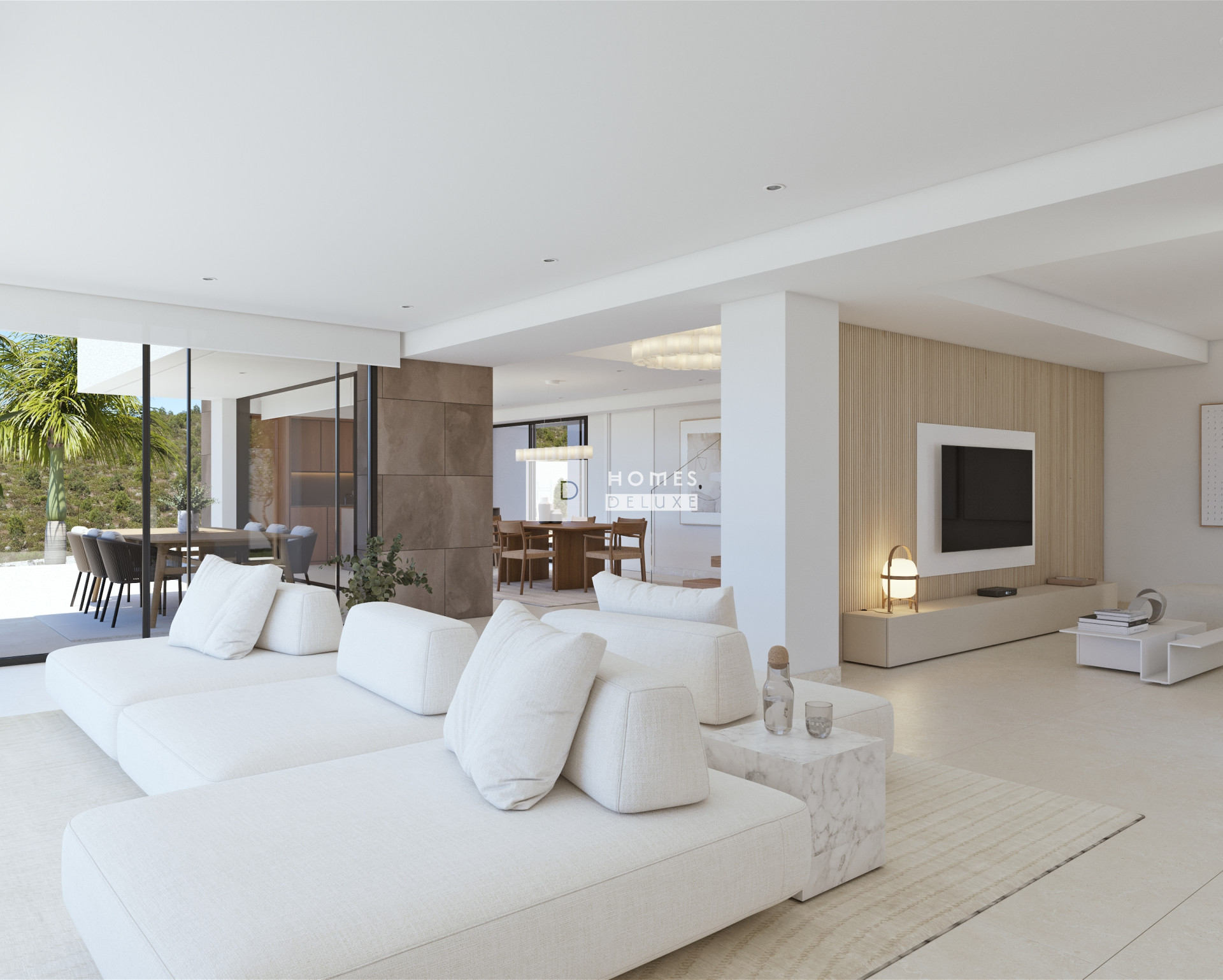 Villa Lavanda, ubicada en la exclusiva parcela 93 de Residencial Jazmines (Cumbre del Sol), representa la fusión perfecta entre diseño moderno, confort y una ubicación privilegiada frente al mar. Una vivienda de lujo pensada para quienes buscan lo mejor de la Costa Blanca norte. El proyecto arquitectónico de Villa Lavanda destaca por su diseño moderno de líneas limpias, volúmenes horizontales, grandes superficies acristaladas y una paleta de materiales naturales que se integran a la perfección con el paisaje. Cada estancia ha sido orientada para maximizar la entrada de luz natural y ofrecer vistas panorámicas ininterrumpidas al mar y al emblemático Peñón de Ifach. La vivienda se distribuye en tres plantas: Planta principal: alberga la impresionante zona de día, con un amplio salón-comedor y cocina abierta con isla central, grandes ventanales que comunican con la terraza exterior, el comedor al aire libre y la piscina infinity. En este nivel también se encuentra el dormitorio principal, con vestidor, baño en suite con bañera exenta, ducha con efecto lluvia y acceso directo a la terraza. Planta alta: espacio reservado para los dormitorios secundarios, todos con baño privado y terrazas desde las que se disfrutan vistas espectaculares al mar. Planta sótano: un espacio diáfano con luz natural que se adapta a múltiples usos – gimnasio, zona de ocio, sala de cine o apartamento de invitados. Incluye también lavadero y trastero. Villa Lavanda está equipada con materiales y acabados de primer nivel, pensados para ofrecer elegancia, funcionalidad y durabilidad: Pavimentos de gran formato de gres porcelánico Cocina de diseño con mobiliario de alta gama y electrodomésticos integrados Encimeras en tonos neutros y cálidos, con iluminación led indirecta Baños de diseño contemporáneo con sanitarios suspendidos, grifería empotrada y espejos retroiluminados Climatización por suelo radiante y aire acondicionado con sistema de zonificación Domótica para control de iluminación, climatización y persianas El exterior de la vivienda ofrece una experiencia mediterránea total. La piscina infinity se fusiona visualmente con el mar, mientras que la terraza, amueblada con zonas chill-out, comedor exterior y tumbonas, invita a disfrutar de cada atardecer. La planta alta cuenta también con una terraza solárium con jacuzzi privado, donde relajarse con vistas panorámicas al litoral. Villa Lavanda forma parte de Residencial Jazmines, una zona de lujo en la urbanización Cumbre del Sol, en Benitachell, entre Jávea y Moraira. Se trata de una de las localizaciones más codiciadas del Mediterráneo, con seguridad privada, servicios exclusivos, colegio internacional, restaurantes, zonas deportivas y acceso a la espectacular Cala del Moraig. Villa Lavanda es perfecta para quienes buscan una residencia principal de alto standing, una segunda vivienda para disfrutar del clima mediterráneo todo el año, o una propiedad de inversión exclusiva en una ubicación consolidada y de alto valor añadido.