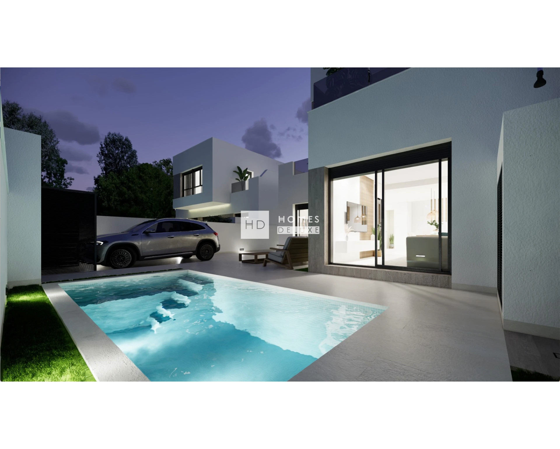 Un nuevo proyecto de 7 villas independientes orientadas al sur con 3 dormitorios, 2,5 baños y piscina privada, situadas en la localidad de San Fulgencio (Alicante), a solo 300 metros del centro del pueblo, con todos los servicios, y a solo 4 km de las hermosas playas de Guardamar del Segura.