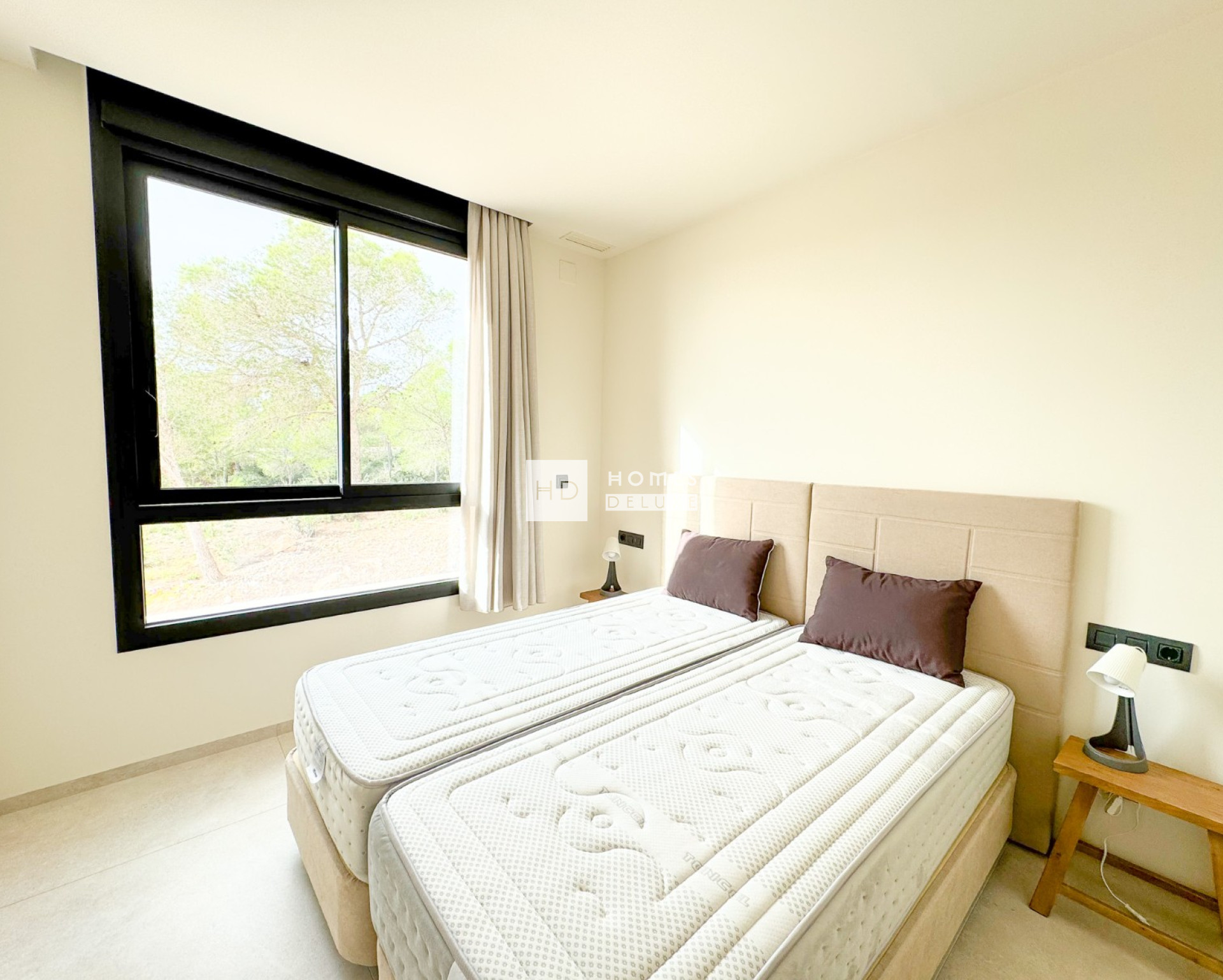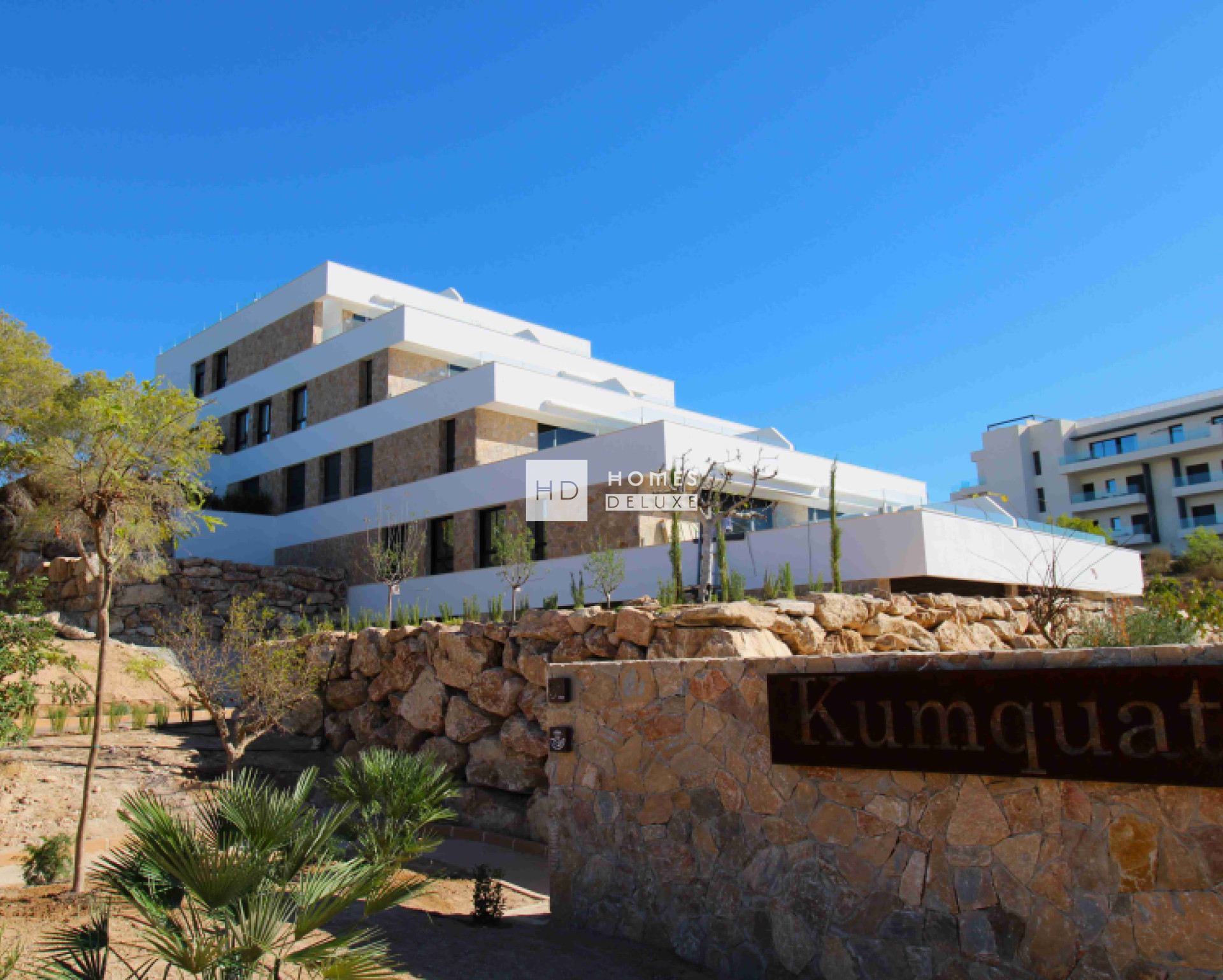 Apartamento moderno "Kumquat" de 3 dormitorios, amplia terraza, cerca del campo de golf en Las Colinas Golf. Acabados de calidad, garaje y trastero con cada unidad. Rodeado de reserva natural y bosque mediterráneo con orientación sur, suroeste. Este apartamento se vende completamente amueblado, incluidos todos los electrodomésticos en la cocina, A/C frío/calor y calefacción por suelo radiante eléctrico en ambos baños. Acceso por ascensor a la propiedad, así como a la piscina y al garaje/trastero. Vistas abiertas al bosque y al mar, incluida La Manga.