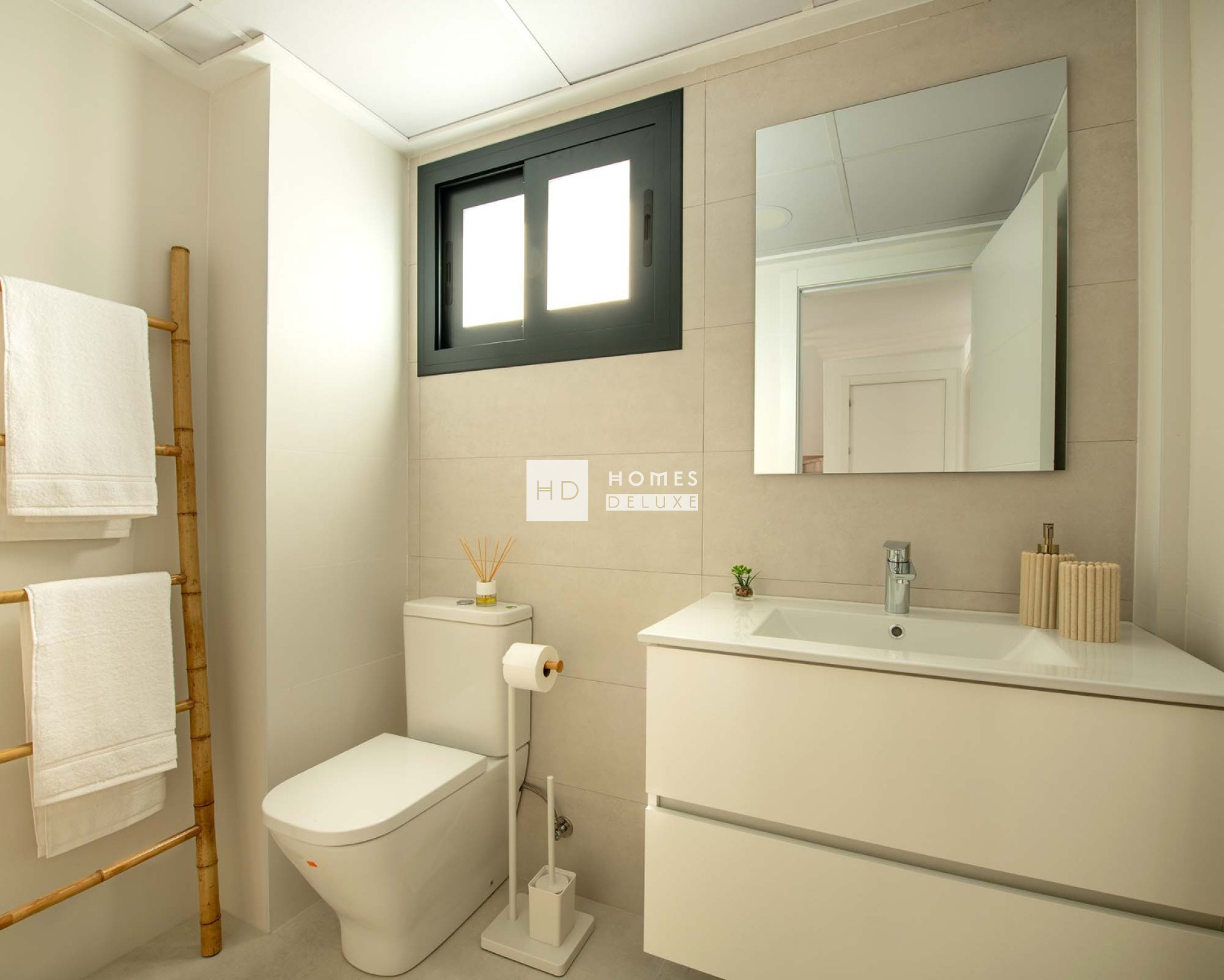 Cada propiedad disfruta de un amplio espacio exterior, los apartamentos pueden elegir entre plantas bajas con jardín privado o plantas superiores con solárium privado en la azotea. Las casas adosadas cuentan con un amplio jardín privado y un solárium en la azotea para disfrutar al máximo de la vida al aire libre en España. Además, los residentes pueden disfrutar de las preciosas zonas comunes ajardinadas con césped artificial y una gran piscina comunitaria.