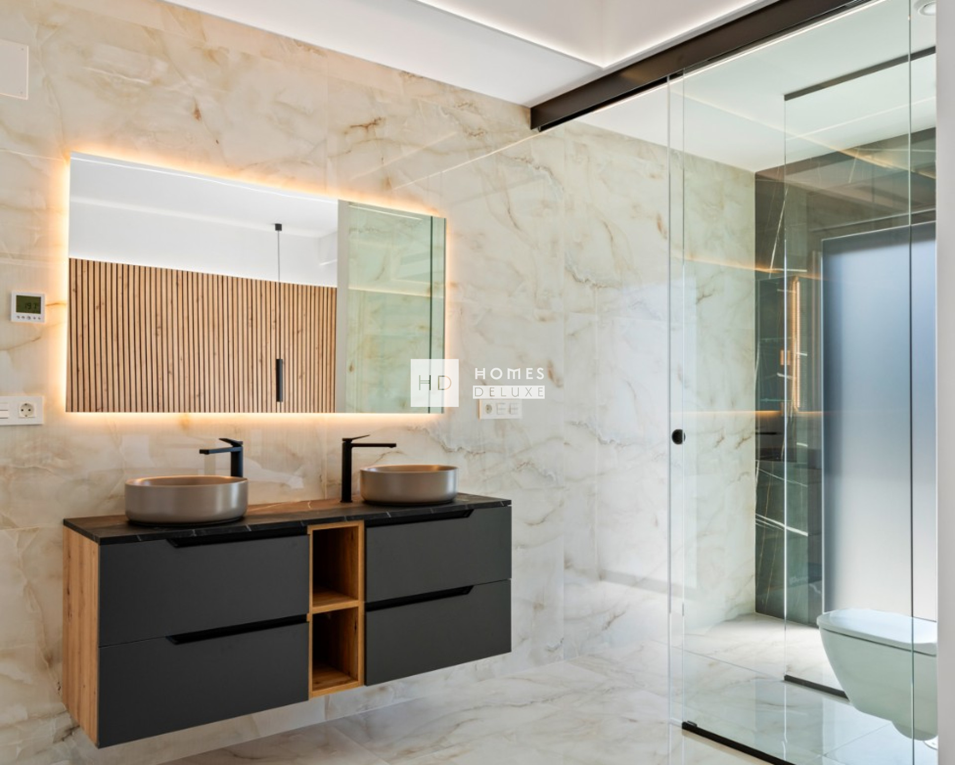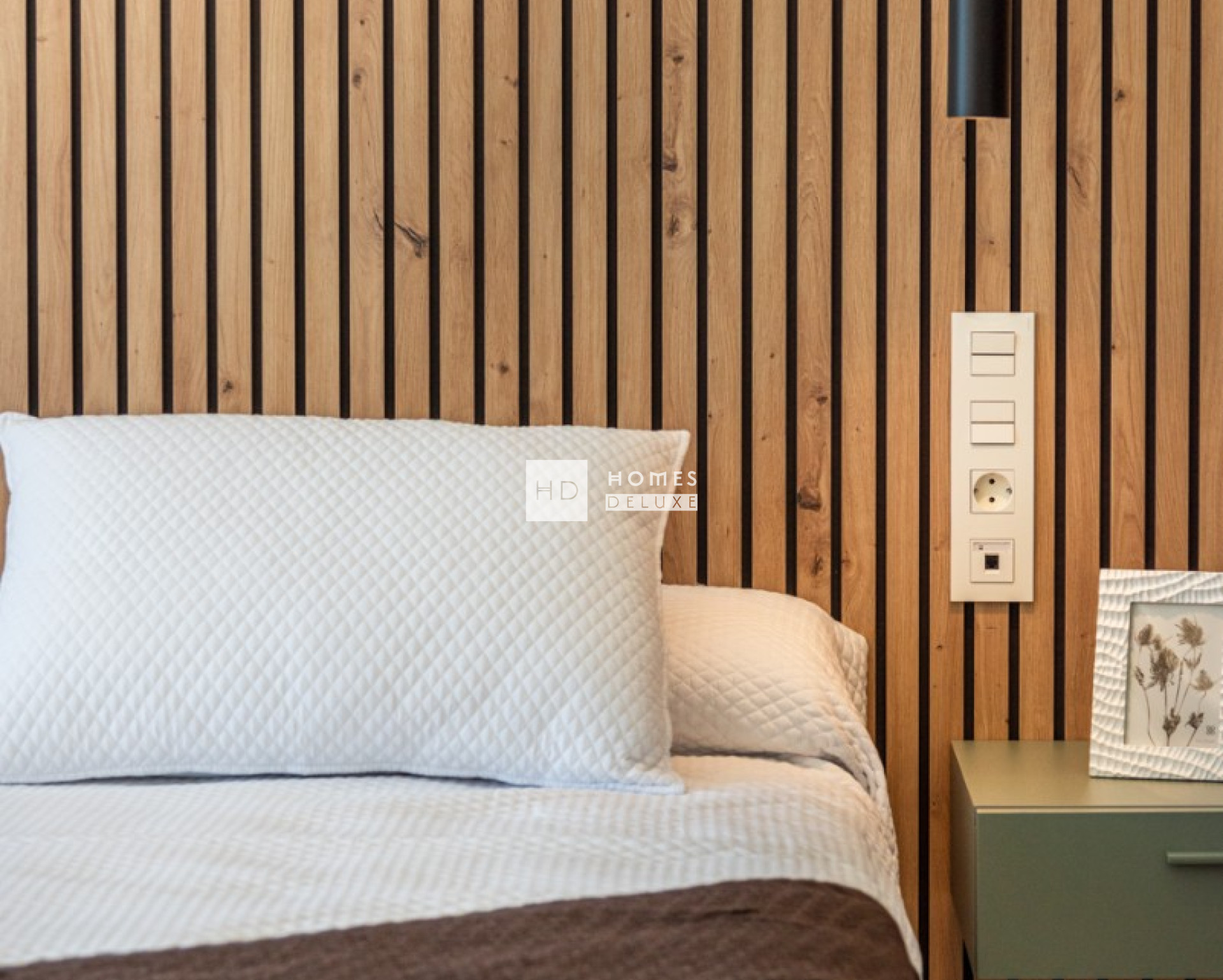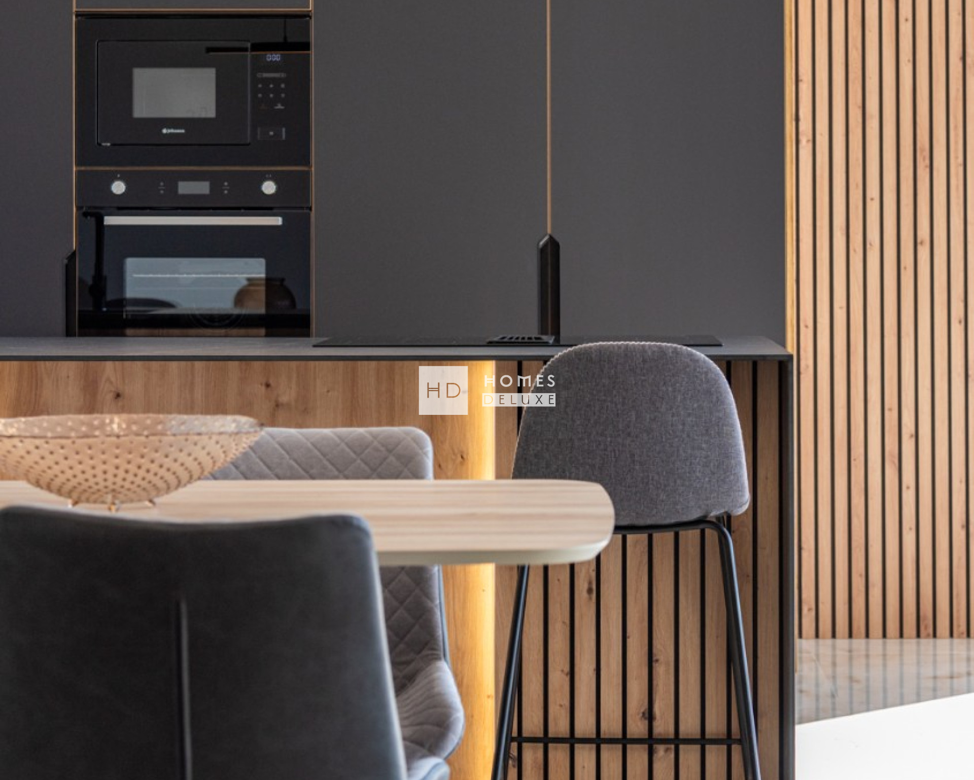Tras el éxito del primer proyecto, el constructor ha mantenido el mismo estilo, materiales y estándares de calidad que en la promoción anterior, al tiempo que ha incorporado mejoras clave que proporcionan una experiencia superior y un mayor confort diario, todo ello conservando su distintivo sello de diseño y calidad. Entre las novedades más destacadas se encuentra la cocina rediseñada, ahora con mayor capacidad de almacenamiento y una práctica zona de desayuno que hace mucho más cómodo el uso diario. También se ha actualizado el diseño de las paredes de listones en el salón y el dormitorio principal, combinando madera con materiales con efecto mármol para crear un estilo más elegante y contemporáneo.