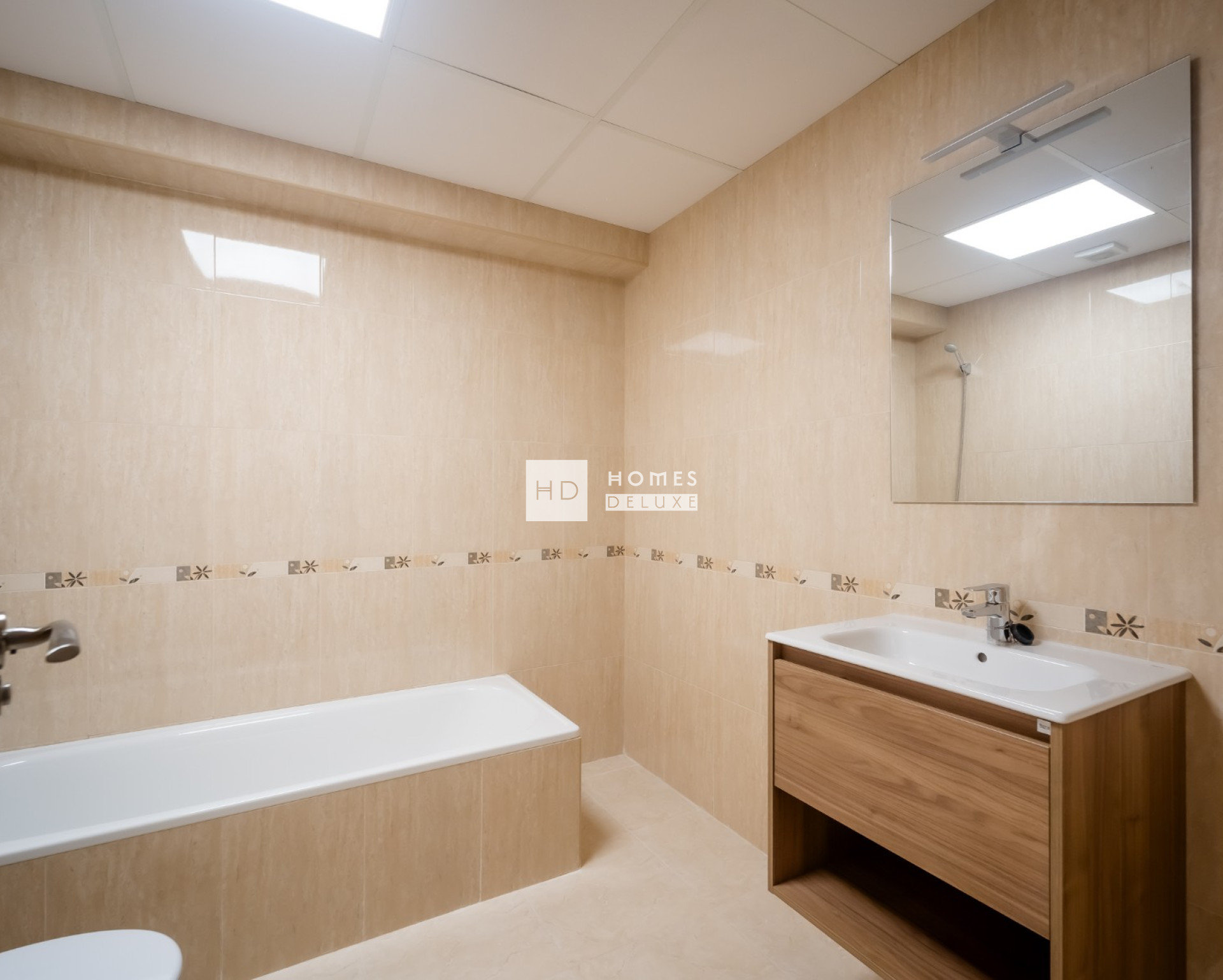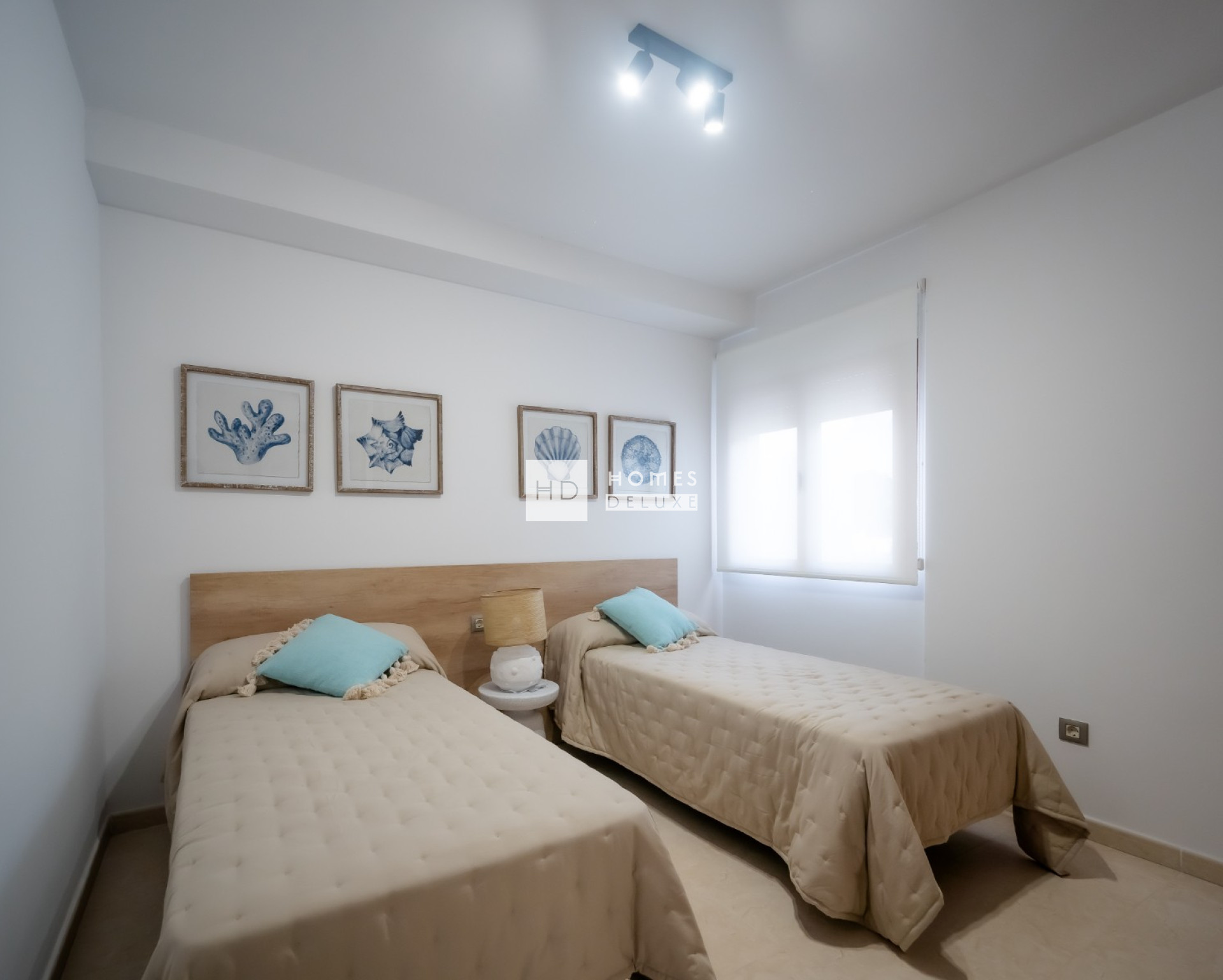 Los interiores son elegantes y funcionales, y la distribución incluye un amplio salón-comedor diáfano con una cocina independiente totalmente equipada con armarios altos y bajos blancos y encimera de granito. El amplio dormitorio principal incluye un cuarto de baño en suite y un vestidor. Hay otro dormitorio doble de buen tamaño y un cuarto de baño independiente para invitados. Todos los apartamentos acceden a sus soláriums privados a través de la escalera comunitaria.