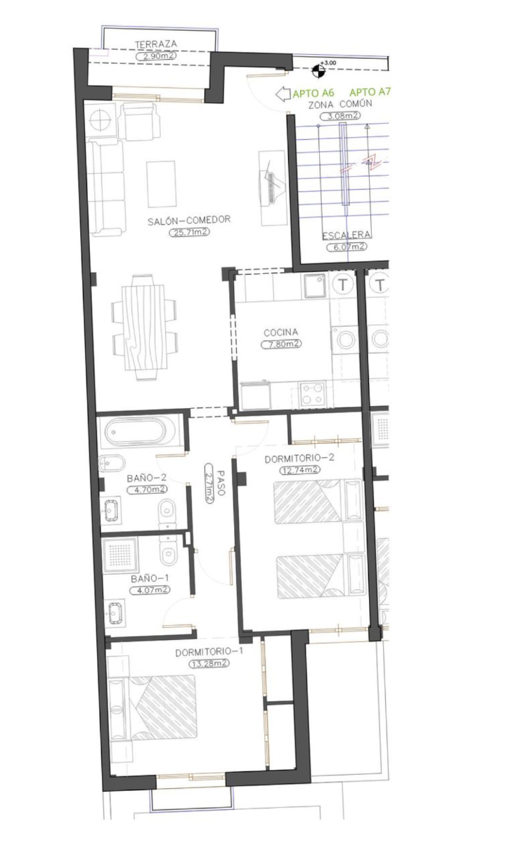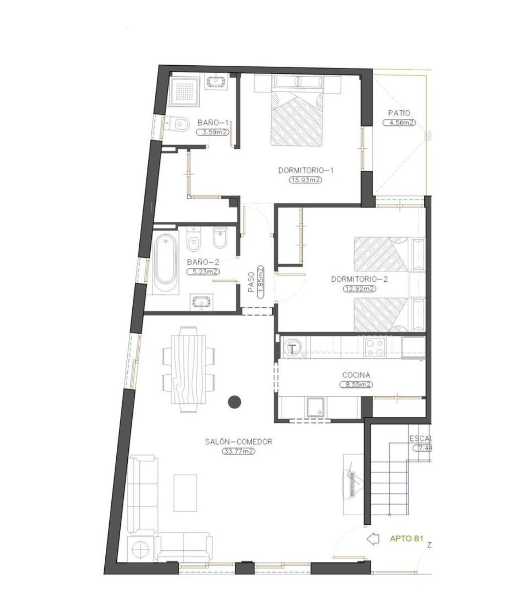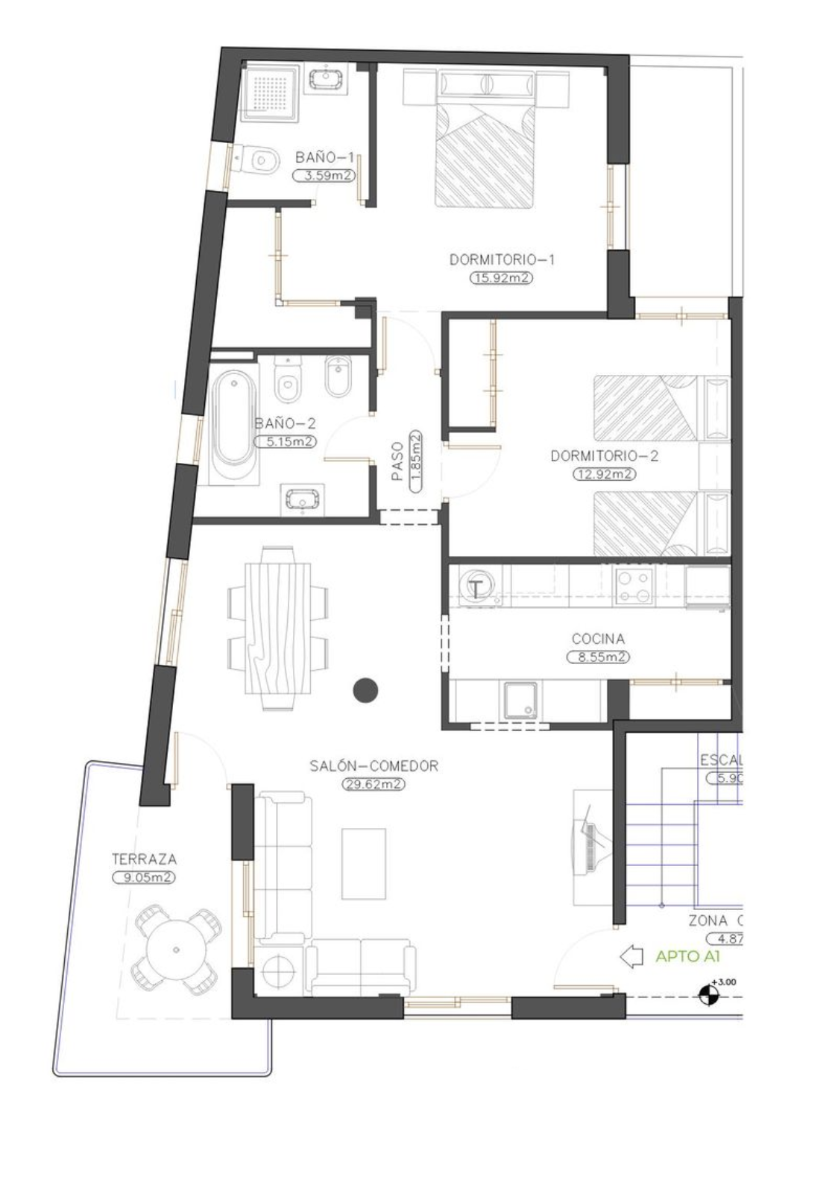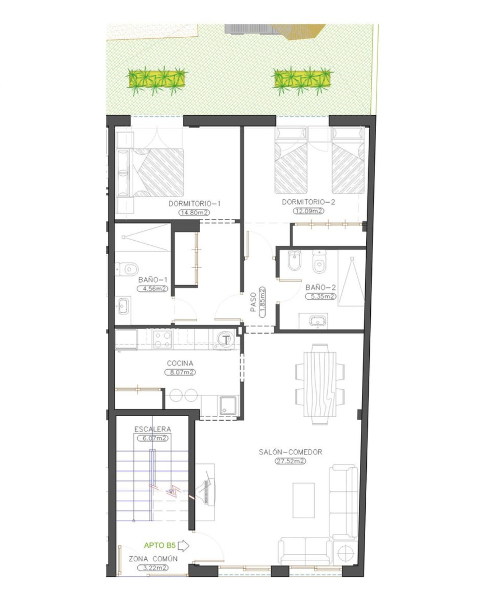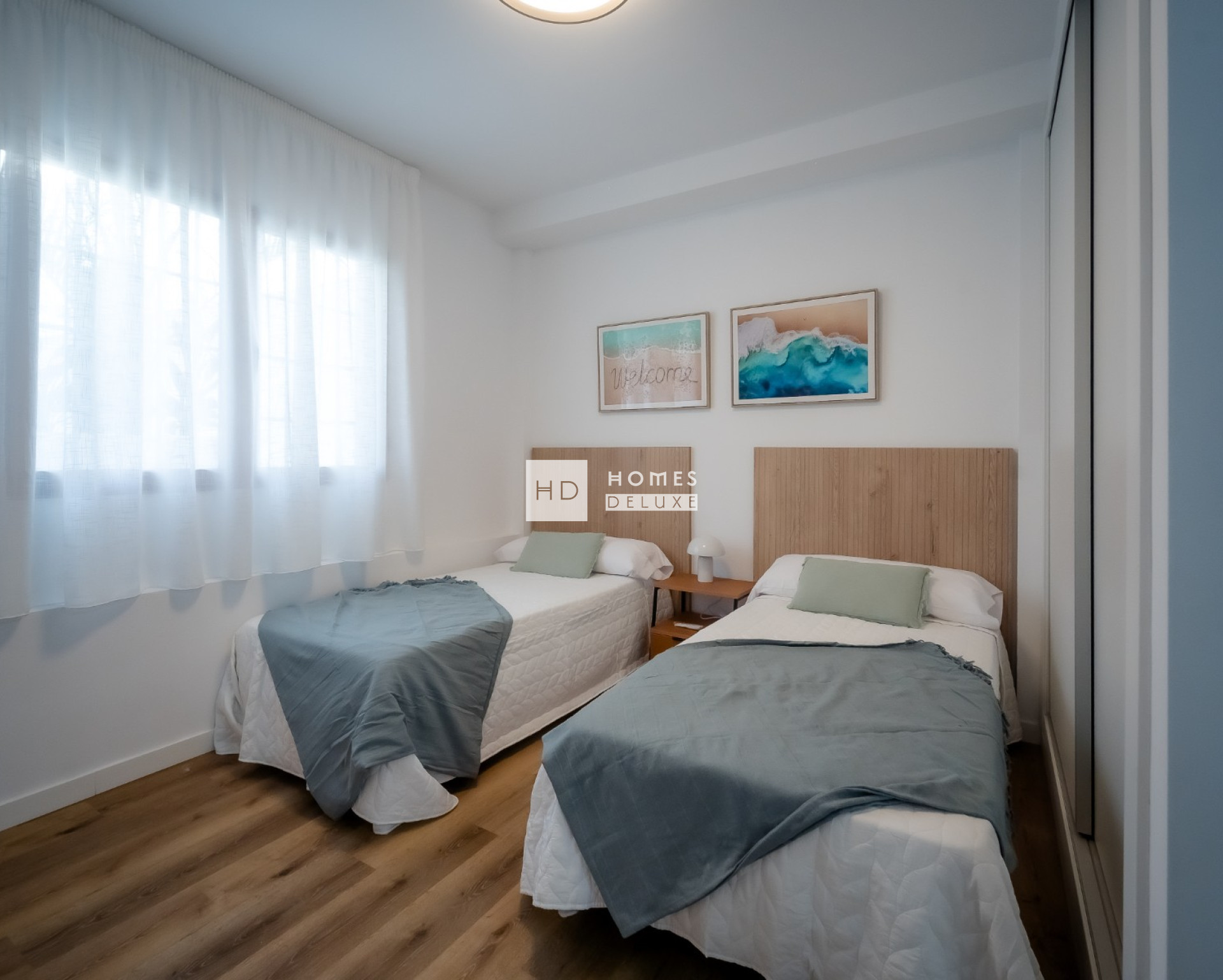 El proyecto ofrece la posibilidad de elegir entre apartamentos en planta baja o en la última planta, todos con 2 dormitorios y 2 baños, y una gran azotea para disfrutar del sol y de las vistas todos los días del año, así como aparcamiento subterráneo y trastero. Los residentes pueden disfrutar de una piscina comunitaria y una zona de descanso con césped artificial.