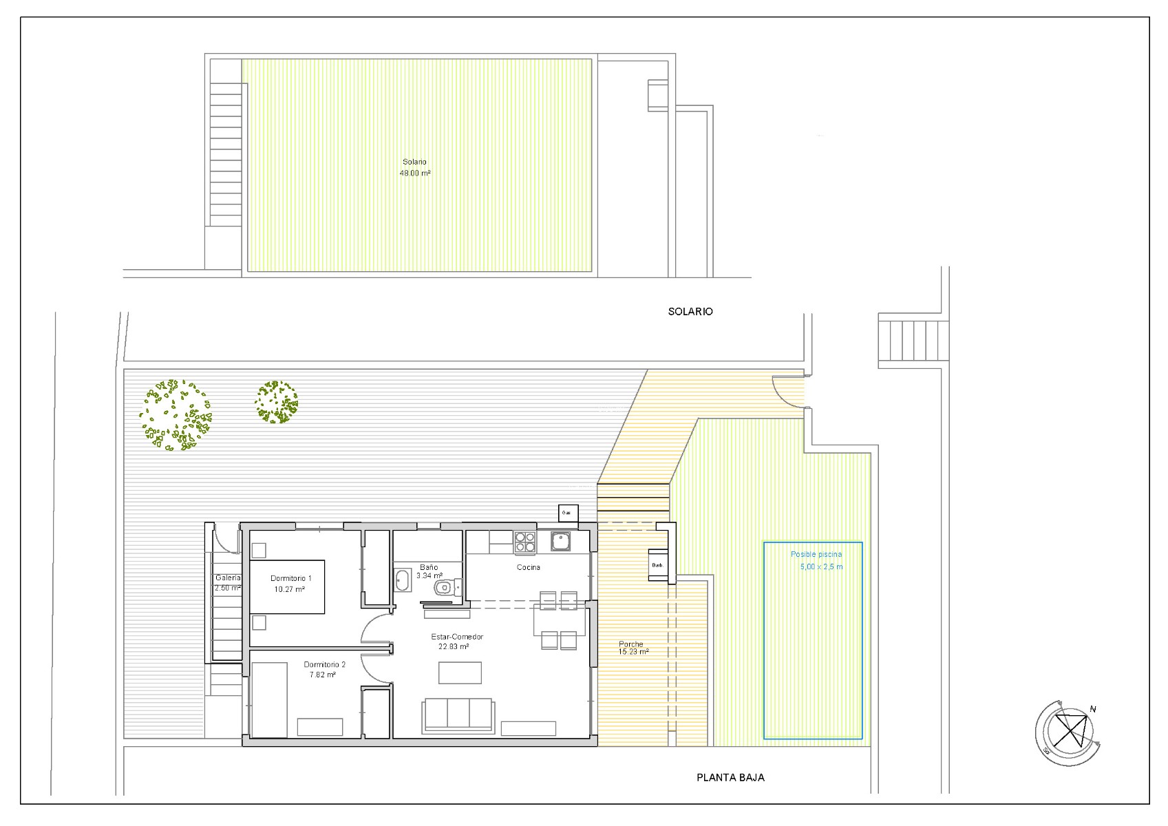 Esta vivienda cuenta con dos dormitorios, perfectos para tu familia o como espacio de trabajo. El cuarto de baño completo está equipado con ducha y una moderna mampara. La cocina, totalmente nueva, está equipada con electrodomésticos de última generación, incluyendo lavadora y lavavajillas, lista para que empieces a disfrutarla desde el primer día. El suelo laminado con efecto madera aporta calidez y un toque elegante a toda la vivienda. Las puertas, ventanas y paredes tienen un acabado en blanco. Las ventanas y puertas cuentan con tecnología de rotura de puente térmico, y la casa cuenta con suelo laminado en el interior y pavimento cerámico con efecto madera en el exterior.
