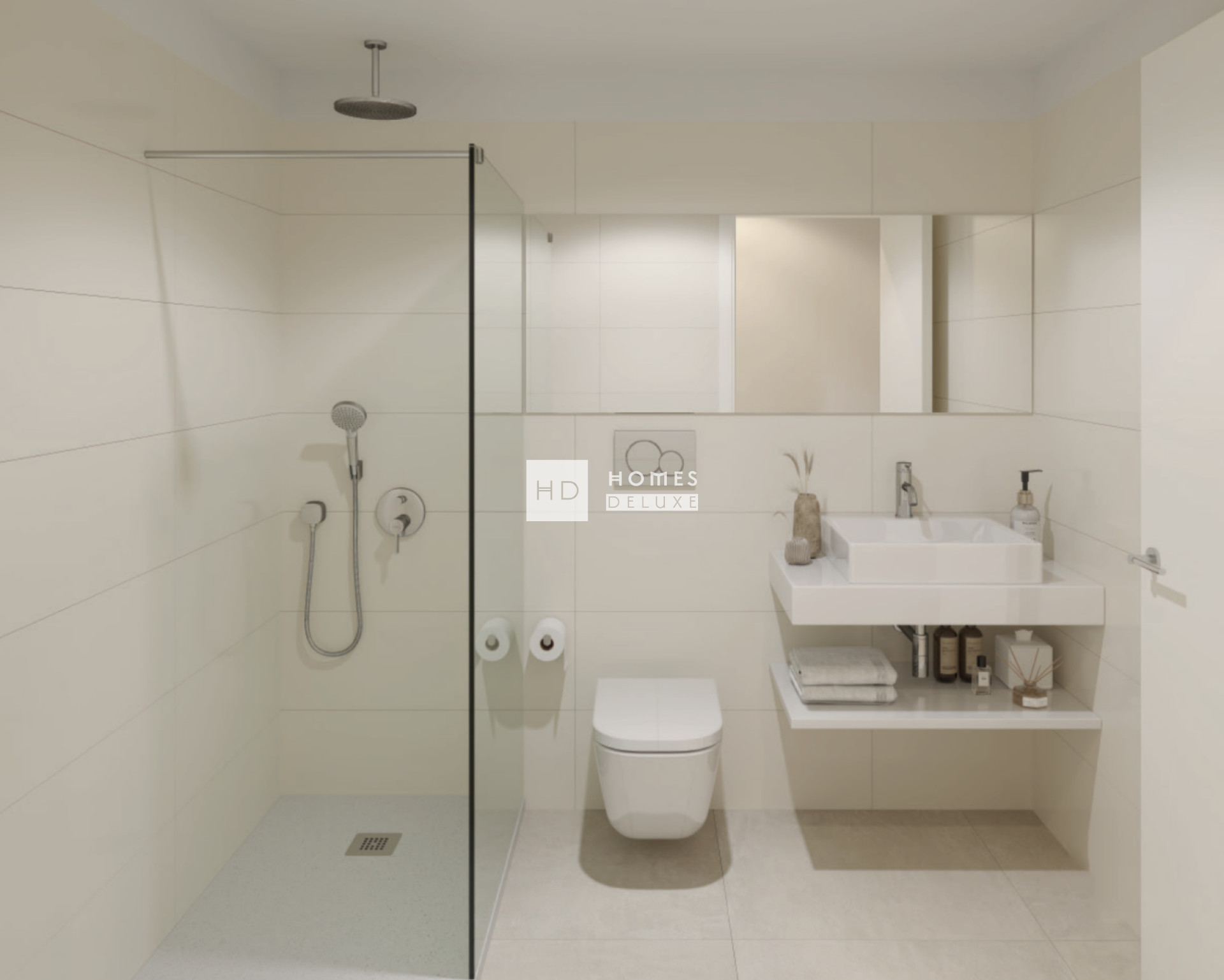 Se puede elegir entre apartamentos en la planta baja con jardín privado y terraza en la parte delantera y trasera de la propiedad, y apartamentos en la última planta con un gran solárium privado en la azotea con vistas panorámicas a las salinas de Torrevieja. Ambos modelos aprovechan al máximo el espacio exterior. Algunos de los apartamentos tienen un sótano que amplía aún más el espacio habitable. La distribución interior consta de un salón-comedor diáfano, amplio y luminoso, con grandes ventanales que dan a la terraza. Dentro de la sala de estar principal hay una moderna cocina de estilo americano con armarios bajos y altos, y hay una zona separada dedicada a la lavadora y al calentador de agua. El amplio dormitorio principal incluye un cuarto de baño en suite y un vestidor. Hay otros dos dormitorios dobles de buen tamaño y un cuarto de baño independiente para invitados. Los apartamentos de la planta superior tienen una escalera exterior en la terraza delantera que conduce a la amplia azotea de 82 m2. Las propiedades incluyen preinstalación de aire acondicionado, armarios empotrados en todos los dormitorios, iluminación LED exterior, persianas eléctricas y aparcamiento subterráneo privado y trastero.