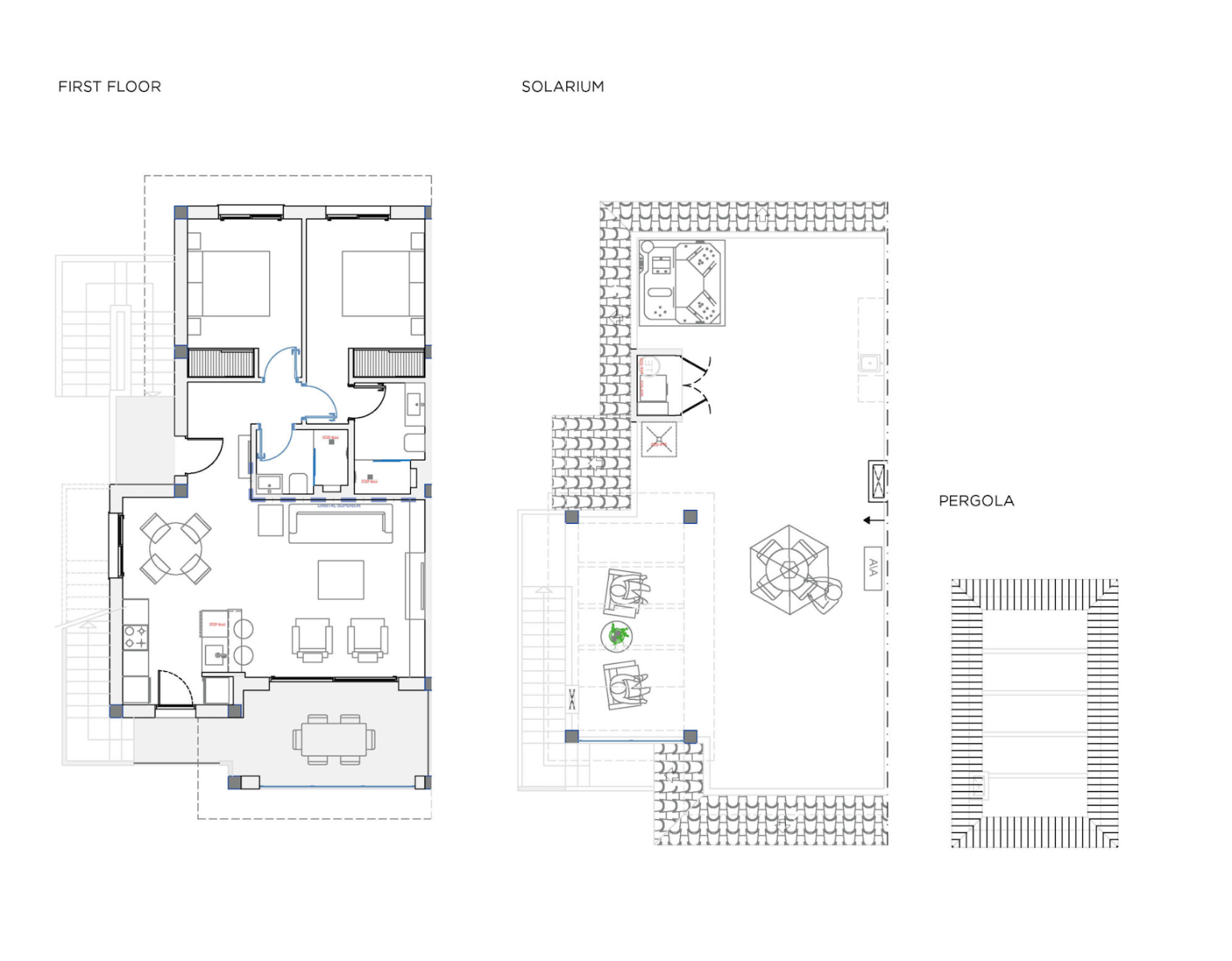 Descubre la distinción en cada detalle con estos apartamentos de 2 o 3 dormitorios y 2 baños, cuyos espacios han sido meticulosamente diseñados para ofrecer una experiencia de vida sofisticada. El amplio salón-comedor con cocina abierta proporciona un ambiente acogedor y contemporáneo para disfrutar de momentos inolvidables con la familia y los amigos. Los apartamentos se distinguen por sus amplios jardines privados o soláriums en la azotea, que le ofrecen un espacio al aire libre para relajarse y disfrutar de la privacidad. Además, cada apartamento incluye una plaza de aparcamiento, lo que garantiza la comodidad y la seguridad de los residentes. Sumérjase en la serenidad de su espléndida piscina comunitaria, la pieza central de sus cuidadas zonas comunes. Este oasis le invita a relajarse y a crear vínculos sociales en un entorno tranquilo y armonioso.