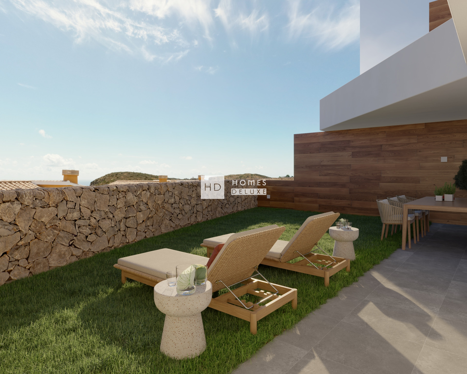 Montecala Gardens destaca por su diseño moderno, funcional y sostenible. Cada bloque cuenta con un número reducido de viviendas, solo cinco apartamentos por edificio, lo que garantiza privacidad y tranquilidad. Las viviendas ofrecen amplias terrazas, jardines privados o solárium, según el modelo, y unas vistas abiertas que potencian la conexión con el entorno natural que lo rodea.