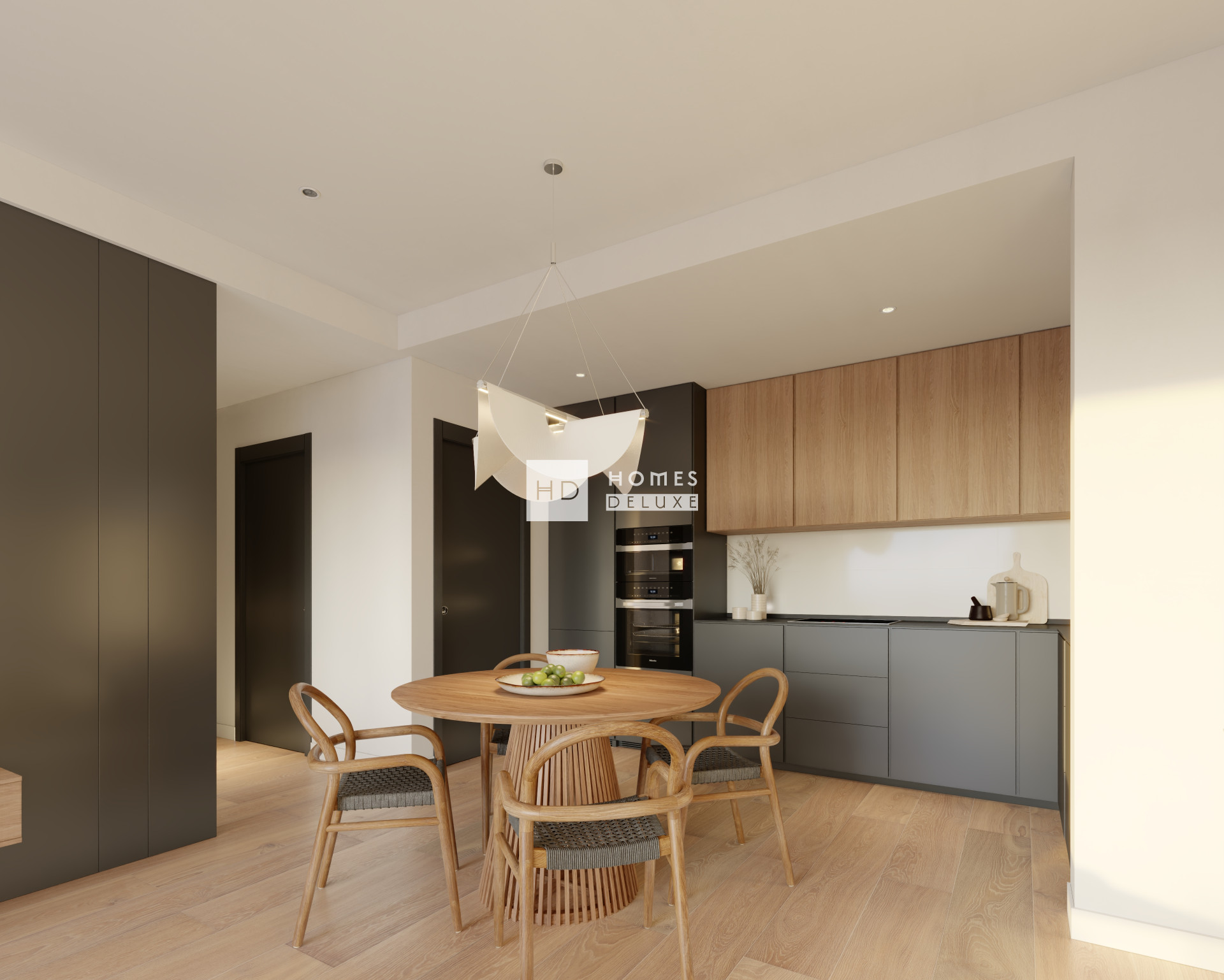 Los apartamentos están completamente equipados, con una distribución que aprovecha al máximo el espacio y la luz natural. Se ofrecen con dos y tres dormitorios y dos baños, cocina abierta al salón, terraza, y acabados de alta gama. Además, incluyen sistemas de climatización por conductos, calefacción por suelo radiante, ventilación permanente, sistema híbrido de aerotermia y carpintería de aluminio con rotura de puente térmico, lo que se traduce en una alta eficiencia energética.