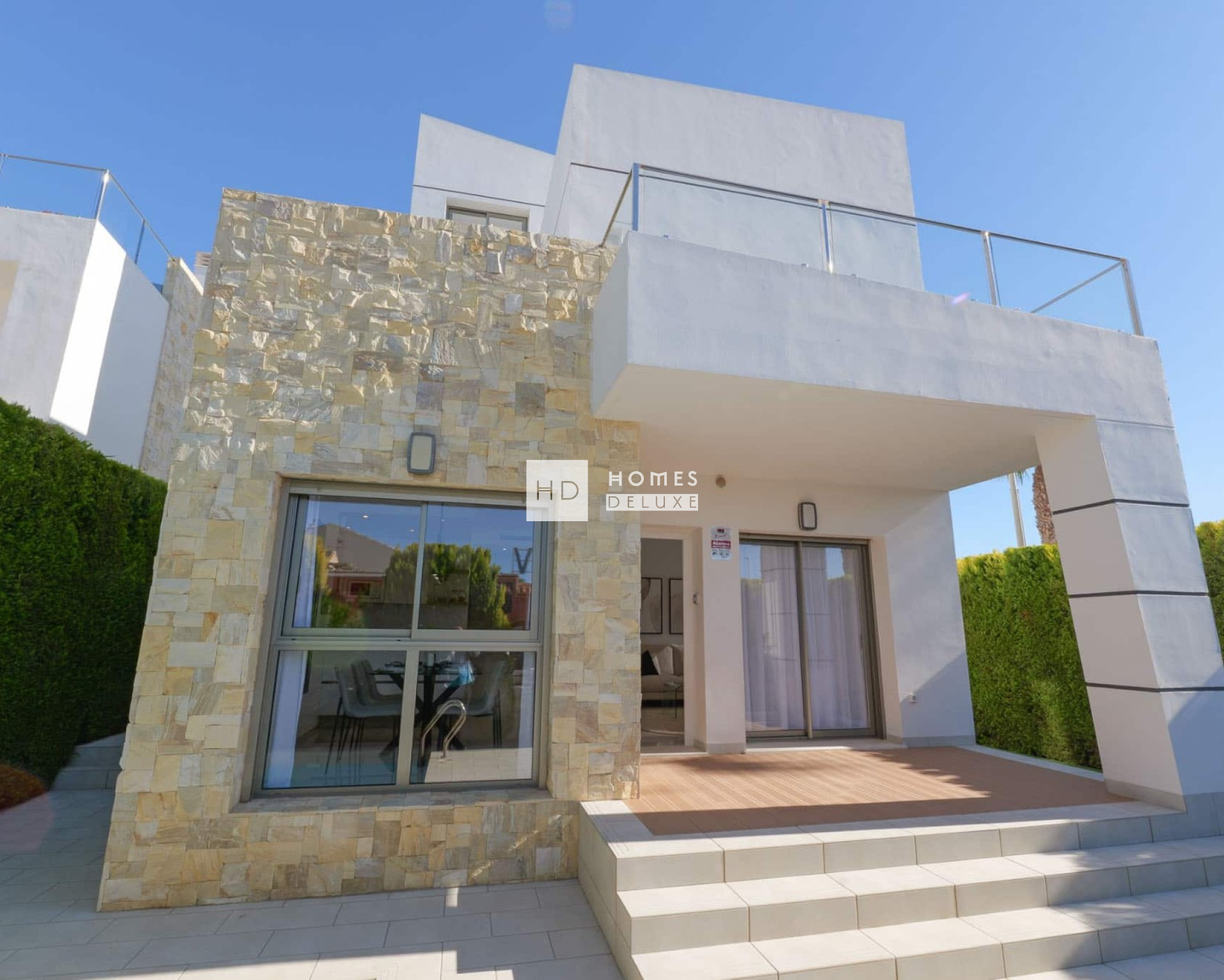 Estas maravillosas villas están construidas con estándares de calidad, acabados de lujo y un diseño contemporáneo con paredes de piedra. Los exteriores aprovechan al máximo la vida al aire libre en España con un precioso jardín privado y una acogedora piscina privada con zonas para relajarse y descansar. Ampliando aún más el espacio exterior, hay una terraza en la primera planta, así como un amplio solárium en la azotea de 30 m², que permite disfrutar del sol durante todo el día. Las villas incluyen un garaje privado, así como aparcamiento independiente en la parcela.