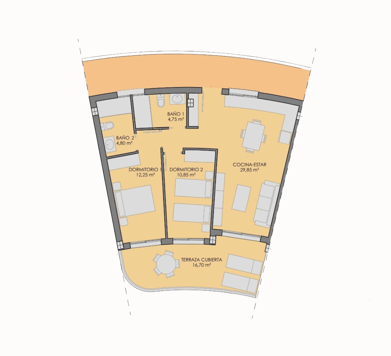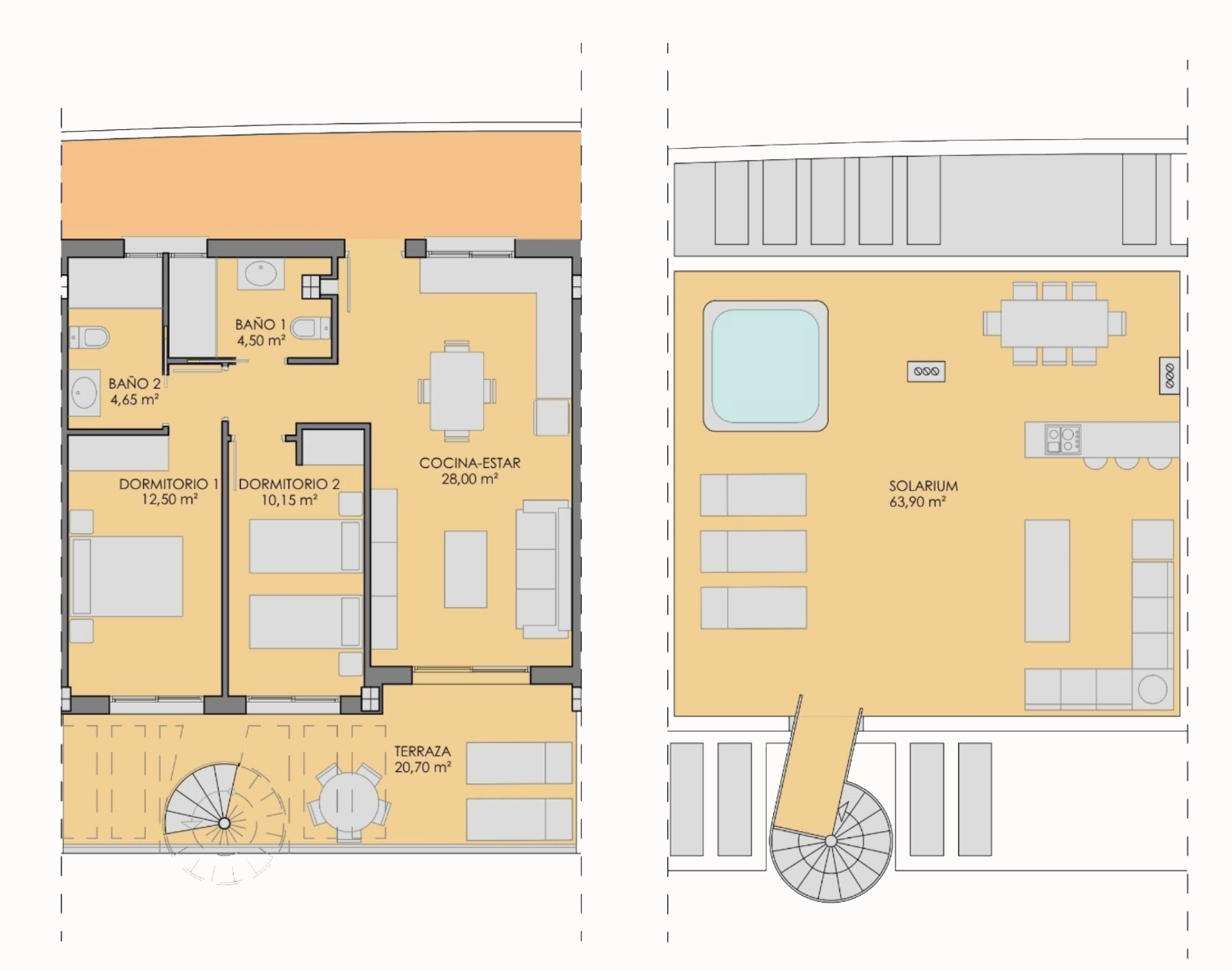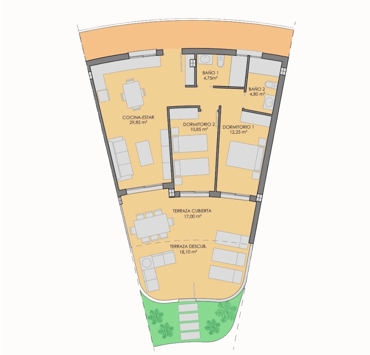 Apartamentos con piscina comunitaria cerca del campo de golf y del mar