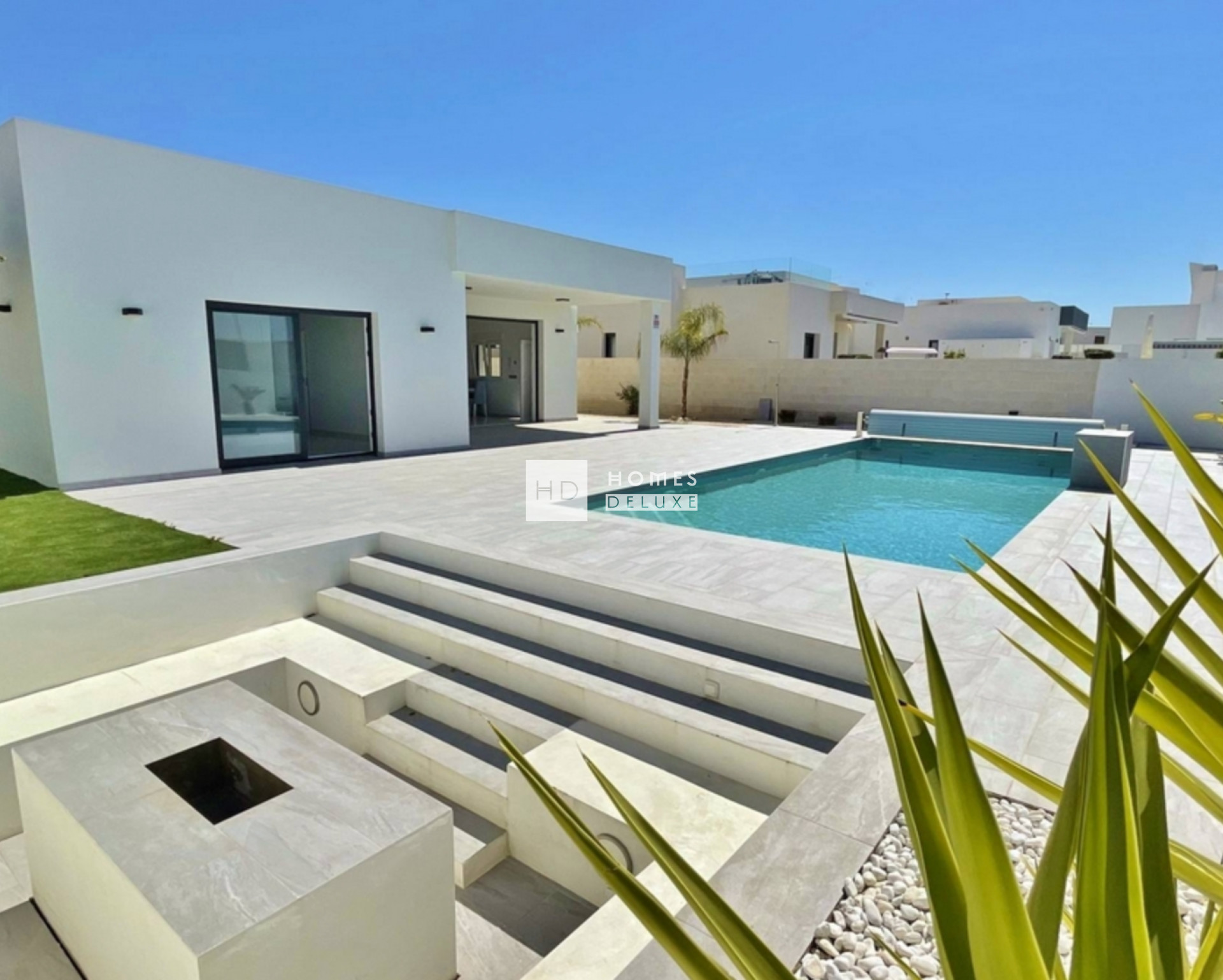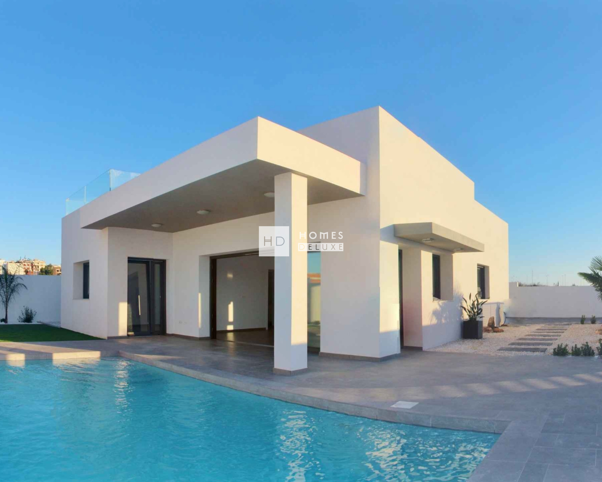 El proyecto ofrece villas de una sola planta de estilo contemporáneo en 2 diseños diferentes, situadas en generosas parcelas privadas e incluyen acabados de alta calidad tanto en el interior como en el exterior. La villa aprovecha al máximo la vida al aire libre con un precioso jardín privado y zonas de terraza abiertas y cubiertas, además de una piscina privada de 3,5 m x 7 m, perfecta para relajarse y descansar bajo el sol radiante. Existe la opción de ampliar aún más el espacio exterior con un solárium en la azotea.