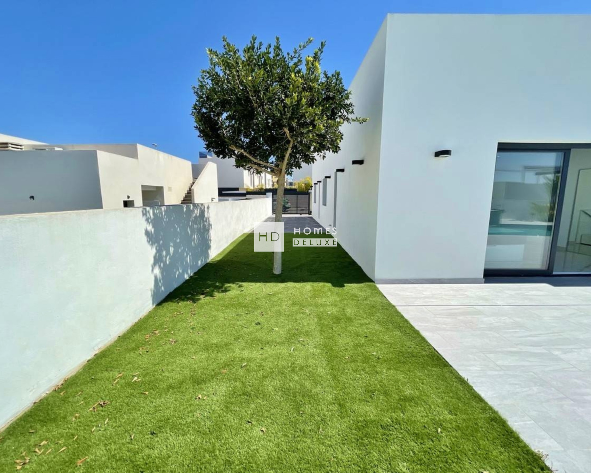 La distribución interior incluye un salón-comedor diáfano, luminoso y espacioso, con amplios ventanales que dan a la terraza y al jardín. Dentro de la zona de estar principal se encuentra una moderna cocina de estilo americano de alta calidad, con barra de desayuno y diferentes opciones de acabados, además de un práctico lavadero. El amplio dormitorio principal cuenta con baño en suite; hay otros dos dormitorios dobles de buen tamaño y un baño de invitados independiente. Las viviendas incluyen preinstalación para aire acondicionado por conductos, un sistema de paneles solares fotovoltaicos, calefacción por suelo radiante en los baños, armarios empotrados en todos los dormitorios, jardín ajardinado con sistema de riego, piscina privada y aparcamiento privado en la parcela con puerta de entrada motorizada. El constructor ofrece una selección de baldosas para toda la casa, así como para el exterior, y azulejos para las paredes de los baños y la cocina. También existe la opción adicional de un solárium en la azotea con un trastero.