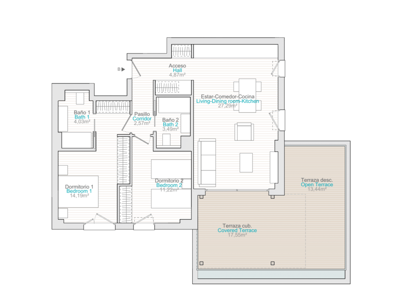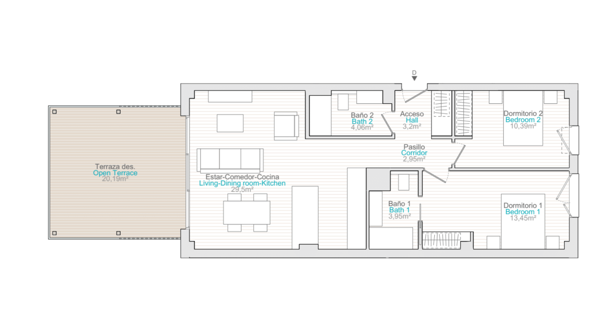 Los edificios se han diseñado como estructuras compactas, en respuesta a la búsqueda constante de eficiencia por parte de los arquitectos y diseñadores en el desarrollo. Estas decisiones, aplicadas en los distintos puntos clave de la zona residencial, garantizan que su hogar se mantenga a la temperatura adecuada tanto en invierno como en verano. Pero, sin duda, la característica principal de las viviendas serán sus amplias terrazas. Con proporciones equilibradas, son los espacios ideales para disfrutar de la vida al aire libre. La integración del salón con estas amplias terrazas unificará su hogar como un espacio habitable en el que el interior se funde con el exterior. Además, se prevé un impacto mínimo en toda la zona de construcción. La cuidadosa selección de los materiales de construcción ha garantizado que pueda disfrutar de forma permanente de las extraordinarias vistas que ofrece el entorno natural.