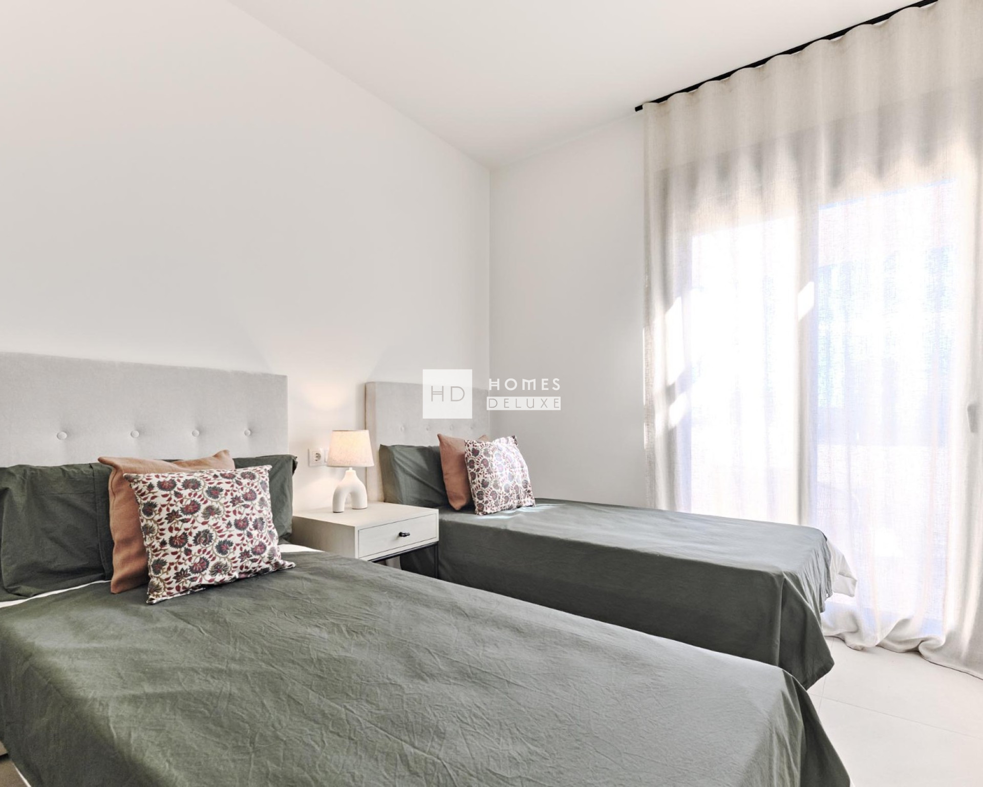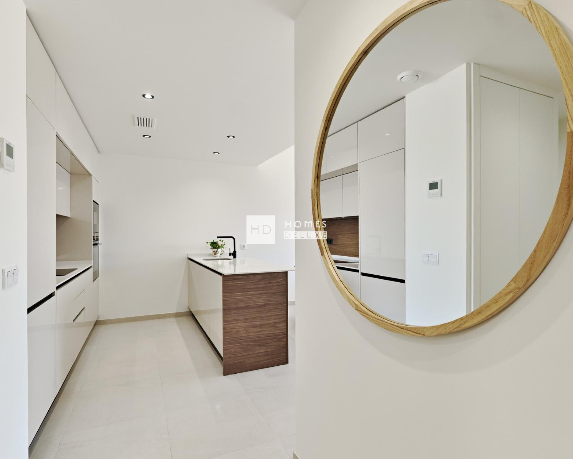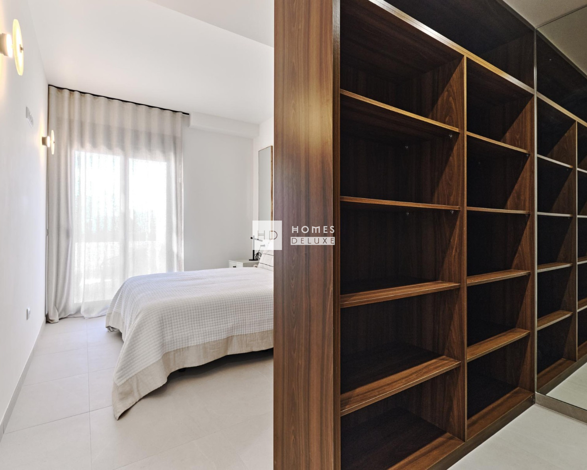 El diseño de los apartamentos tiene un vestíbulo de entrada que conduce a la sala de estar de planta abierta y comedor con cocina moderna de estilo americano, un lavadero, dormitorio principal con baño en-suite y vestidor, otro dormitorio doble y un baño de invitados. El salón y ambos dormitorios tienen puertas que dan acceso a la gran terraza y en los apartamentos de la planta superior hay una escalera exterior que da acceso al gran solarium en la azotea.