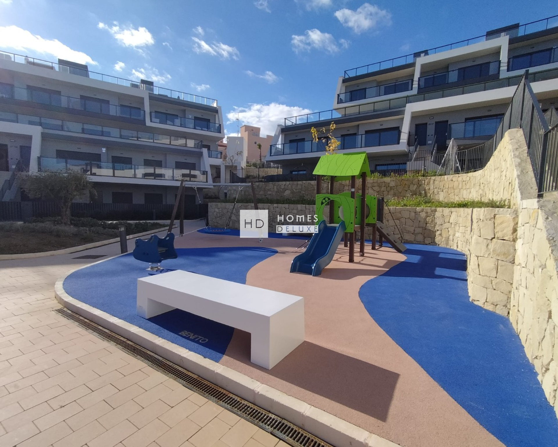 Estos nuevos apartamentos de 2 y 3 dormitorios están construidos con un estándar muy alto y forman un encantador complejo con piscina comunitaria para adultos y niños, jacuzzi comunitario, hermosos jardines, equipos de fitness al aire libre y zona de juegos para niños. Las viviendas tienen una cuidada distribución y disfrutan de hermosas vistas al mar, a la playa y a la piscina y jardines privados de la urbanización.