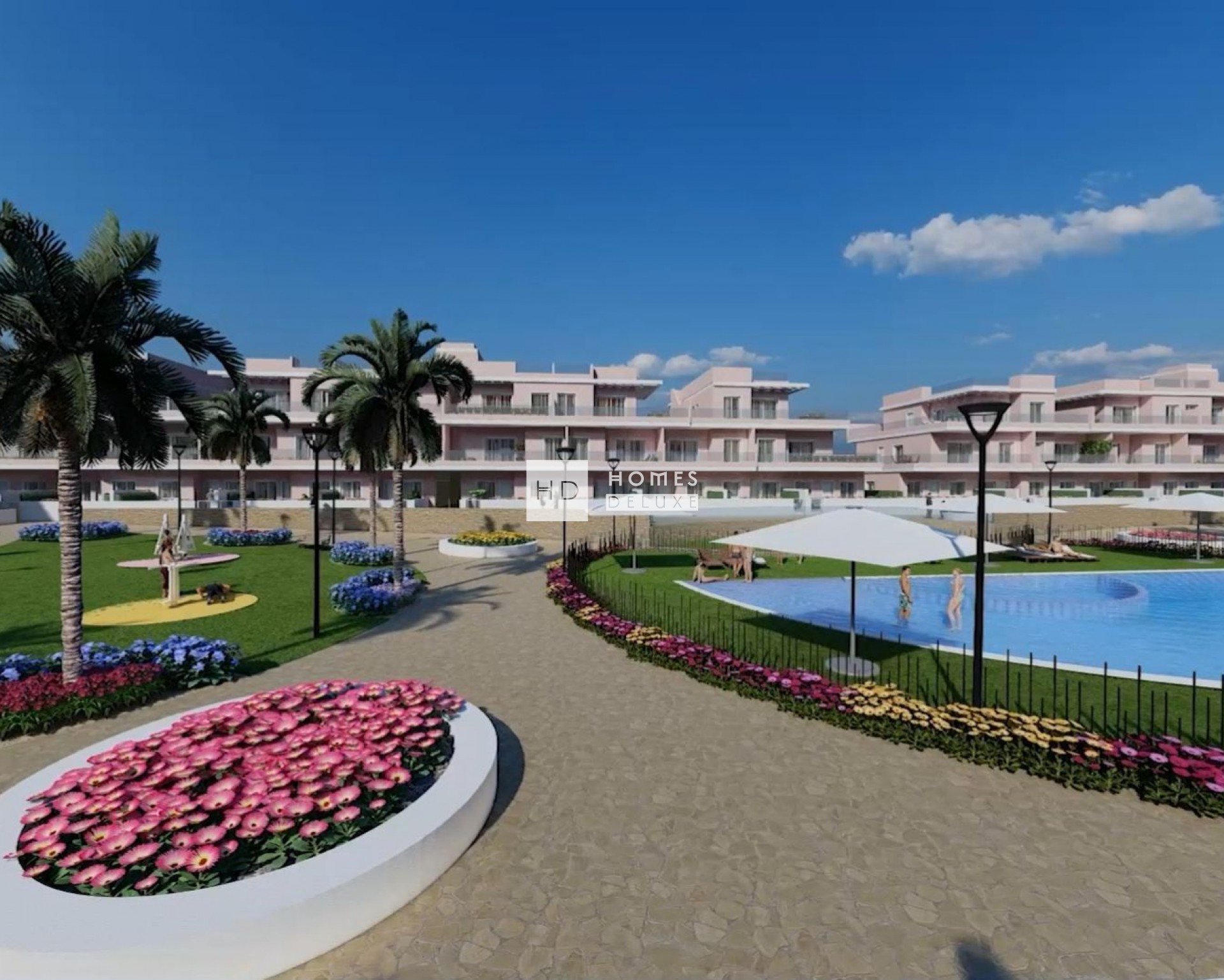 Promoción de apartamentos y adosados a estrenar en Torre de la Horadada situada a 750 metros de la playa de Higuericas.