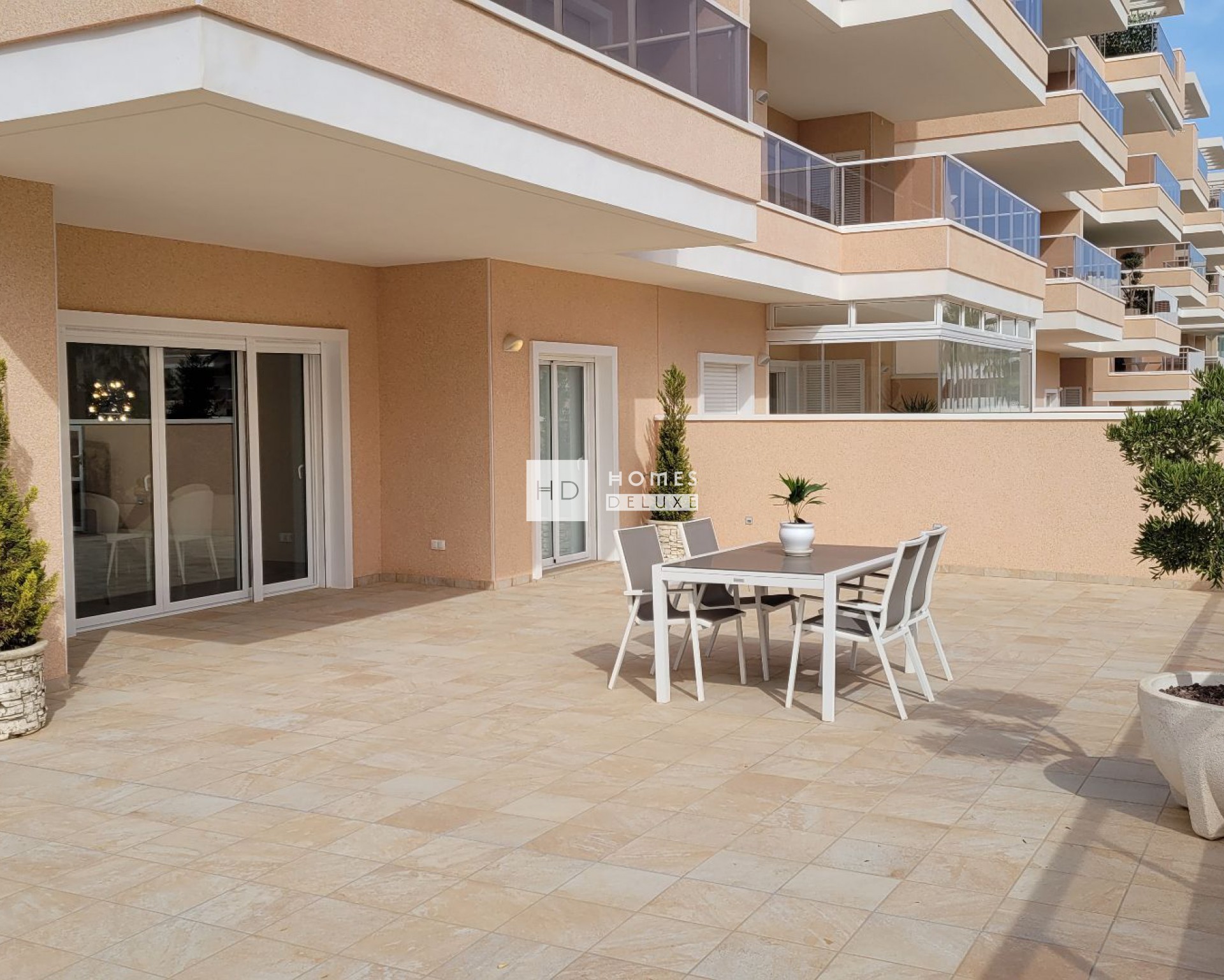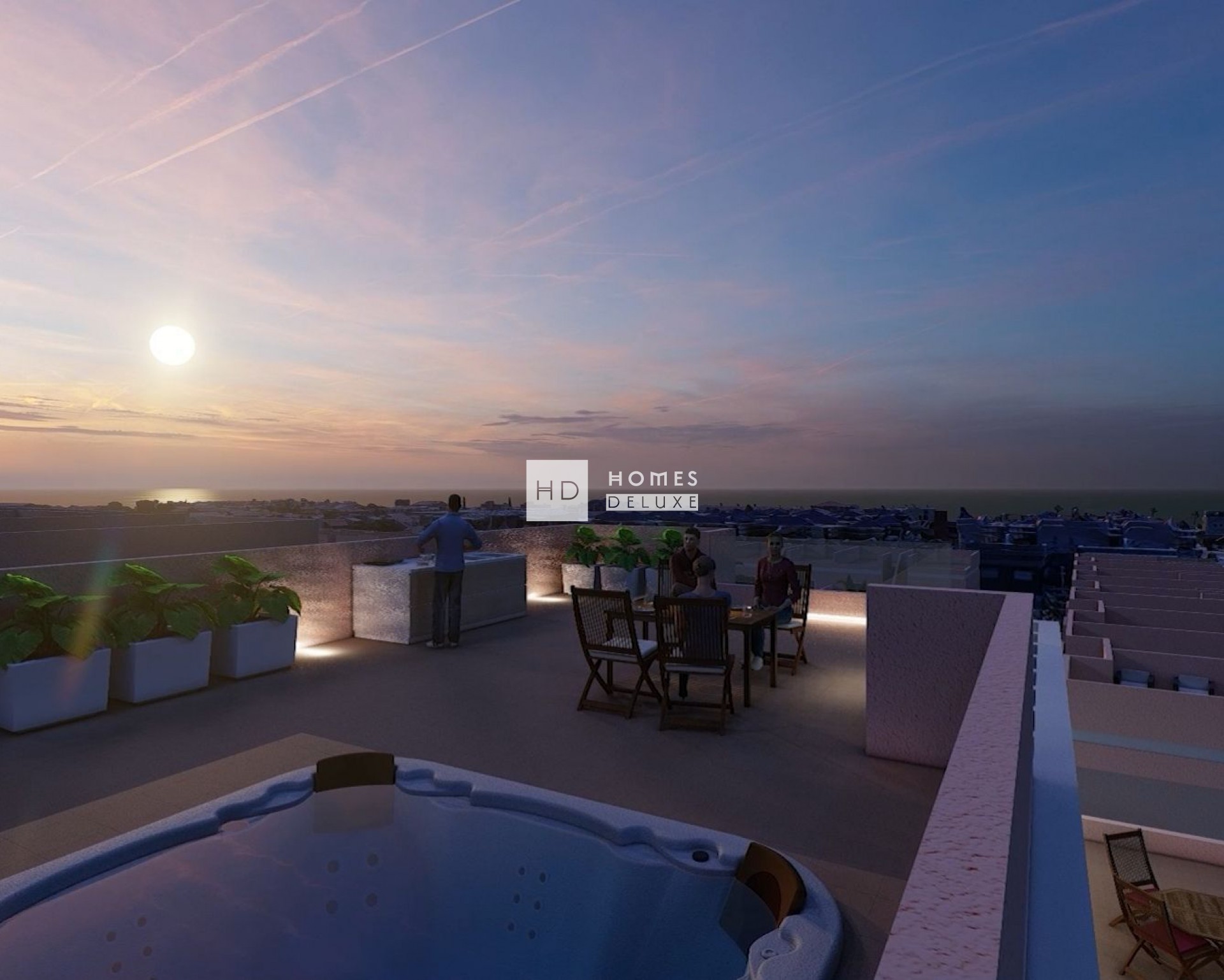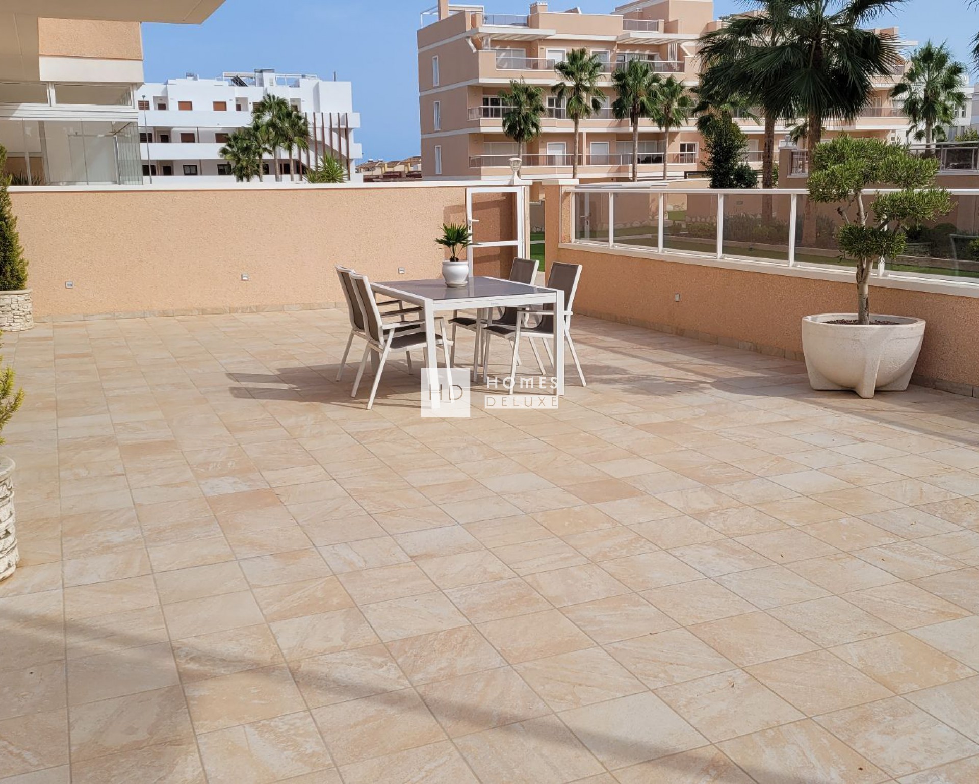 Los apartamentos tienen las siguientes opciones para elegir: apartamentos de planta baja con jardín privado, apartamentos de planta media con terrazas y áticos con solárium que incluye jacuzzi y cocina exterior.