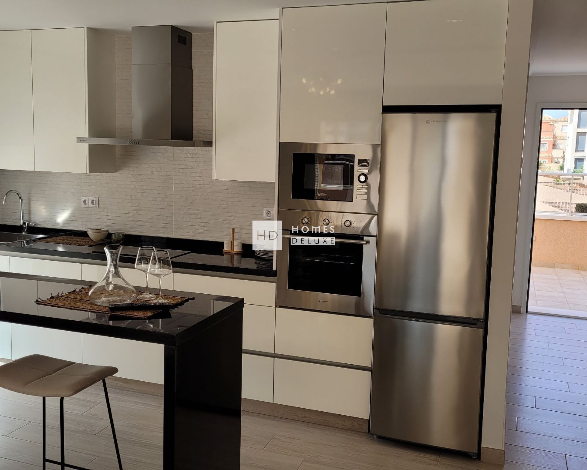 Los interiores cuentan con un amplio salón/comedor abierto, una cocina totalmente equipada, 2 dormitorios dobles con armarios empotrados, 2 baños y grandes terrazas para disfrutar del sol español. Las viviendas incluyen preinstalación de aire acondicionado, sistema de ventilación, secador de toallas eléctrico en los baños y una plaza de aparcamiento subterráneo.