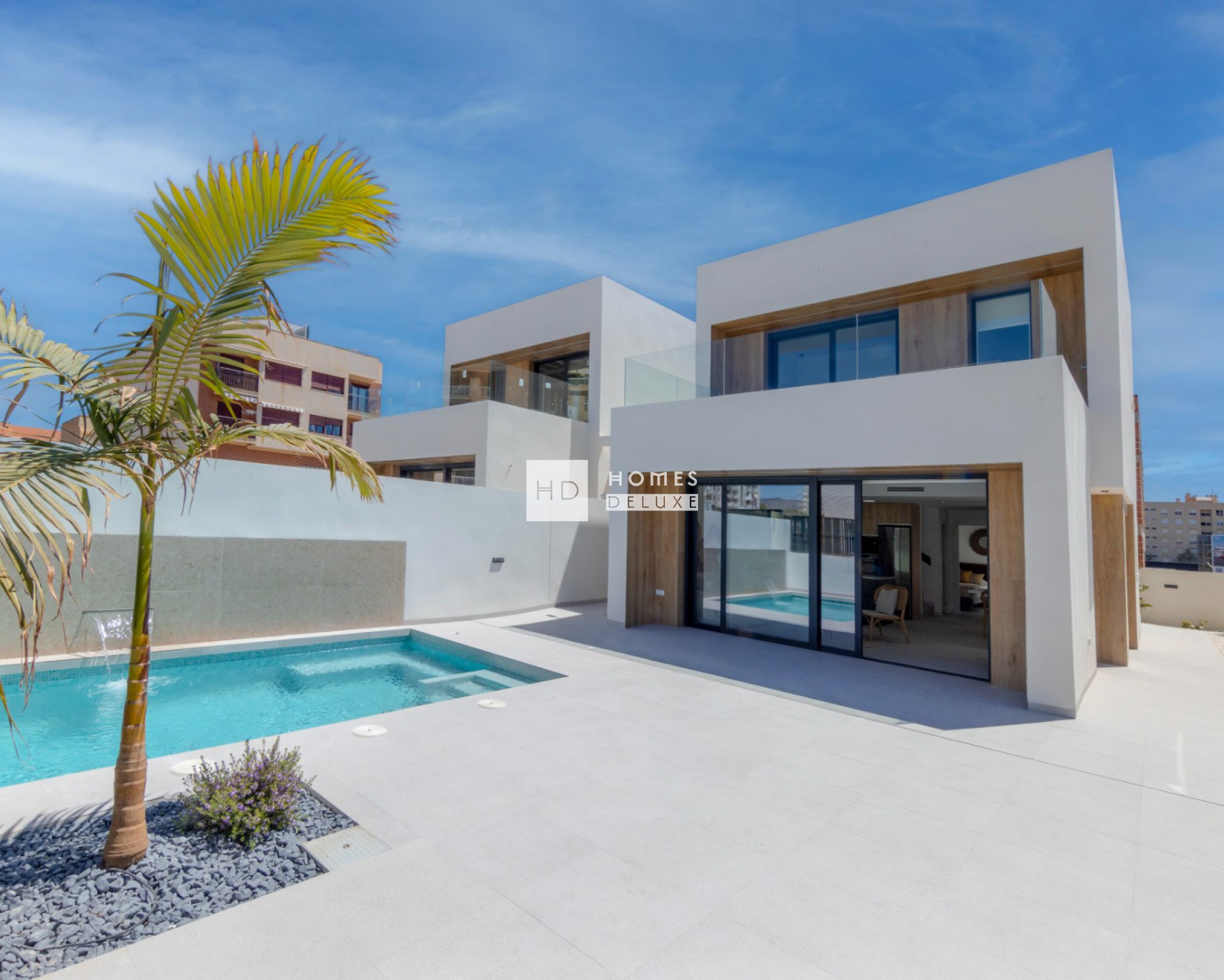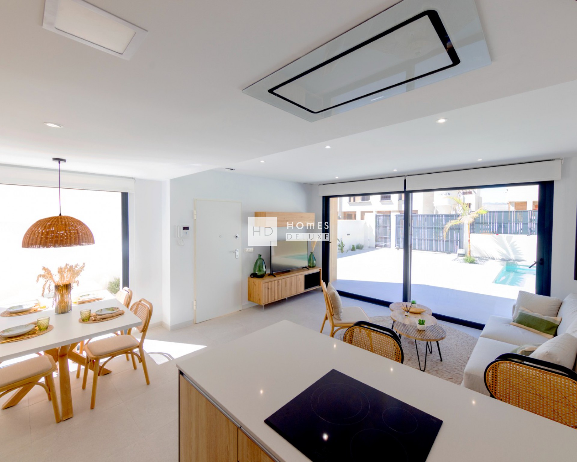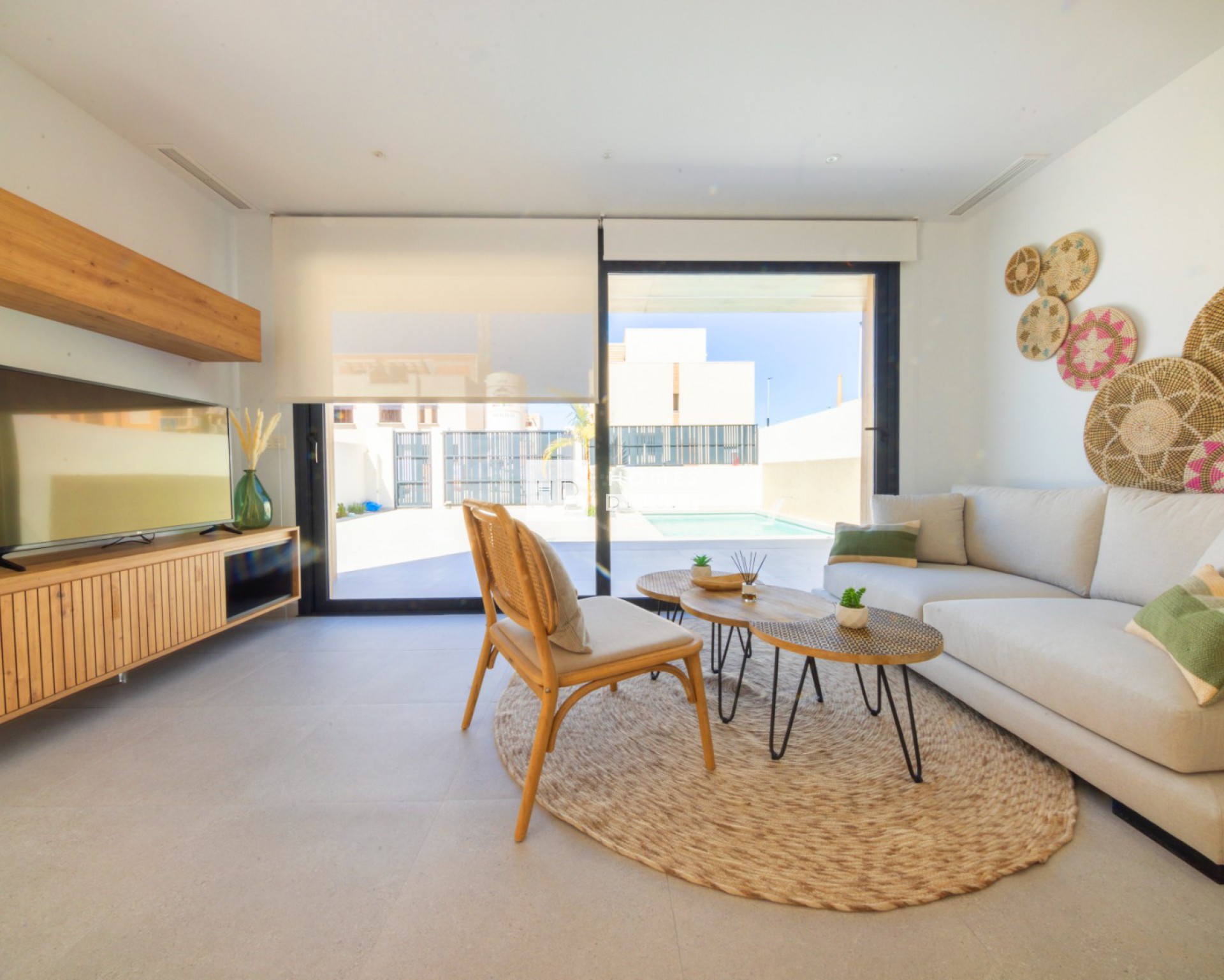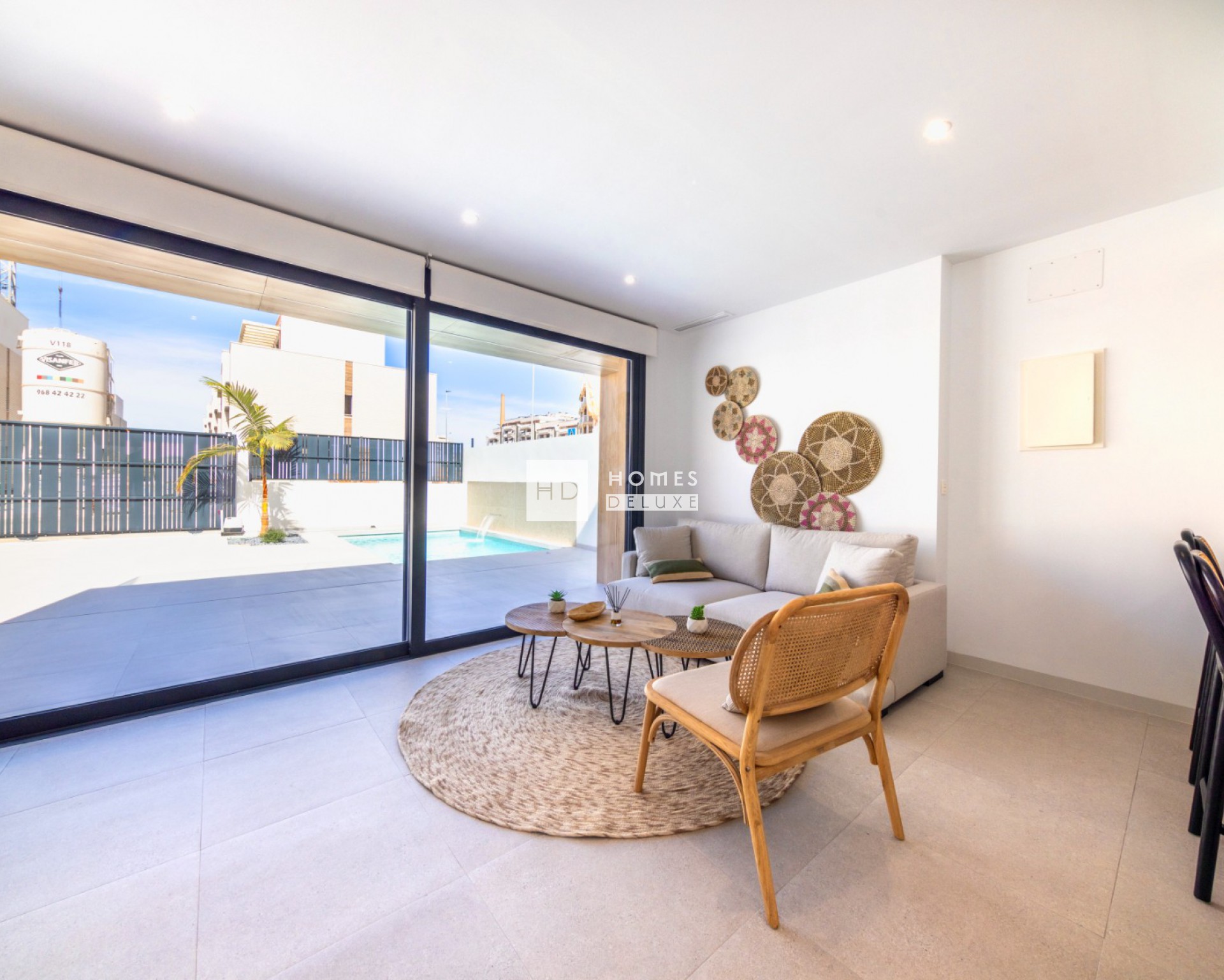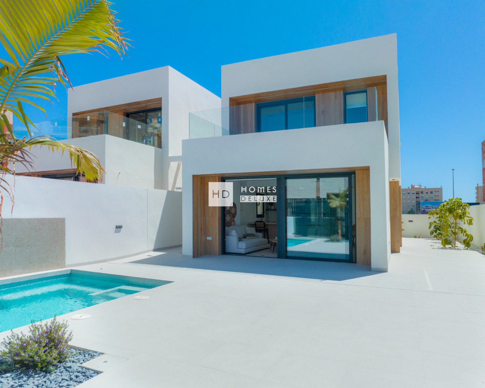 Combinando diseño moderno, calidad y funcionalidad, cada villa tiene su parcela independiente con terraza, jardín y piscina privada aprovechando al máximo la vida al aire libre en España para disfrutar de zonas chill out y cenas al aire libre con la familia y amigos.