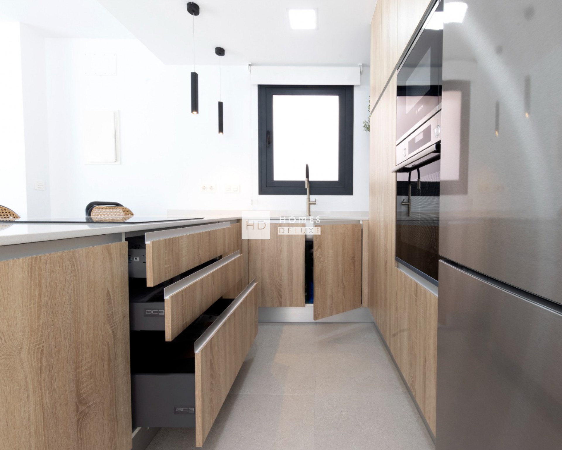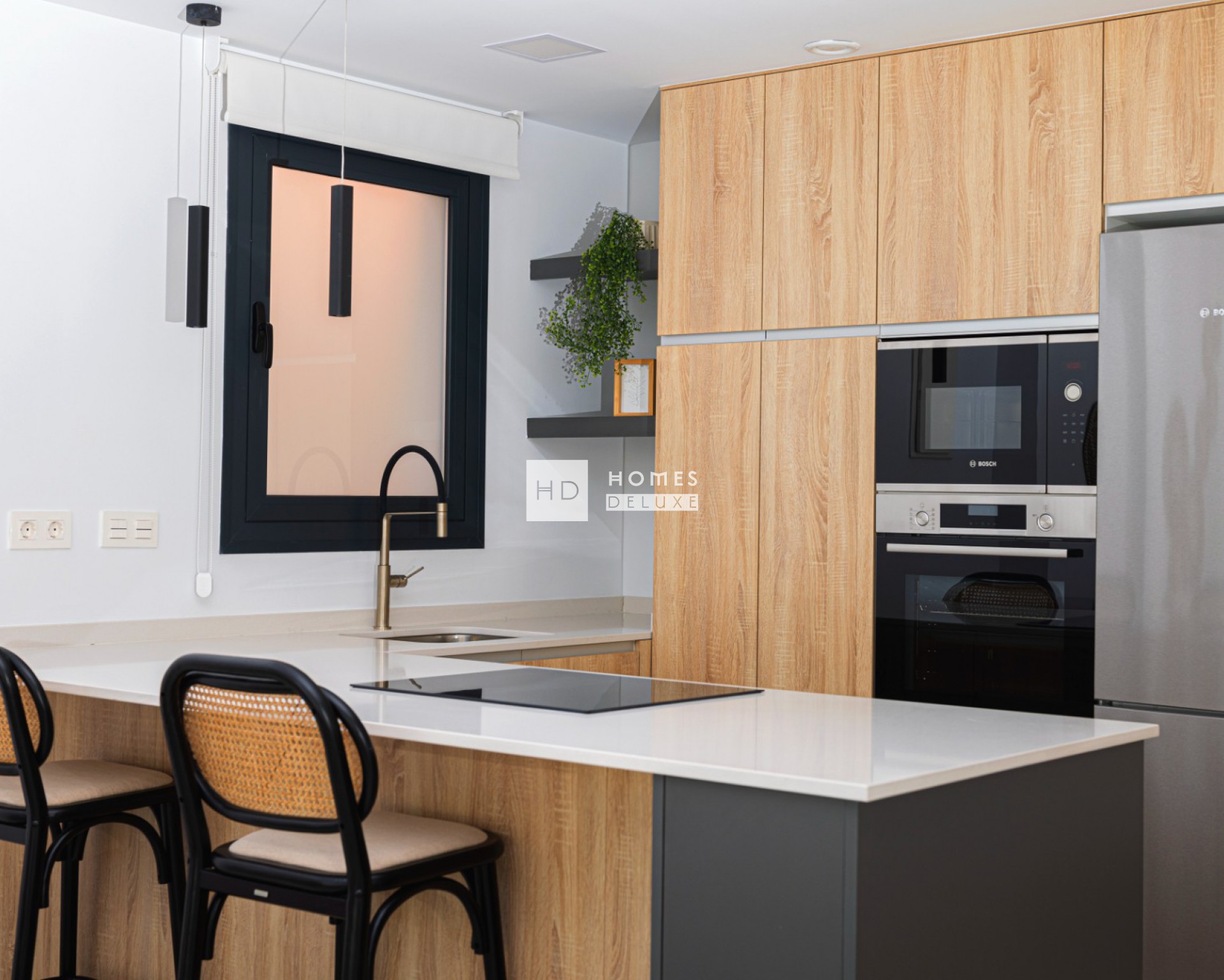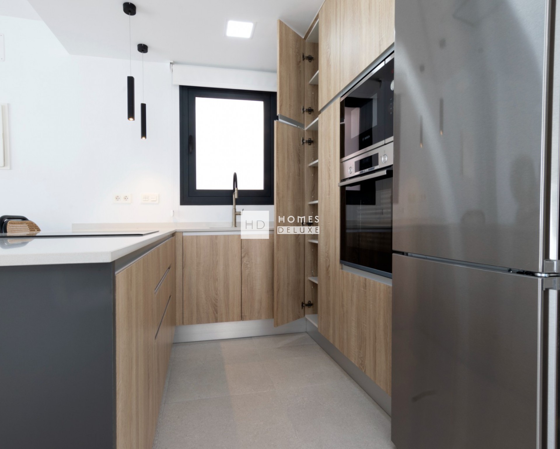 La distribución interior consta de un amplio salón de planta abierta y comedor con grandes ventanales que crean un montón de luz natural que fluye a través de la propiedad y las puertas del patio se abren a la terraza, totalmente equipada cocina moderna de estilo americano, la planta baja también tiene un dormitorio doble con puerta de acceso a la terraza lateral y un baño de invitados. La escalera interior que conduce al primer nivel del piso con el hermoso dormitorio principal con vestidor / vestidor y puerta de acceso a una terraza privada de 19m2, otro dormitorio doble y un segundo cuarto de baño que tiene doble puerta de acceso desde el dormitorio principal y el pasillo. Existe la opción de añadir un solarium en la azotea de la propiedad.