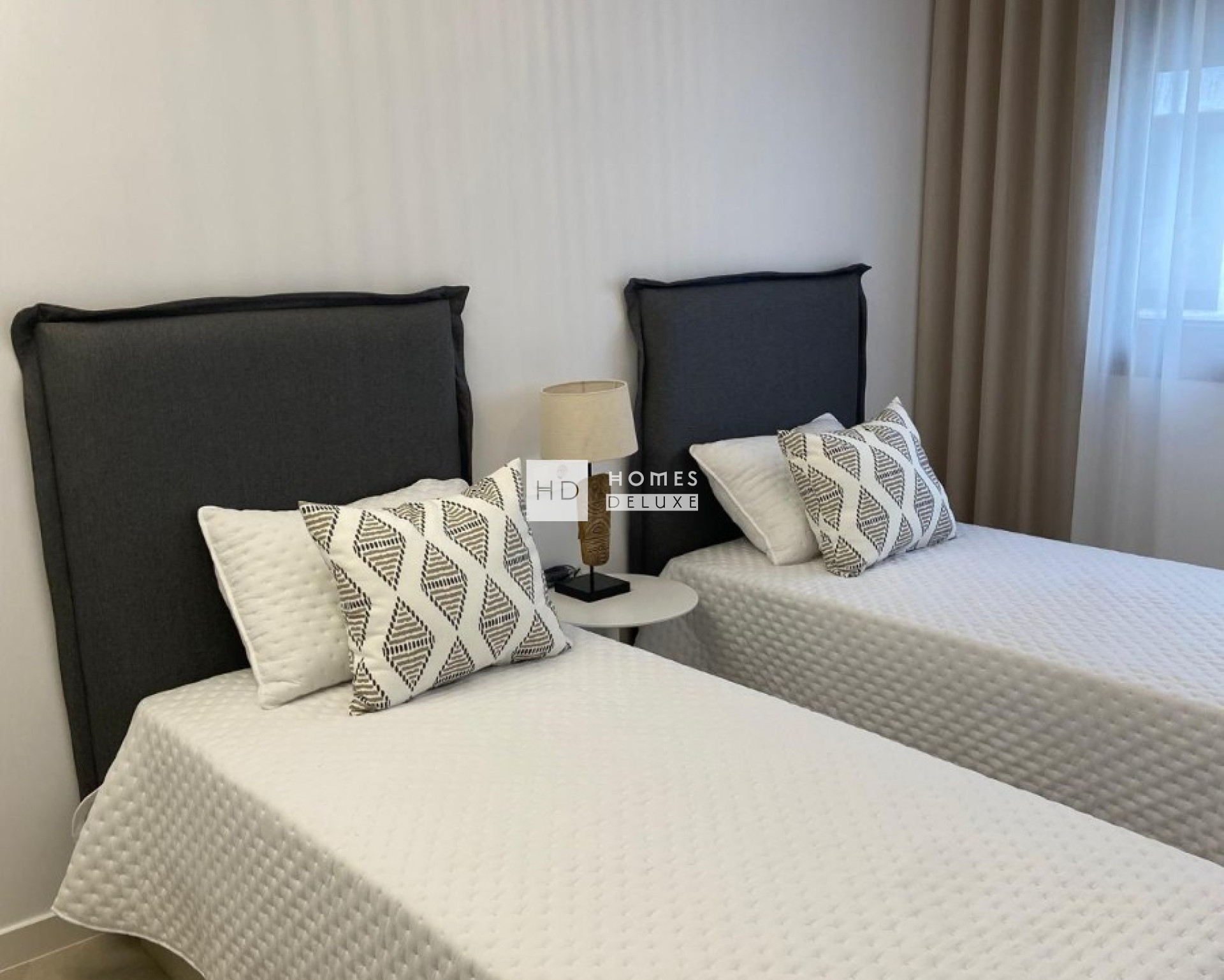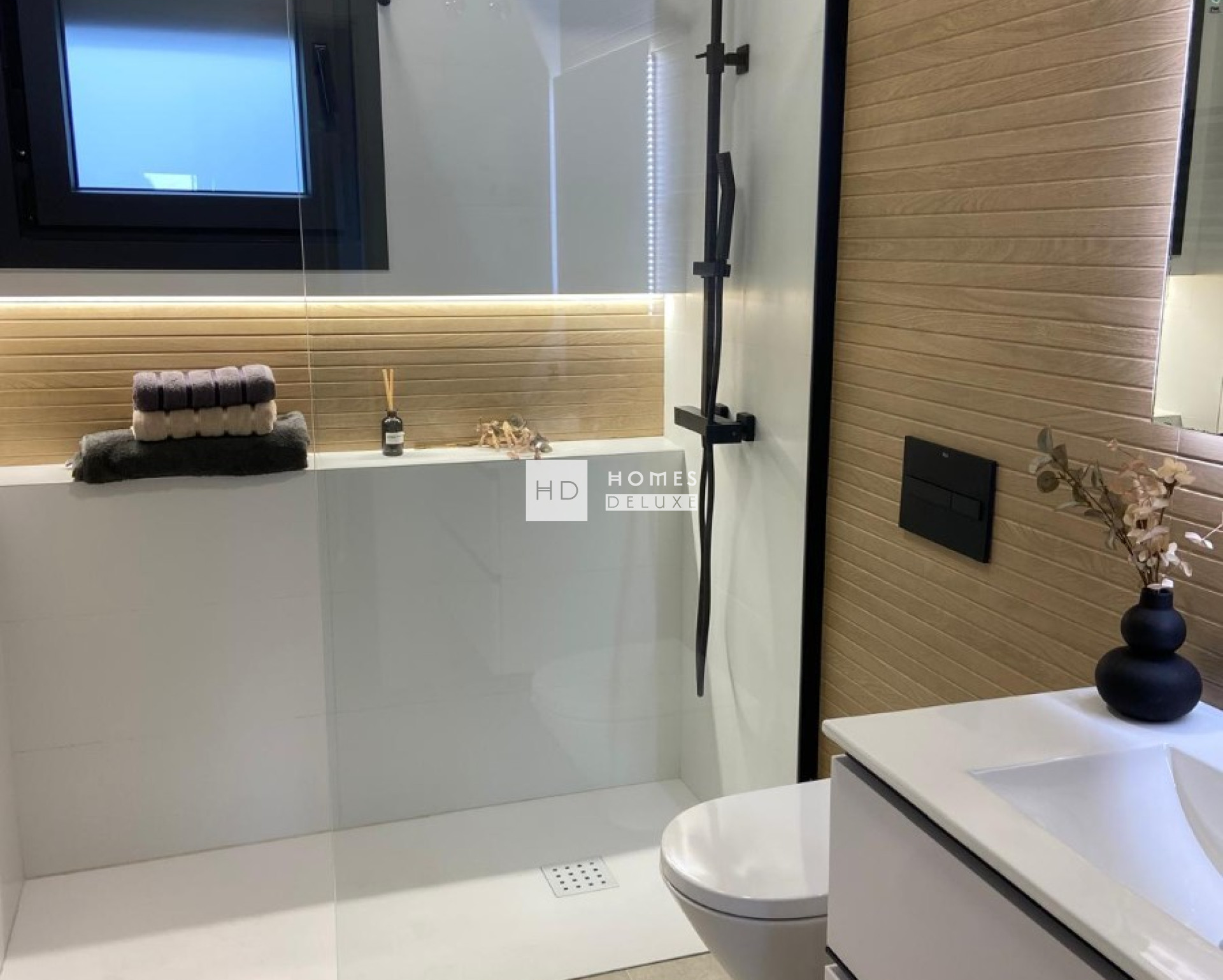 Les propriétés ont été conçues avec un style contemporain et un concept ouvert, la disposition intérieure comprend un salon spacieux et une salle à manger avec des portes-fenêtres donnant accès à la terrasse et au jardin, une cuisine américaine entièrement équipée, le rez-de-chaussée dispose également d'une chambre double avec accès à la porte-fenêtre donnant sur la terrasse arrière, et une salle de bains séparée pour les invités. L'escalier intérieur mène au premier étage où se trouve la chambre principale avec dressing et porte-fenêtre donnant accès à la terrasse ensoleillée de 16 m2, une autre chambre double et une deuxième salle de bains séparée pour les invités. L'escalier intérieur mène également au vaste solarium de 35 m2 sur le toit pour profiter du soleil toute la journée. L'espace extérieur au rez-de-chaussée dispose d'une grande terrasse avec une piscine privée de 14m2, les parcelles d'angle ont des piscines légèrement plus grandes de 15m2 et 19m2, et à l'arrière de chaque propriété se trouve une buanderie.