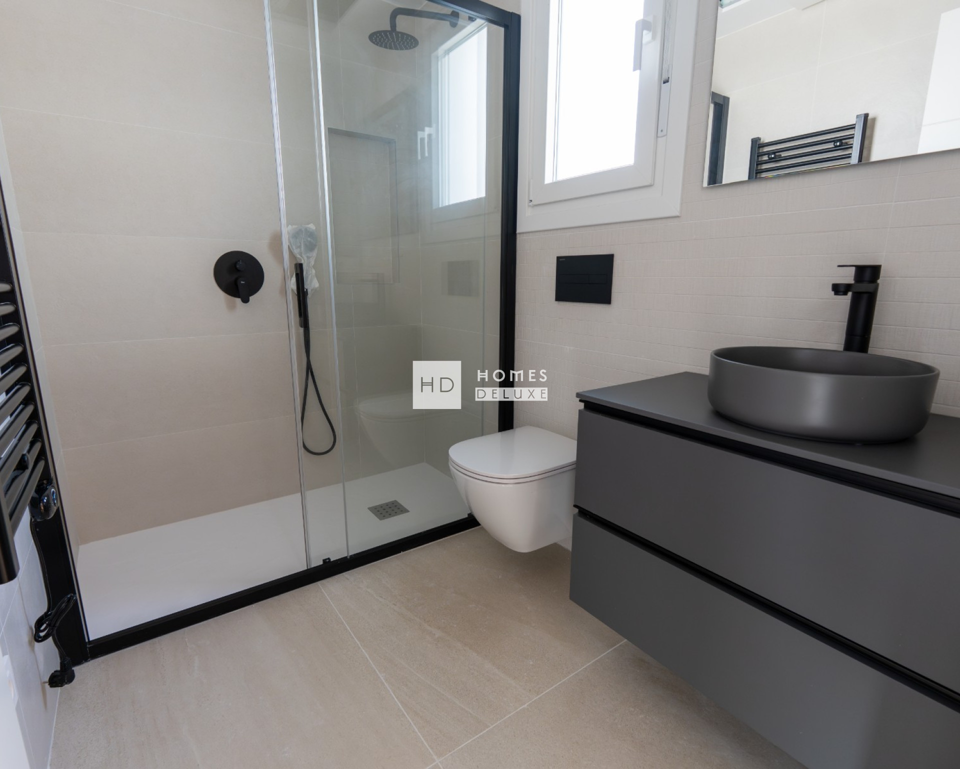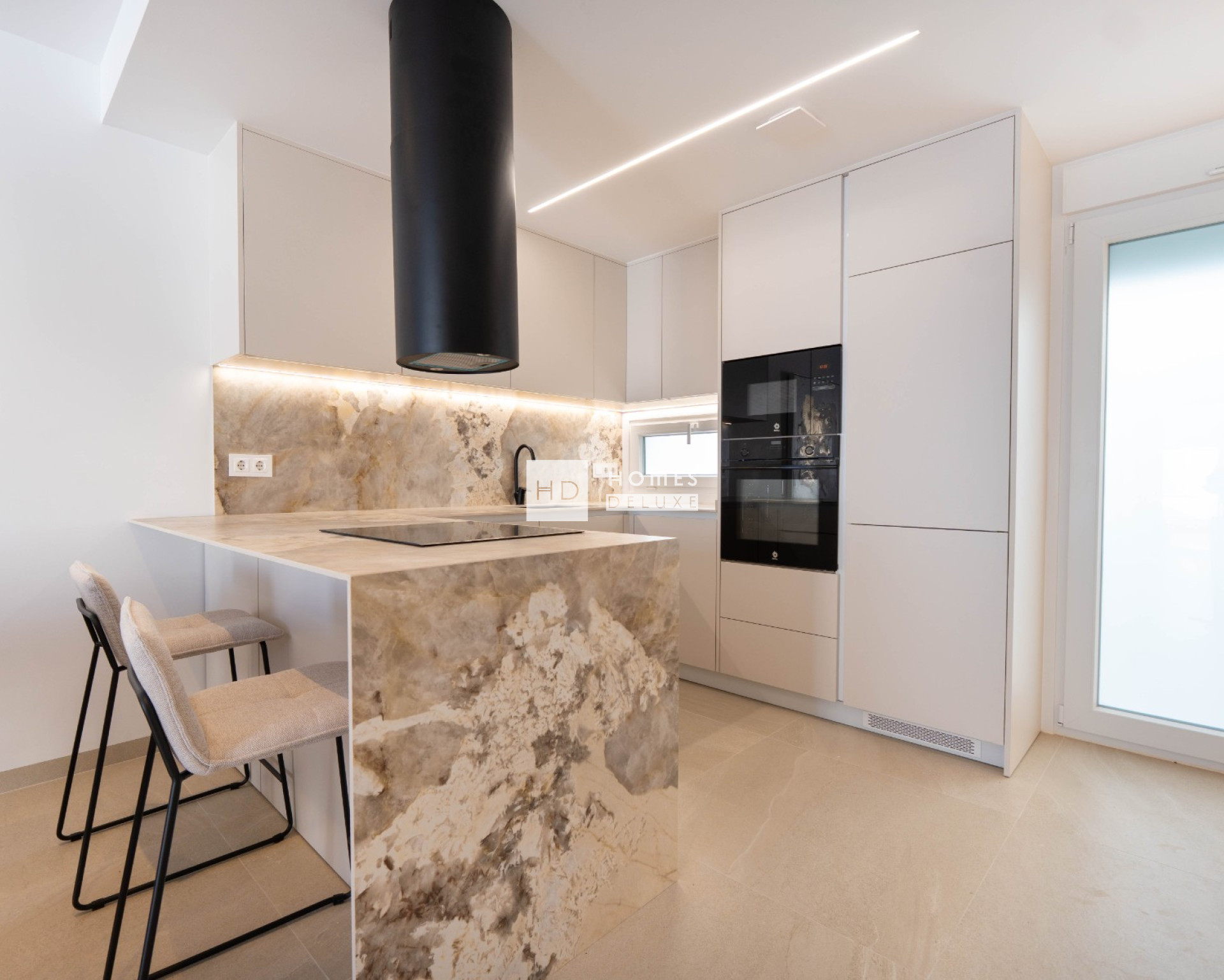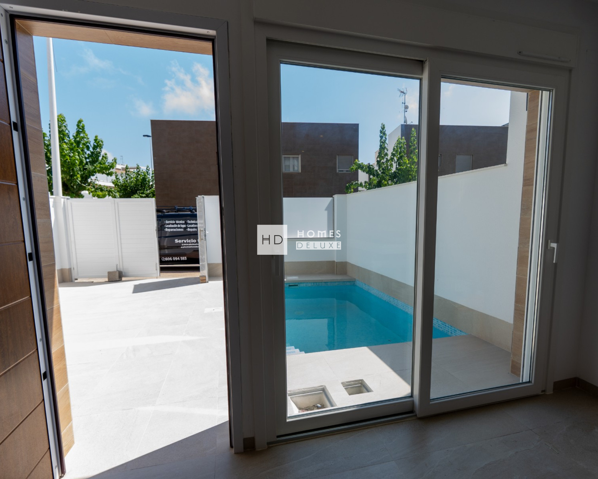 Les propriétés comprennent une pré-installation pour l'air conditionné, des radiateurs électriques dans les salles de bains, des appareils électroménagers dans la cuisine (four, plaque de cuisson à induction, hotte aspirante, micro-ondes, réfrigérateur-congélateur, lave-vaisselle et lave-linge), des armoires encastrées dans toutes les chambres, un éclairage LED intérieur et extérieur, des stores électriques, un système d'interphone vidéo, une piscine privée avec jacuzzi et une pré-installation pour une pompe à chaleur, ainsi qu'un parking privé sur le terrain.
