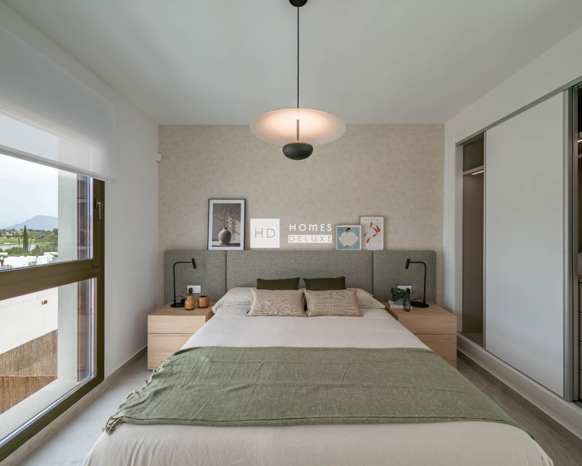 Les propriétés comprennent l'installation de l'air conditionné, le chauffage au sol dans les deux salles de bains, les appareils électroménagers de la cuisine (four, plaque à induction, micro-ondes, réfrigérateur-congélateur, lave-vaisselle et lave-linge), des armoires encastrées avec des portes coulissantes blanches dans toutes les chambres, des volets électriques, un système de gestion domotique qui comprend l'application pour contrôler l'éclairage et les volets, un système d'alarme entièrement équipé qui comprend : des capteurs, un écran, une sirène et une caméra intérieure et extérieure, un jardin paysager avec un système d'irrigation, une piscine privée (7x3m), et un parking privé sur le terrain.