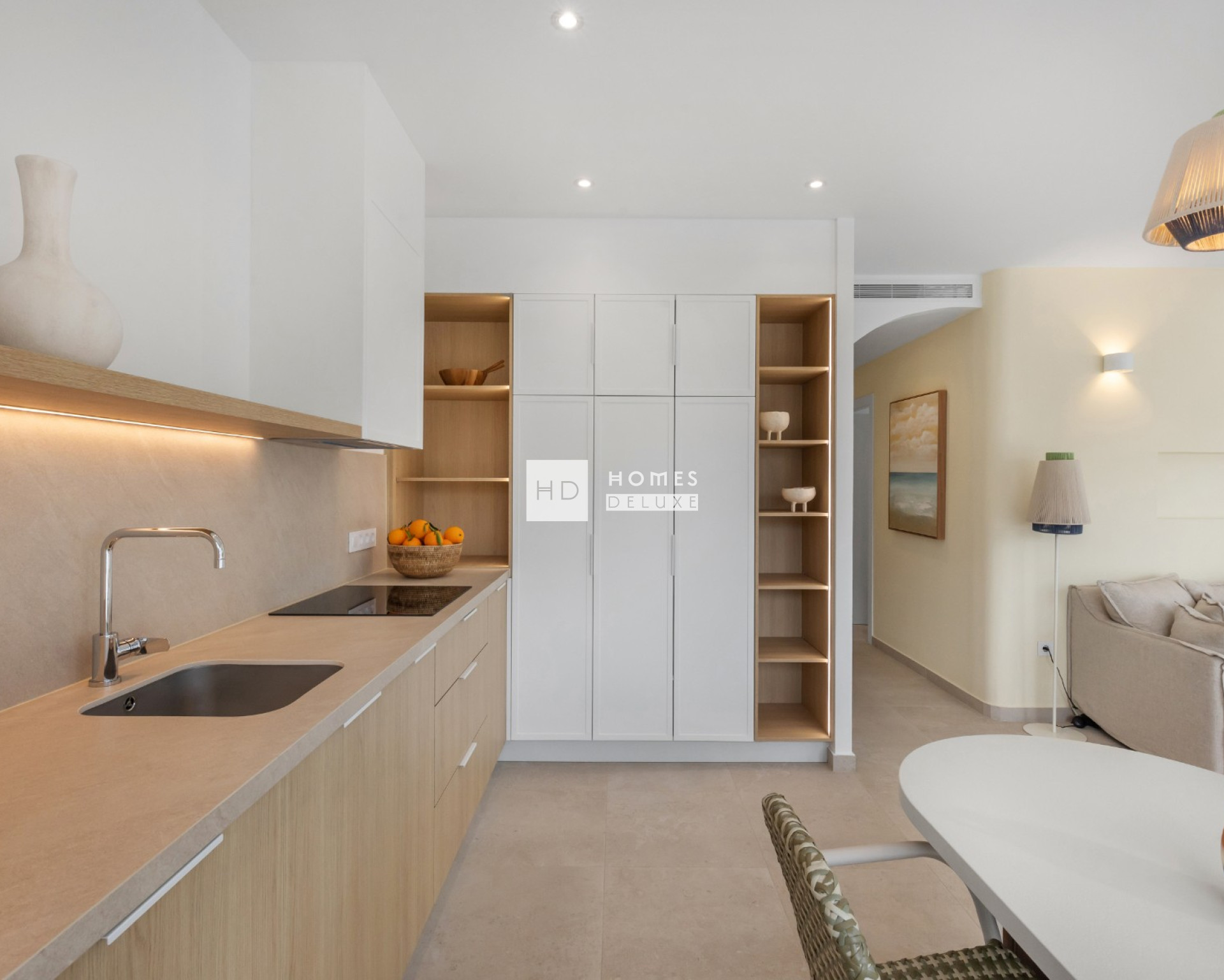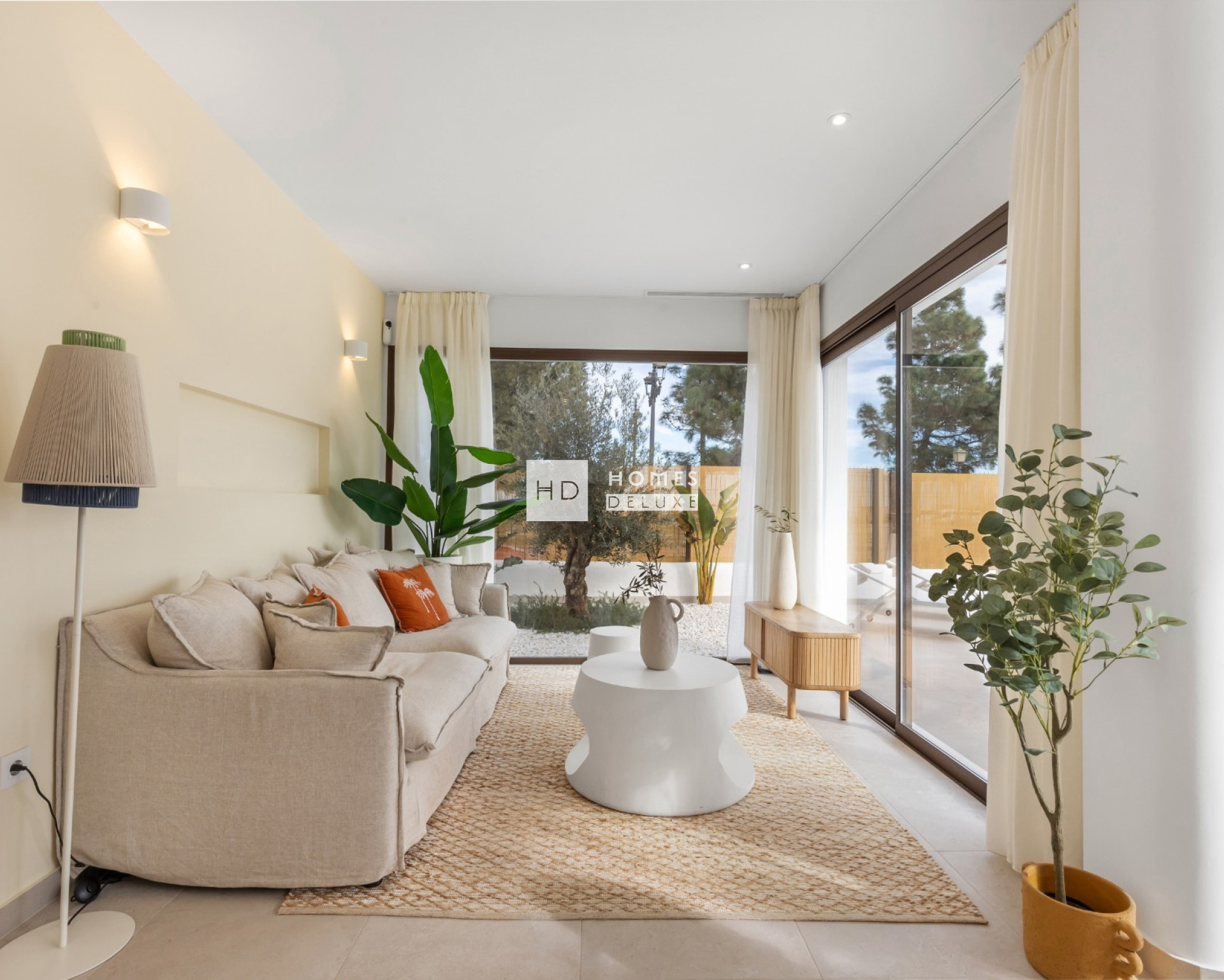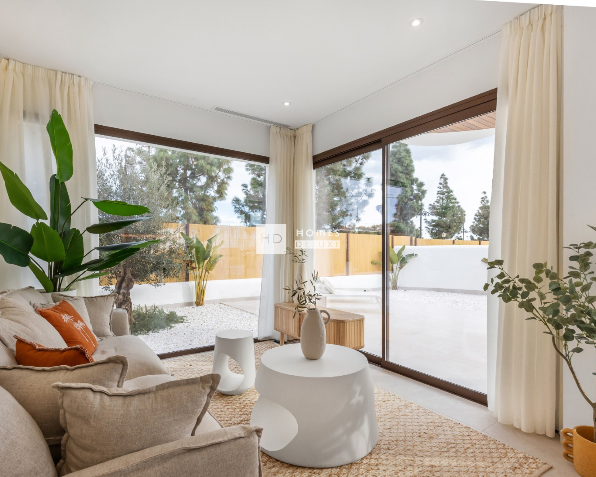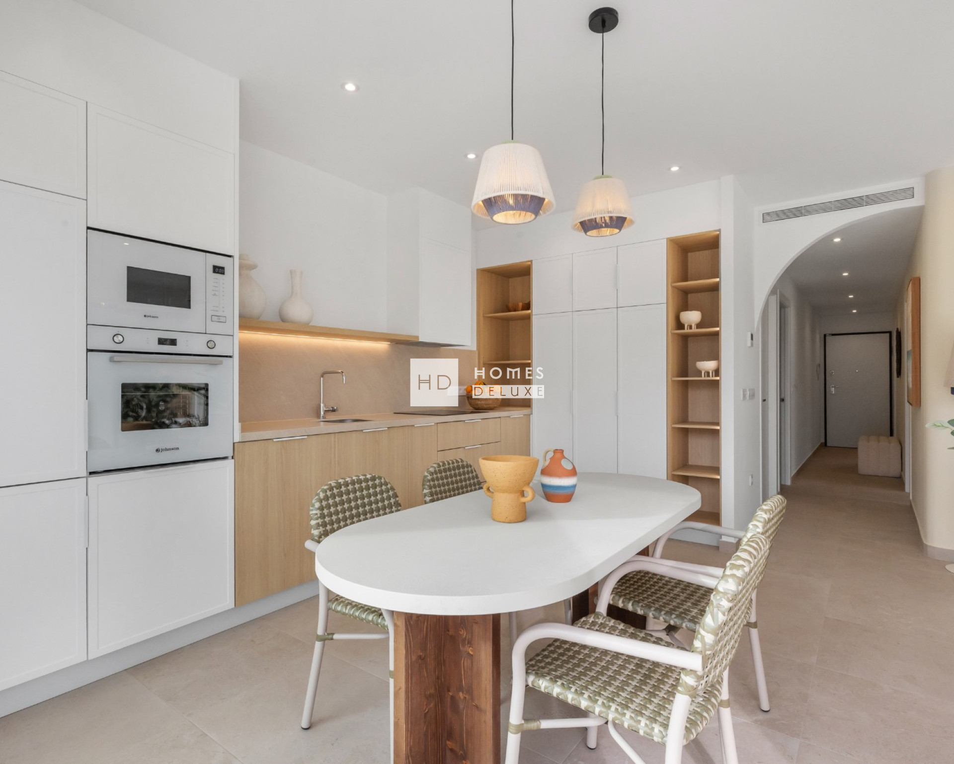 Les aménagements intérieurs comprennent un hall d'entrée menant à un salon et à une salle à manger spacieux et lumineux, avec des portes-fenêtres doubles ouvrant sur la terrasse, une cuisine moderne en forme de "L" entièrement équipée, de style américain, avec des finitions blanches et des détails en bois. La chambre principale comprend une salle de bains attenante, un dressing et une porte-fenêtre donnant accès à une terrasse privée dans certaines des options du dernier étage, ainsi que deux autres chambres doubles et une salle de bains séparée pour les invités. Les options du rez-de-chaussée offrent de grandes terrasses à l'avant et à l'arrière de la propriété avec un parking privé sur le terrain (certaines des 3 chambres offrent un double parking sur le terrain). Les options du dernier étage disposent d'un escalier intérieur menant au vaste solarium sur le toit de plus de 70 m2 pour profiter du soleil tout au long de la journée et de la vue imprenable.