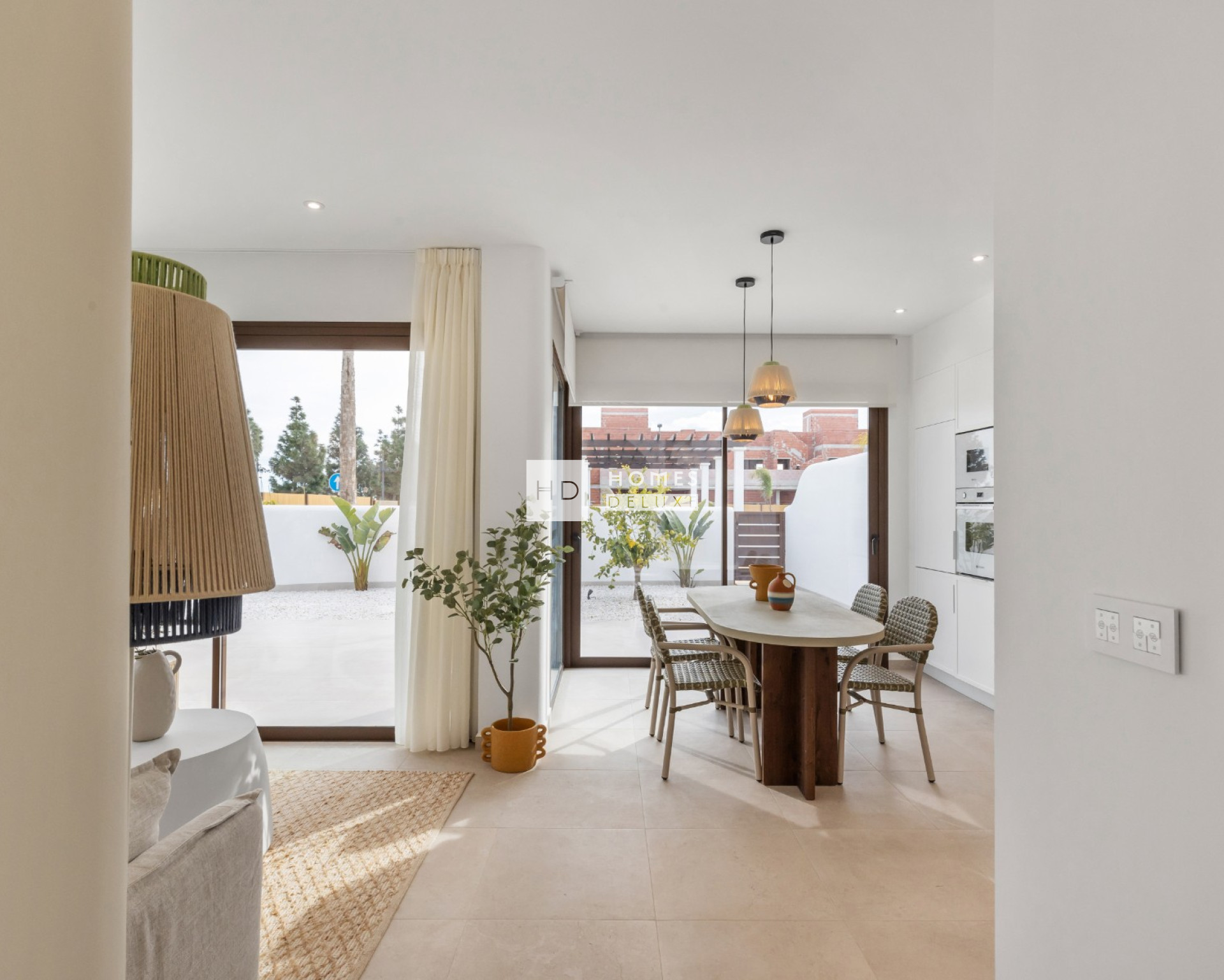 Les propriétés comprennent une pré-installation pour la climatisation, une plaque à induction et une hotte dans la cuisine, des armoires encastrées, un éclairage LED intérieur et extérieur, et un parking privé à l'intérieur du complexe pour les options du dernier étage et sur les parcelles des options du rez-de-chaussée.