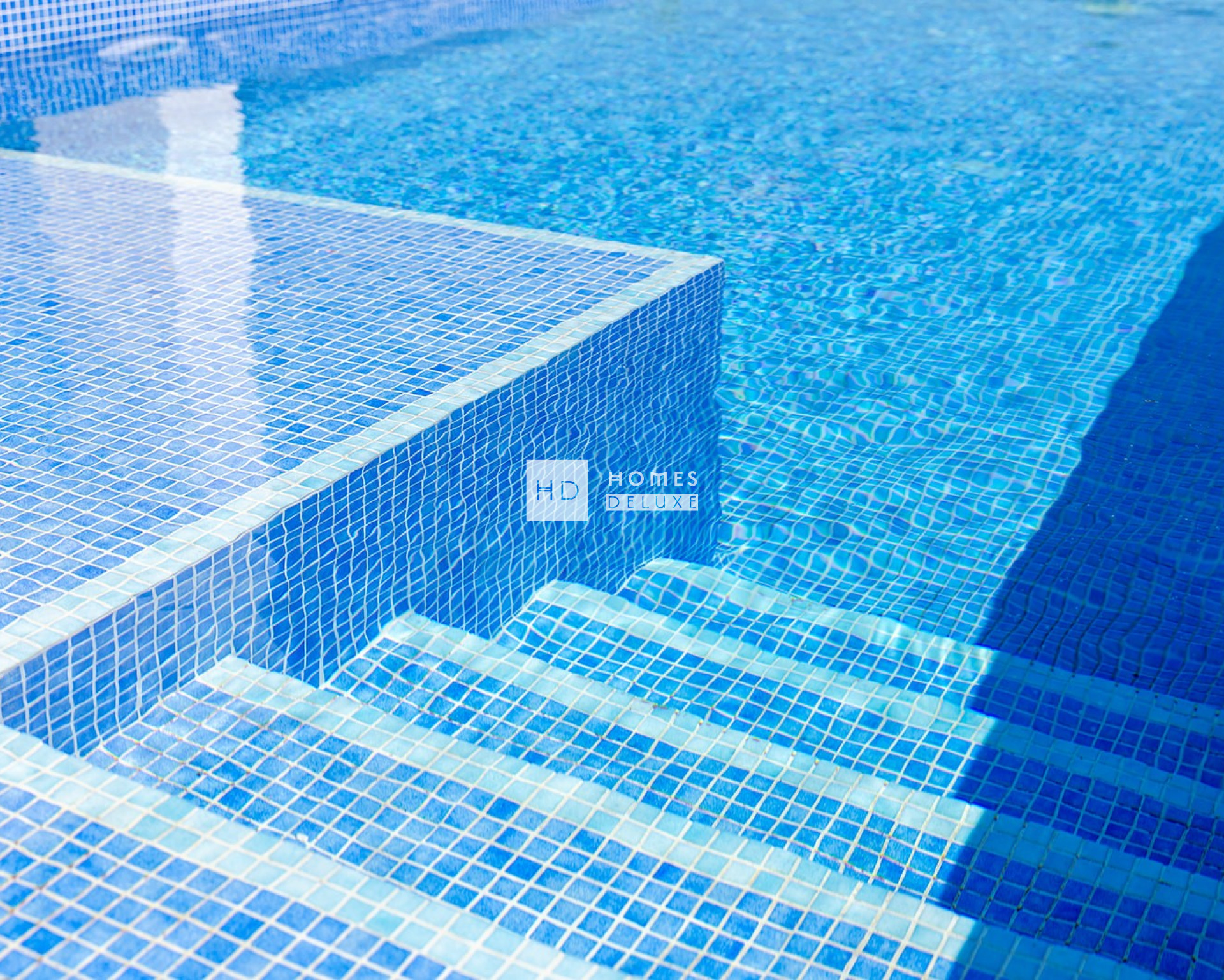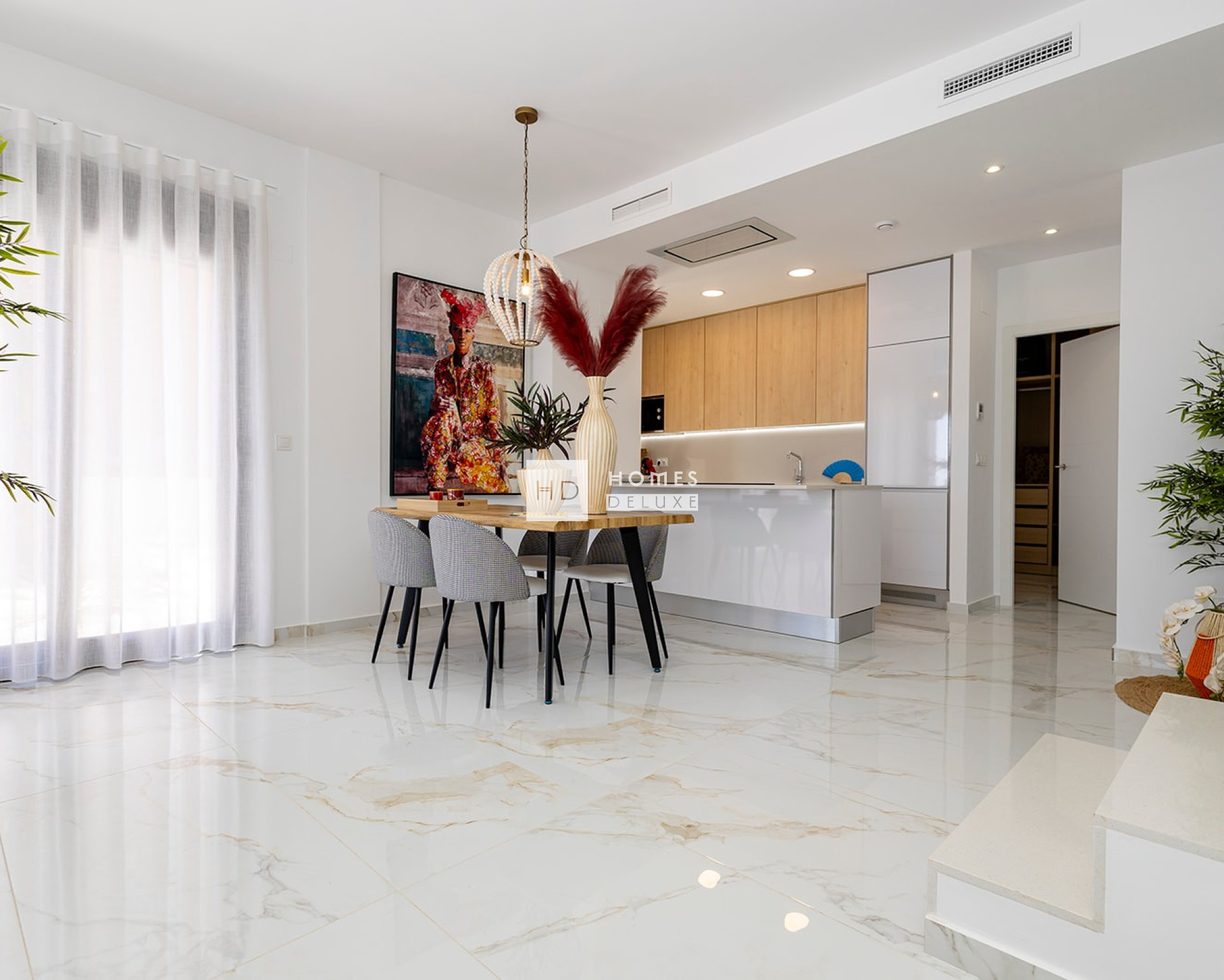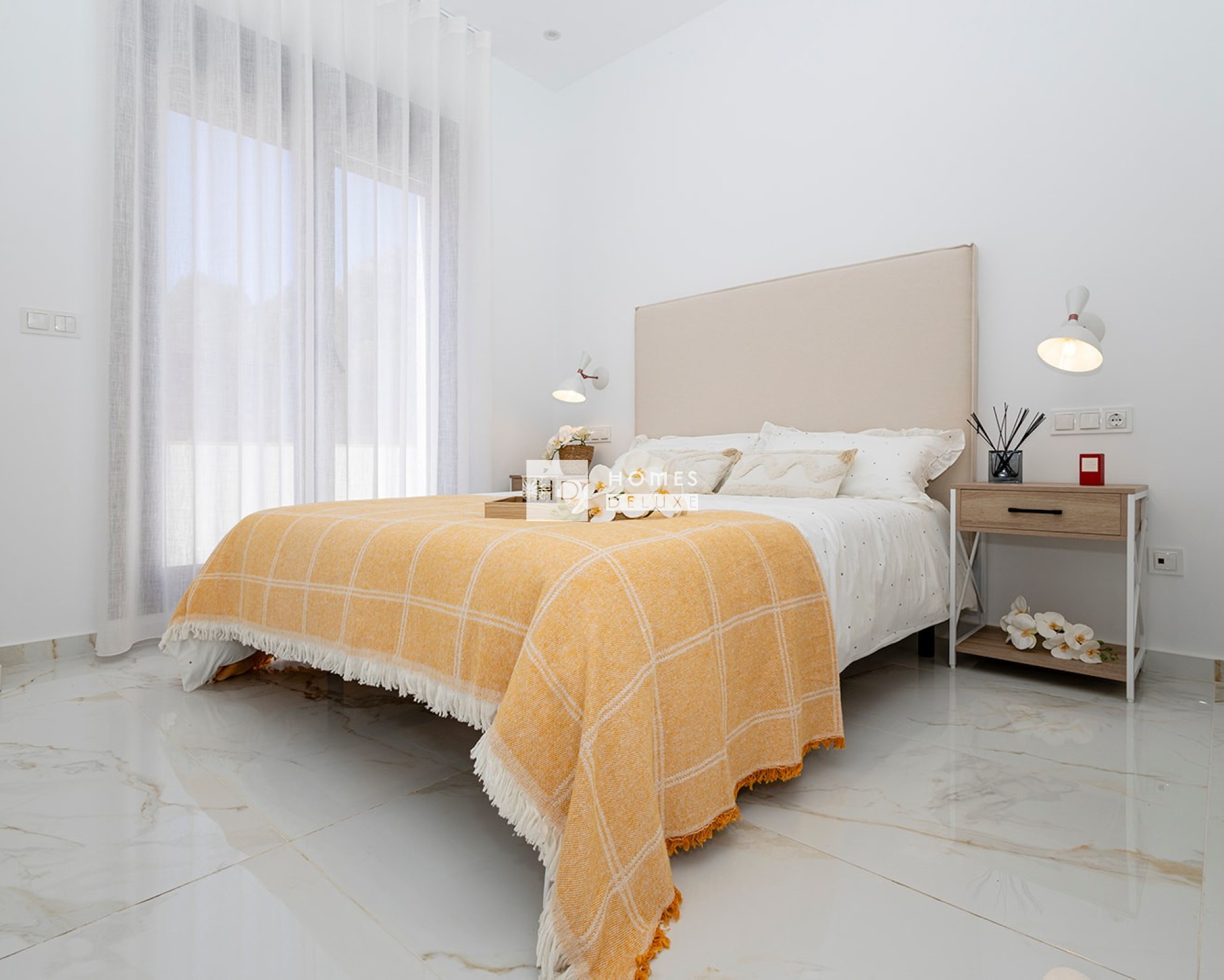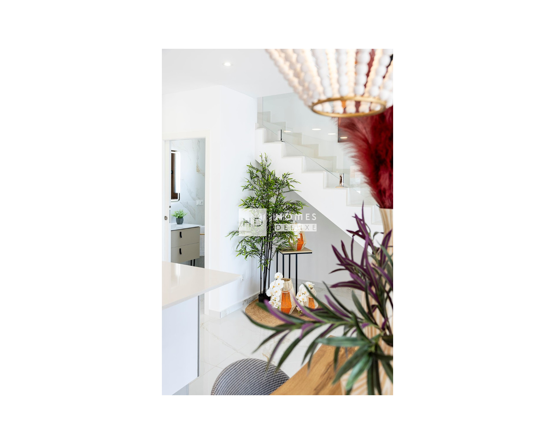 Les propriétés comprennent une pré-installation pour la climatisation, 3 panneaux photovoltaïques sur le toit pour produire de l'électricité, un chauffage au sol dans les salles de bains, des armoires encastrées dans toutes les chambres, des stores électriques dans le salon, la cuisine et les chambres, un système d'interphone vidéo, un jardin paysager de style méditerranéen avec gazon artificiel, gravier, palmiers et végétation, une piscine privée de 7x3 avec zone de banc, douche extérieure, et un parking privé sur le terrain.