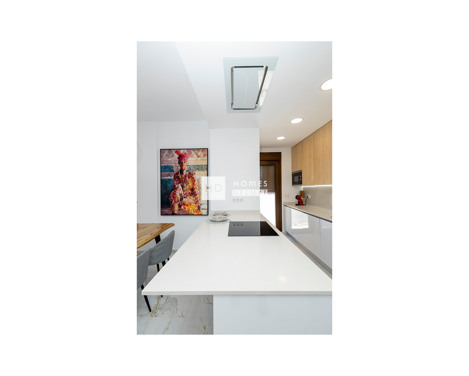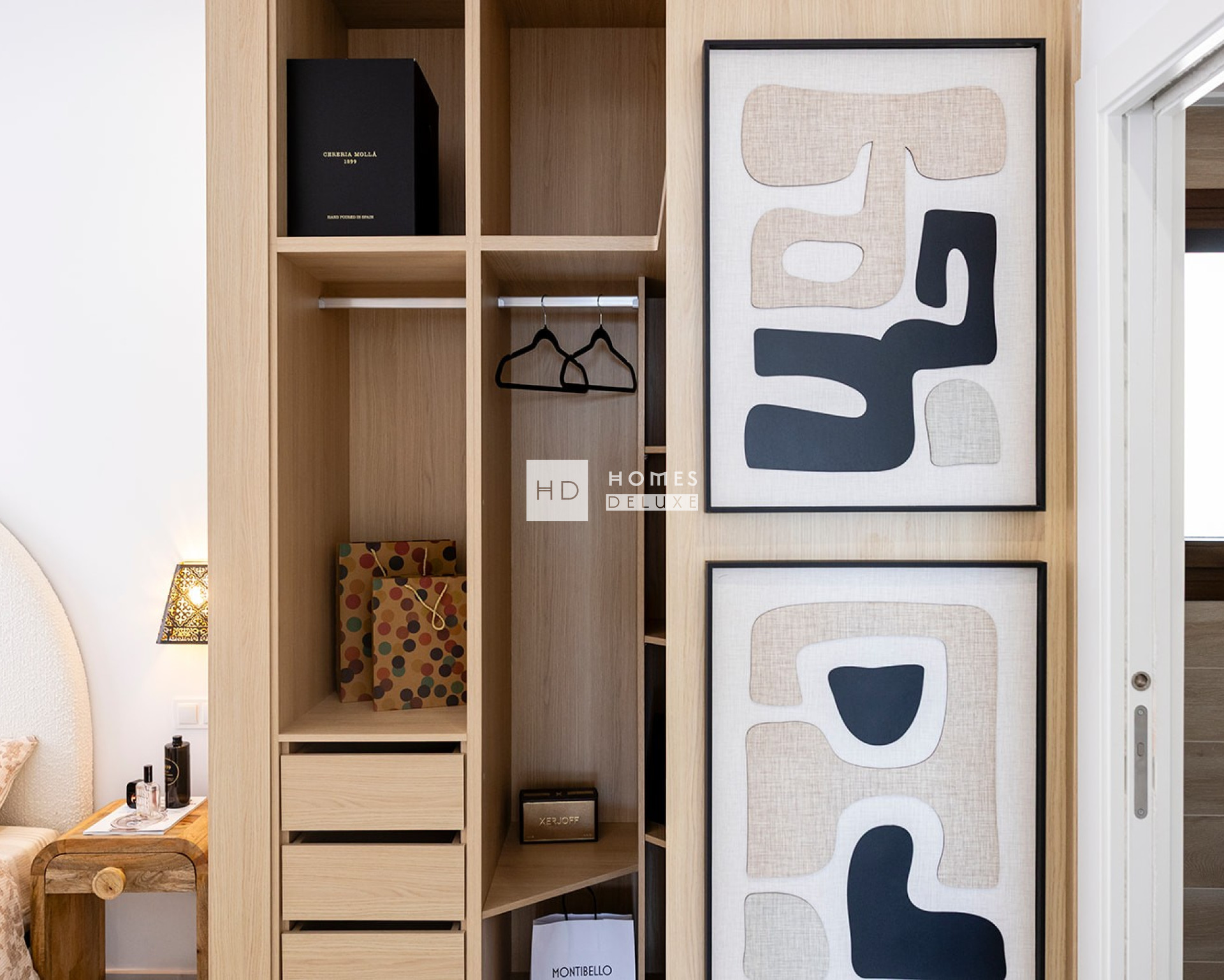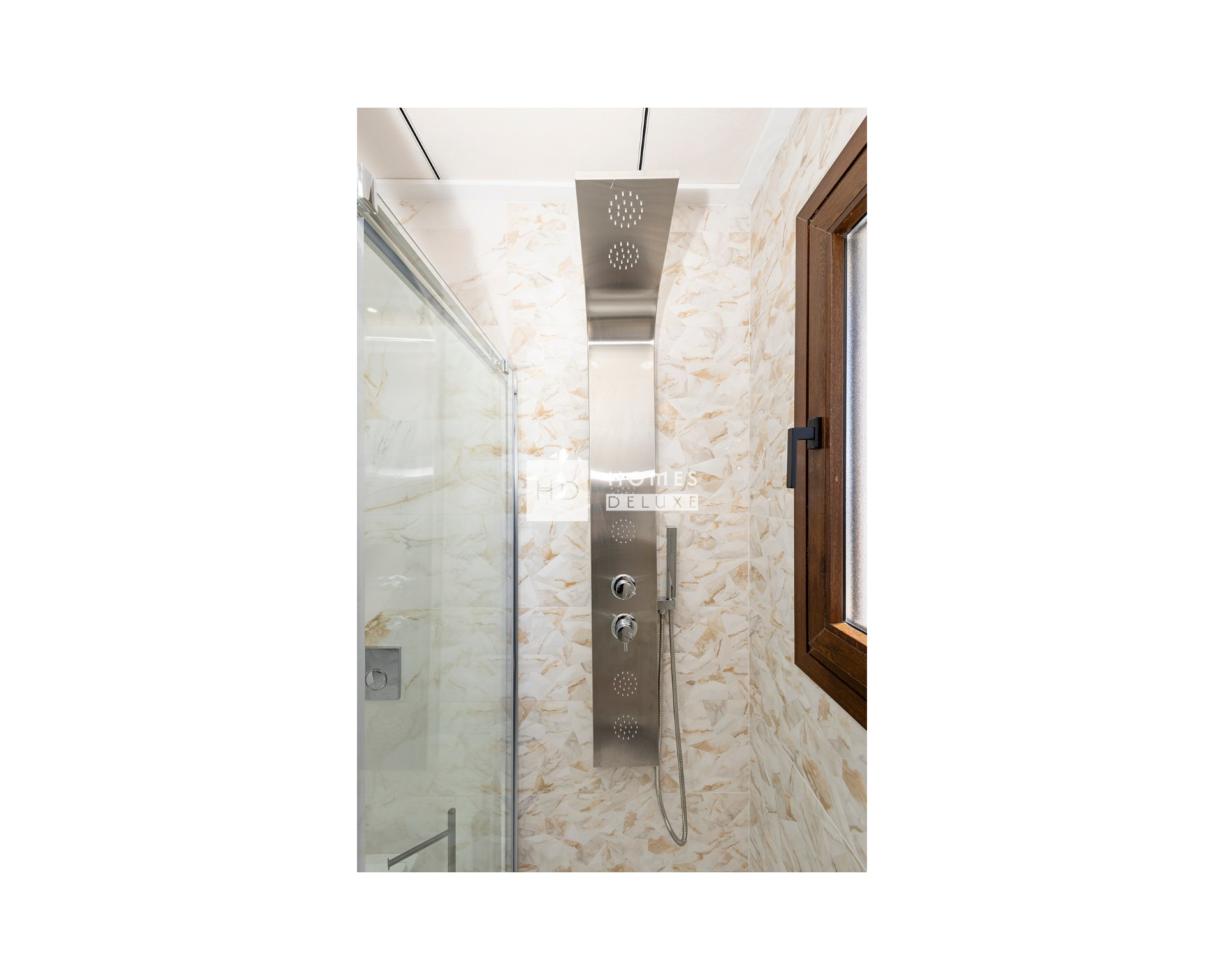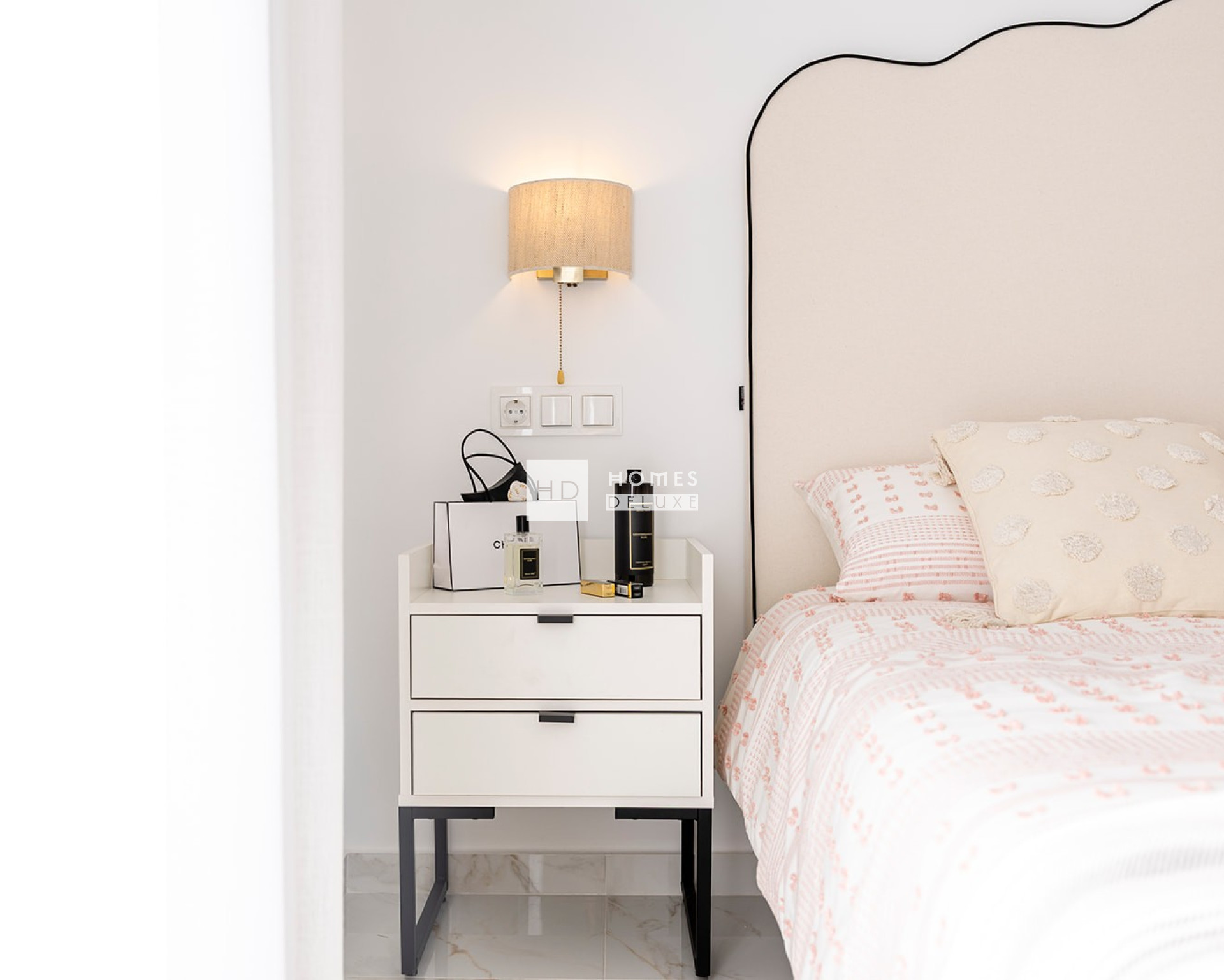 Ce modèle particulier de villa s'étend sur deux niveaux et dispose d'un solarium optionnel sur le toit. L'aménagement intérieur se compose d'un salon et d'une salle à manger ouverts, lumineux et spacieux, avec de grandes fenêtres qui s'ouvrent sur la terrasse. Dans l'espace de vie principal se trouve une cuisine moderne de style américain équipée de placards hauts et bas et d'un plan de travail compact en quartz. Le rez-de-chaussée comprend également une grande chambre double avec salle de bains privative et dressing, ainsi que des toilettes séparées pour les invités. L'escalier intérieur vous conduit au premier étage où se trouve la chambre principale avec salle de bain en-suite qui a accès à une terrasse privée de 28m2 avec vue sur la piscine et le jardin. Il y a une autre chambre double de bonne taille avec salle de bain en-suite qui a un accès privé à une terrasse plus petite. Le solarium optionnel est accessible par un escalier extérieur à l'arrière de la propriété, au premier étage. Le solarium de 46m2 vous permet d'étendre l'espace de vie extérieur où vous pourrez profiter du soleil toute la journée.