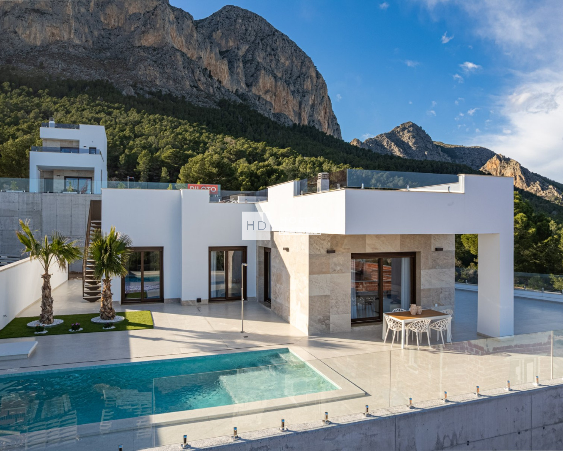 Un tout nouveau projet de 36 villas individuelles de style contemporain avec 3 chambres à coucher, 3 salles de bains et une piscine privée, situé sur le terrain le plus élevé dans les environs spectaculaires de Monte Ponoig à Polop (Alicante), avec une vue imprenable sur la mer et les montagnes.