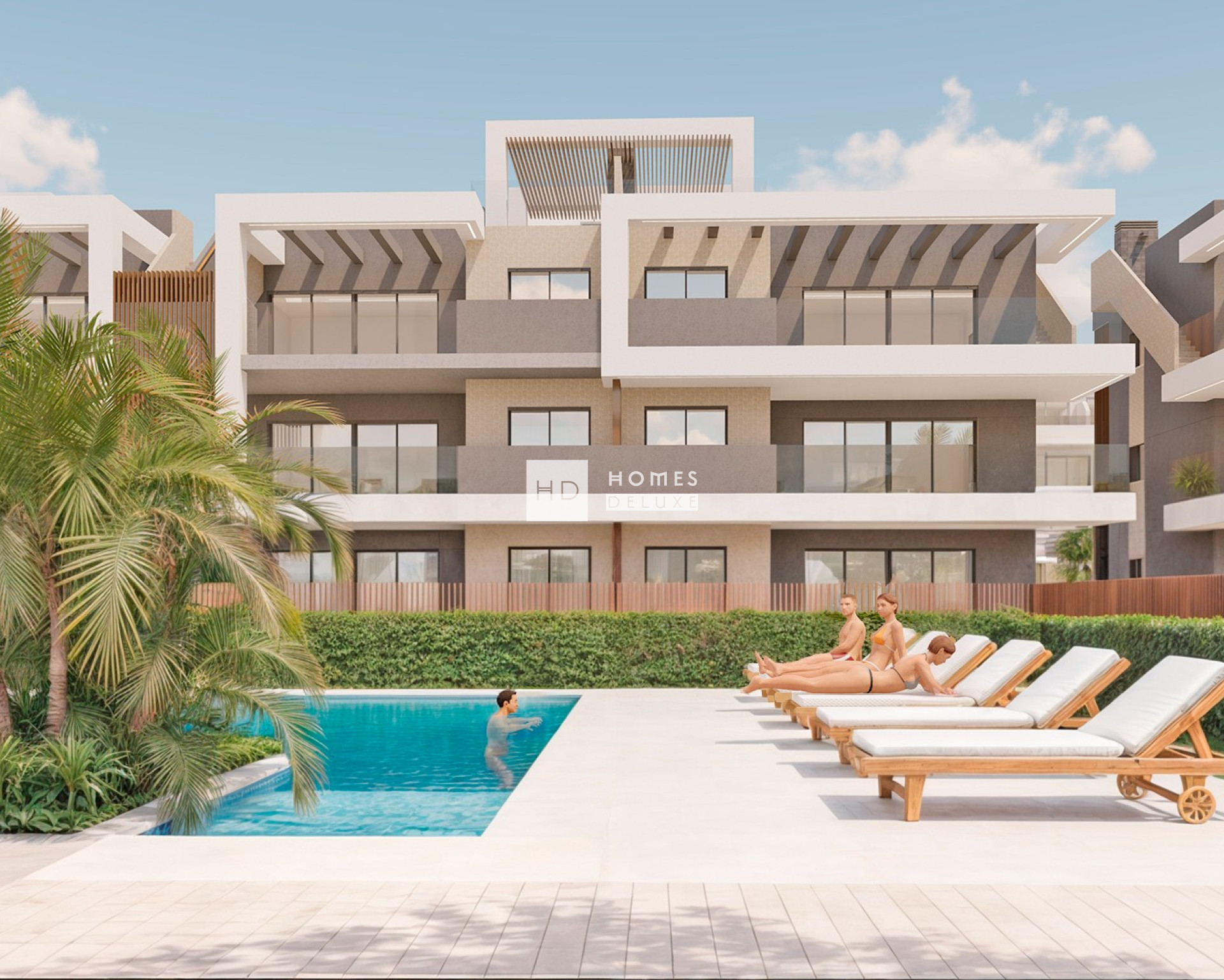 Ce complexe fermé comprend 42 propriétés avec 3 chambres et 2 salles de bains et 6 propriétés avec 2 chambres et 2 salles de bains. Les options au rez-de-chaussée avec un grand jardin privé et un accès direct aux zones communes, les options au premier étage avec de grandes terrasses, et les fabuleux penthouses avec une terrasse et un solarium sur le toit offrant une vue imprenable sur la mer. Les clients qui séjournent dans le complexe pourront profiter et se détendre sans avoir à quitter la résidence grâce aux vastes et magnifiques espaces communs comprenant une grande piscine extérieure pour adultes et enfants, ainsi qu'une aire de jeux pour les enfants. Les autres installations comprennent un spa avec une piscine chauffée, des jets de massage, un sauna et une salle de sport. Le projet comprend également un parking souterrain et une salle de stockage pour chaque propriété dans le sous-sol.