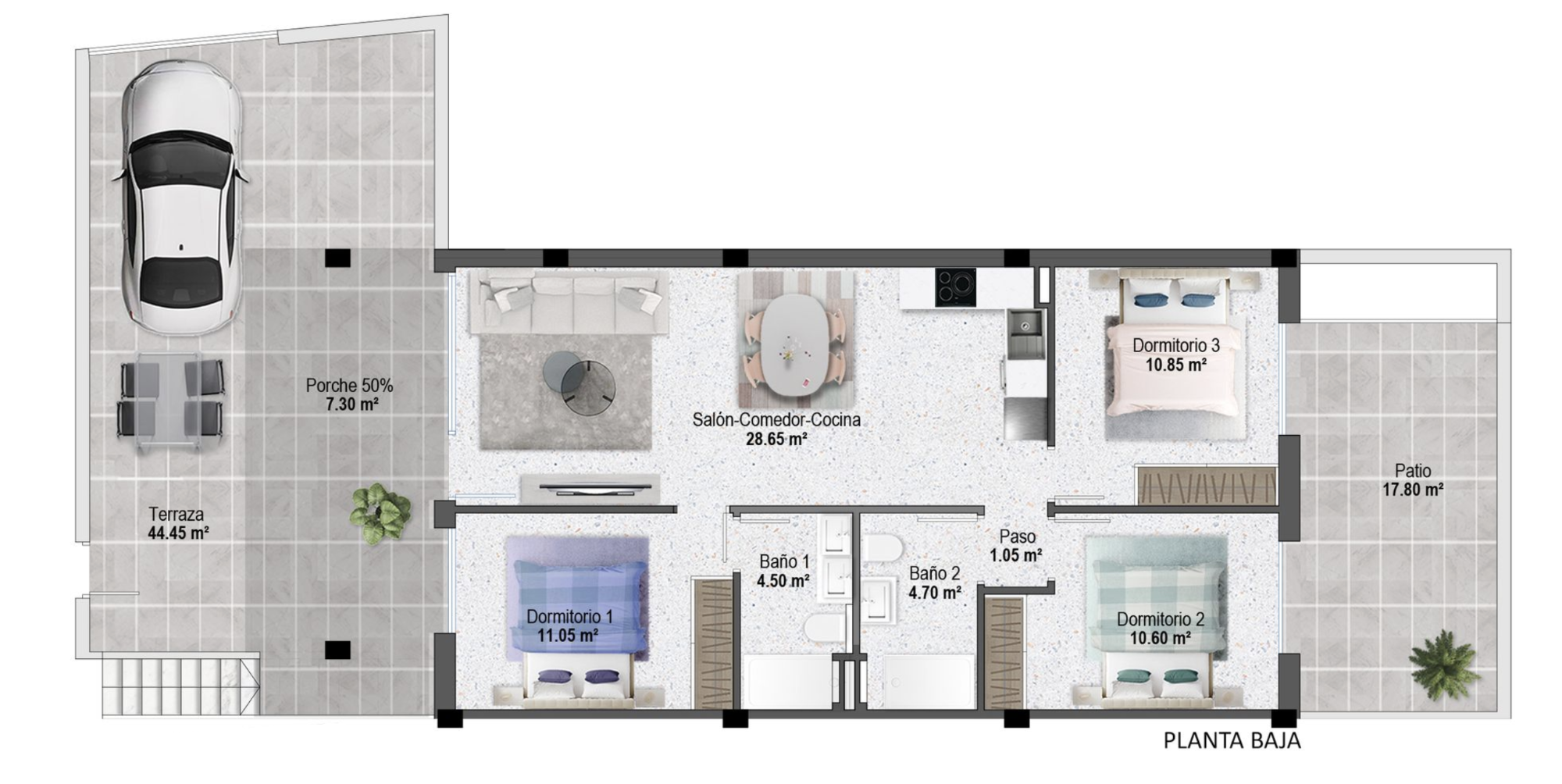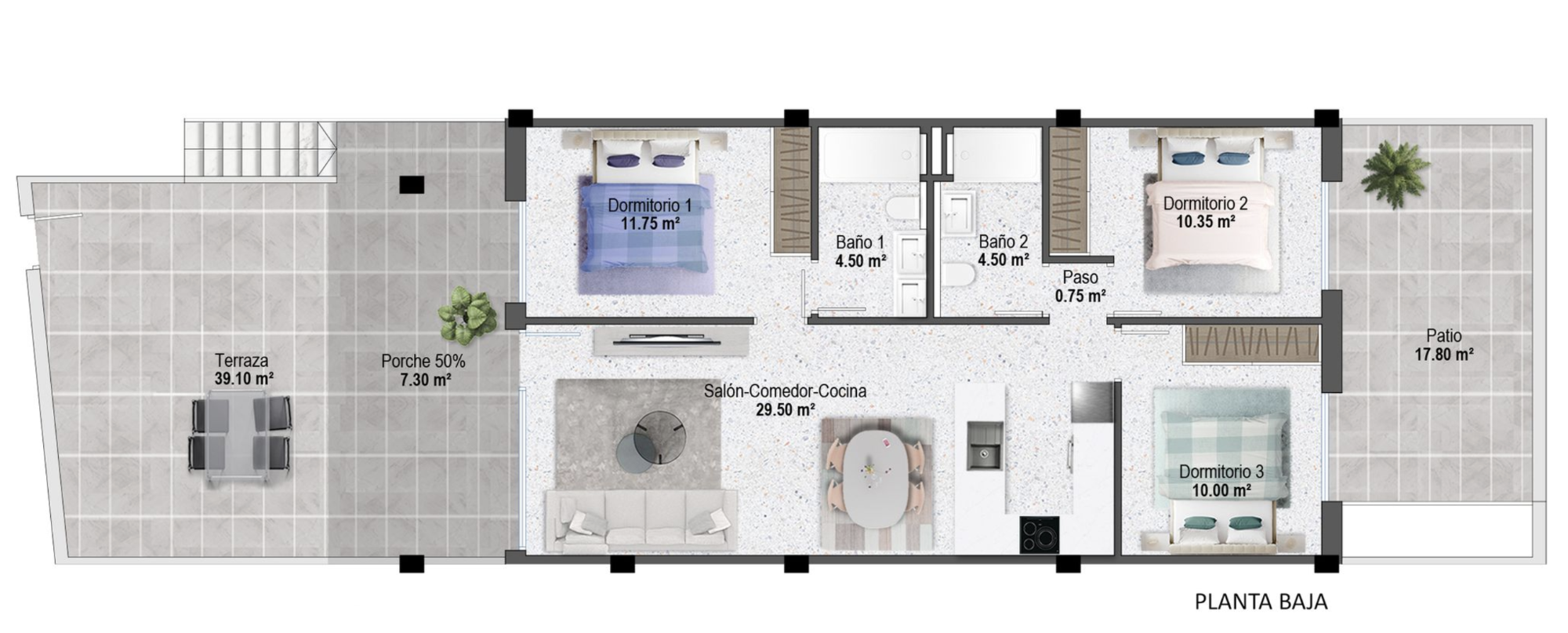 Le complexe comprend des appartements de 3 chambres au rez-de-chaussée avec jardin privé et des appartements de 2 chambres au dernier étage avec solarium privé sur le toit. Les deux options bénéficient de grandes terrasses pour profiter du soleil toute la journée et les résidents ont accès à de beaux jardins communs avec une piscine accueillante. Une autre caractéristique importante de ce projet est la possibilité d'entreposer des bicyclettes au sein de la communauté privée fermée.