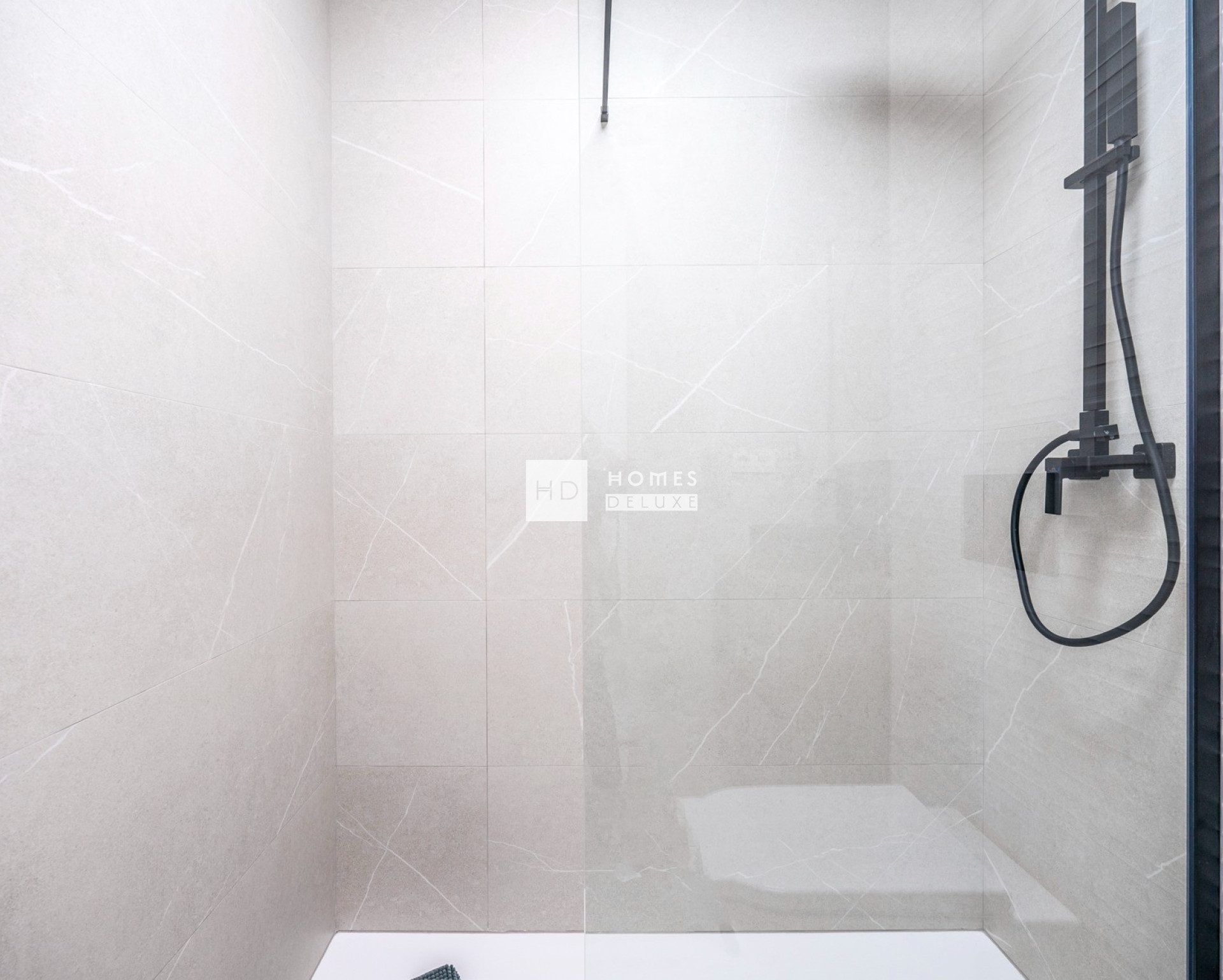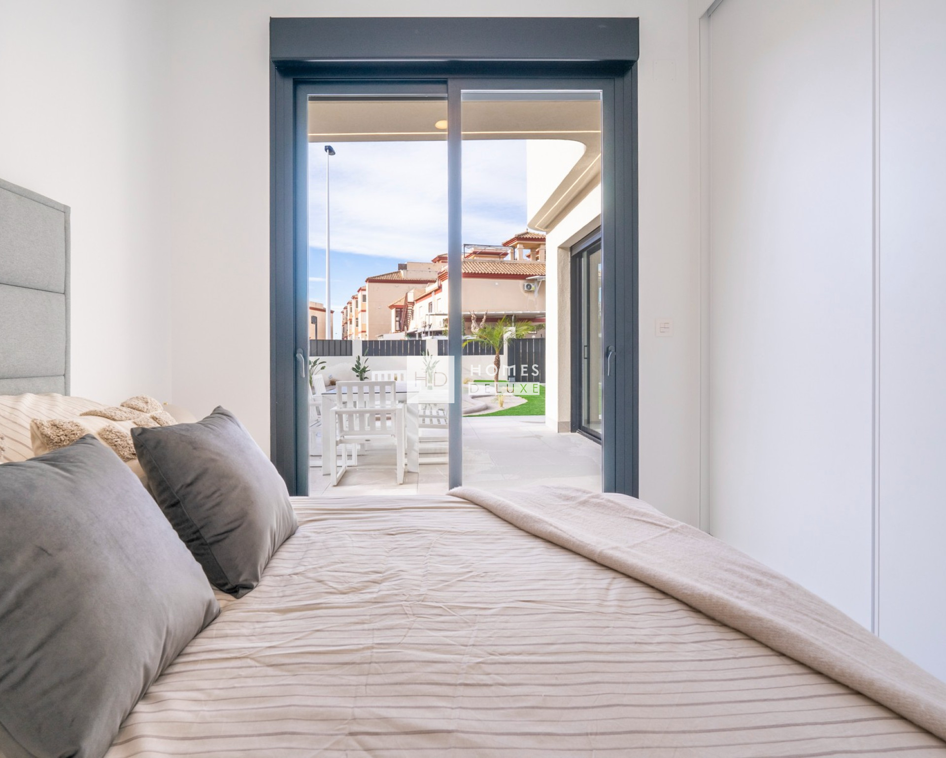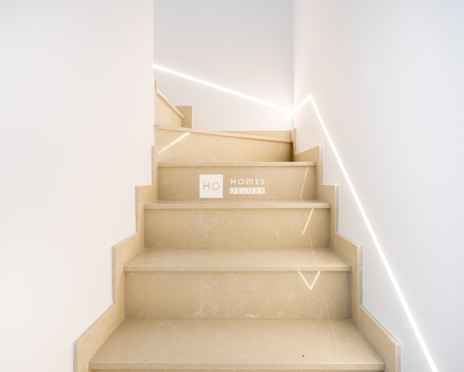 L'aménagement intérieur se compose d'un salon et d'une salle à manger ouverts, lumineux et spacieux, avec de grandes fenêtres donnant sur la terrasse et le jardin. Dans l'espace de vie principal se trouve une cuisine américaine moderne entièrement équipée avec un îlot central, une buanderie séparée et des toilettes pour les invités. Le rez-de-chaussée comprend également une chambre double avec salle de bains attenante. L'escalier intérieur vous conduit au premier étage où se trouve la chambre principale avec salle de bains attenante et dressing. Il y a également une autre chambre double de bonne taille avec salle de bains en-suite. Les deux chambres du premier étage ont un accès par porte-fenêtre à la terrasse ensoleillée.