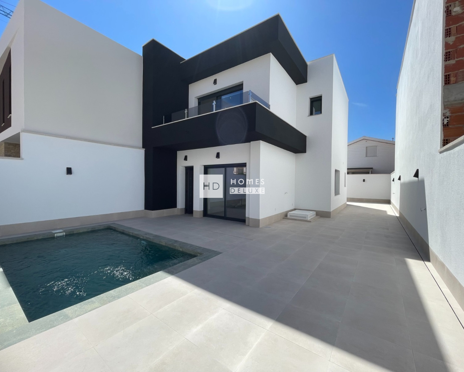 Une toute nouvelle résidence comprenant 5 villas jumelées et individuelles de style contemporain avec 3 chambres, 3 salles de bains et une piscine privée, située dans le charmant village de Las Heredades (Alicante), à la frontière de Rojales. La proximité de Rojales vous offre non seulement un cadre paisible et pittoresque, mais aussi un accès facile aux plages voisines et aux terrains de golf de qualité.