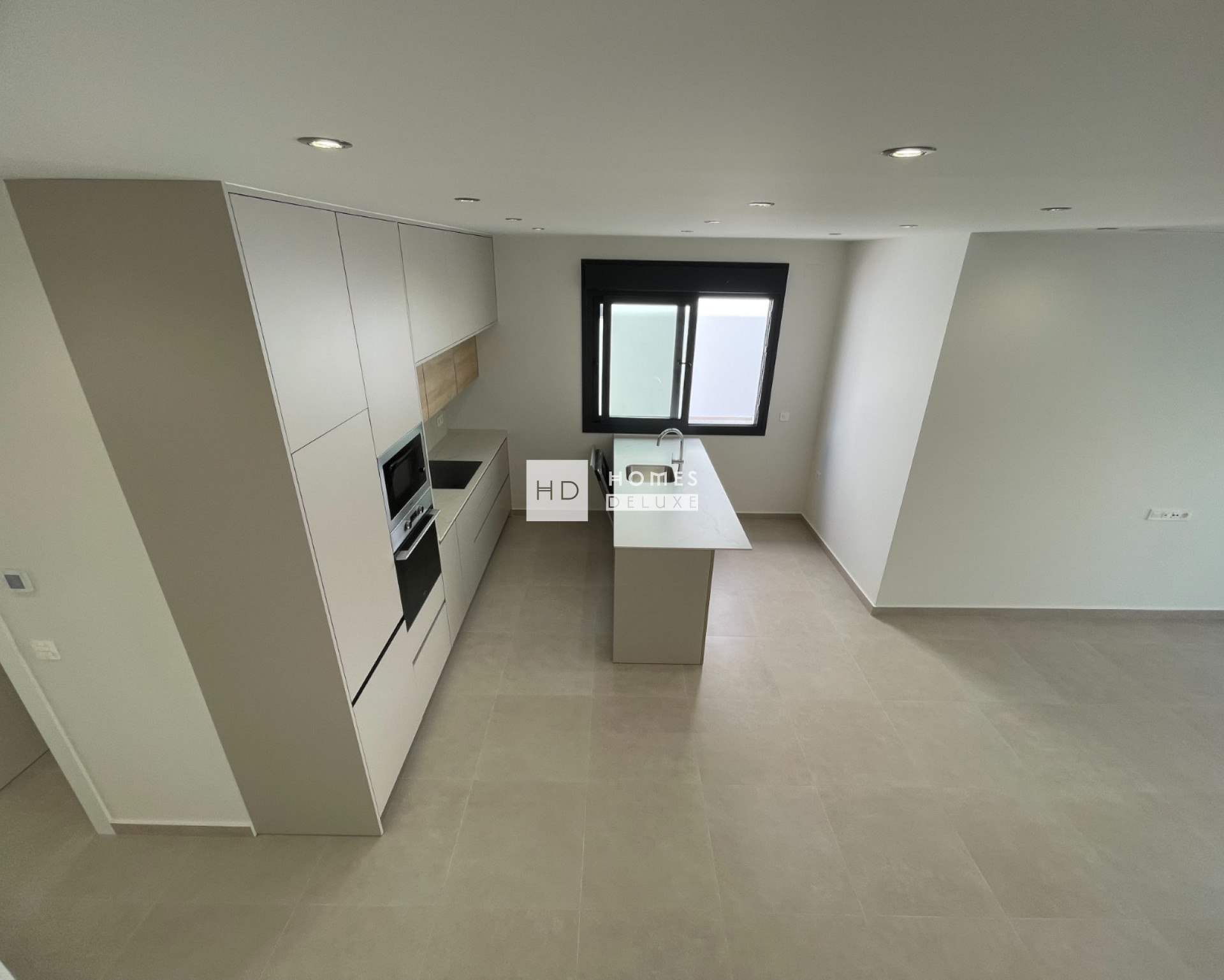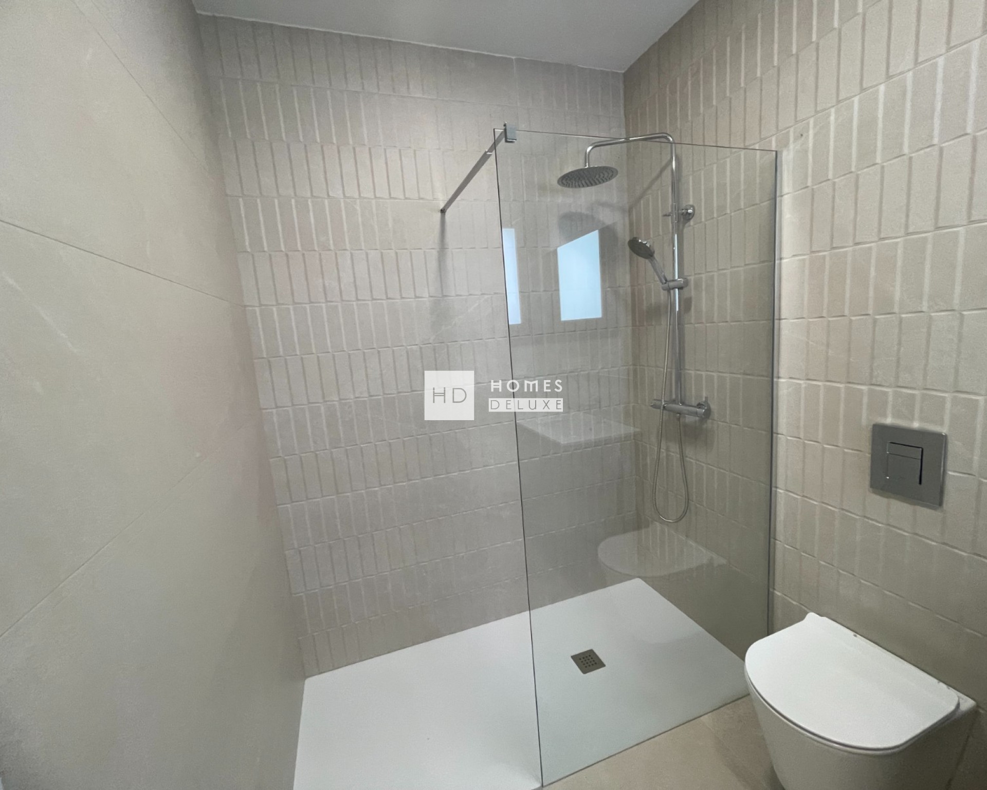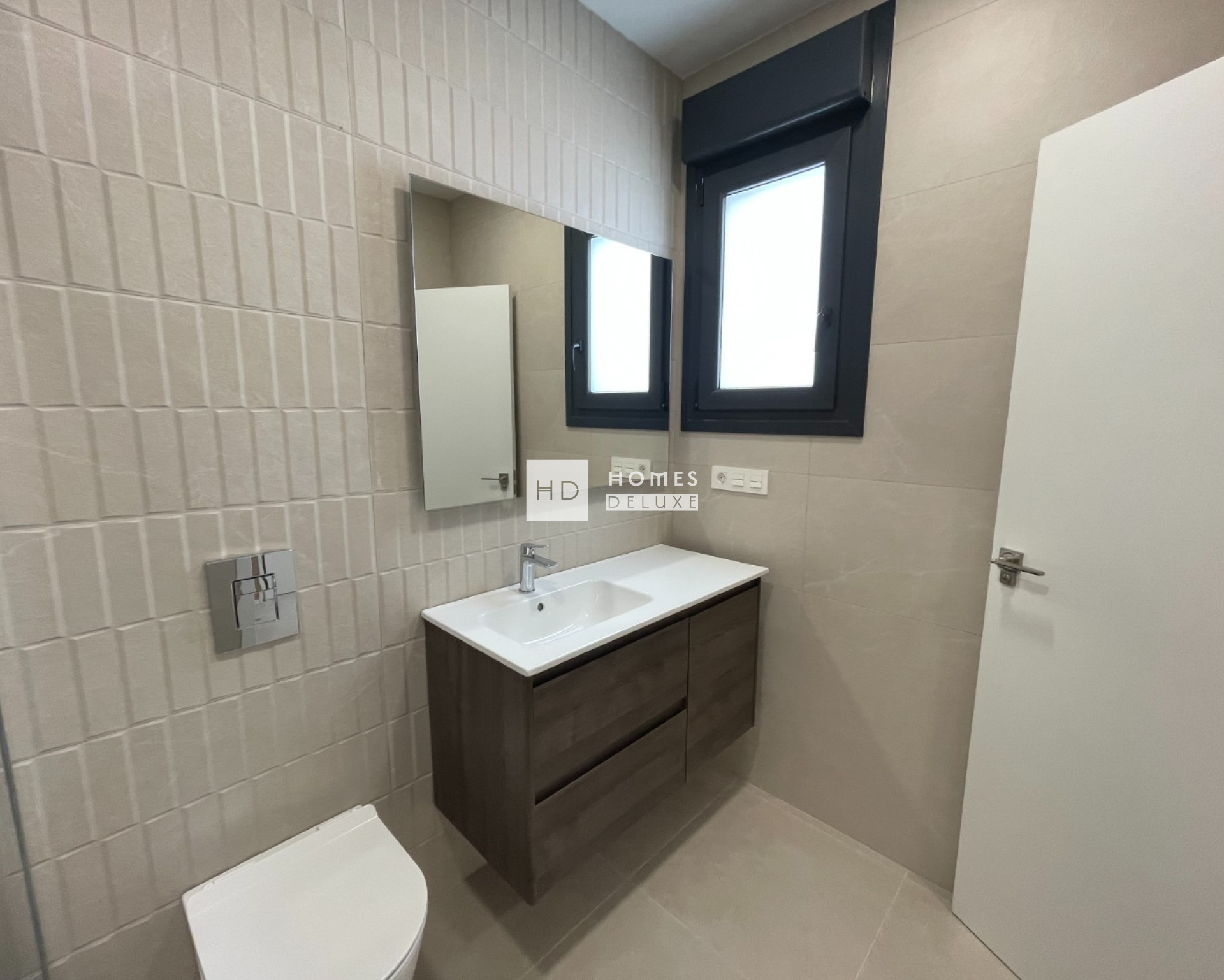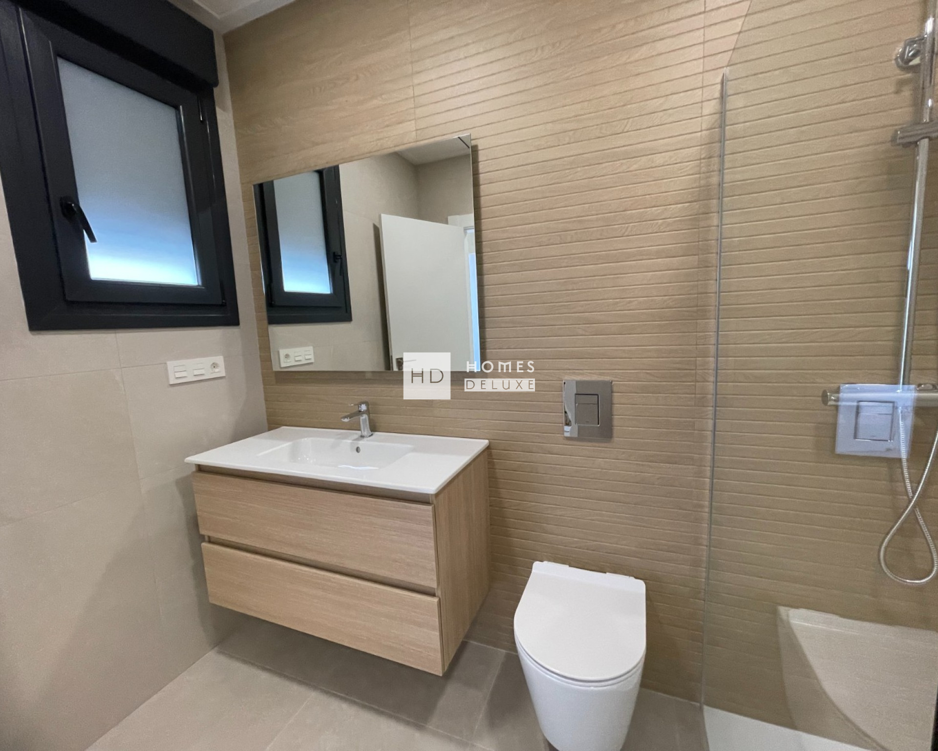L'aménagement intérieur comprend un salon et une salle à manger ouverts, lumineux et spacieux, avec des portes-fenêtres donnant sur la terrasse. Dans l'espace de vie principal se trouve une cuisine moderne entièrement équipée, de style américain, avec un îlot central, et une buanderie séparée très utile. Le rez-de-chaussée comprend également une chambre double de bonne taille avec une porte-fenêtre donnant sur le jardin, ainsi qu'une salle de bains séparée pour les invités. L'escalier intérieur mène au premier étage où se trouvent deux impressionnantes chambres à coucher avec salle de bains attenante et dressing. La suite située à l'avant de la propriété a accès à une terrasse privée donnant sur le jardin et la piscine. Les propriétés comprennent l'air conditionné avec contrôle de zone, les appareils électriques de cuisine, les armoires encastrées dans toutes les chambres, l'éclairage LED intérieur et extérieur, le jardin avec système d'irrigation automatique, la piscine privée et le parking privé sur le terrain.