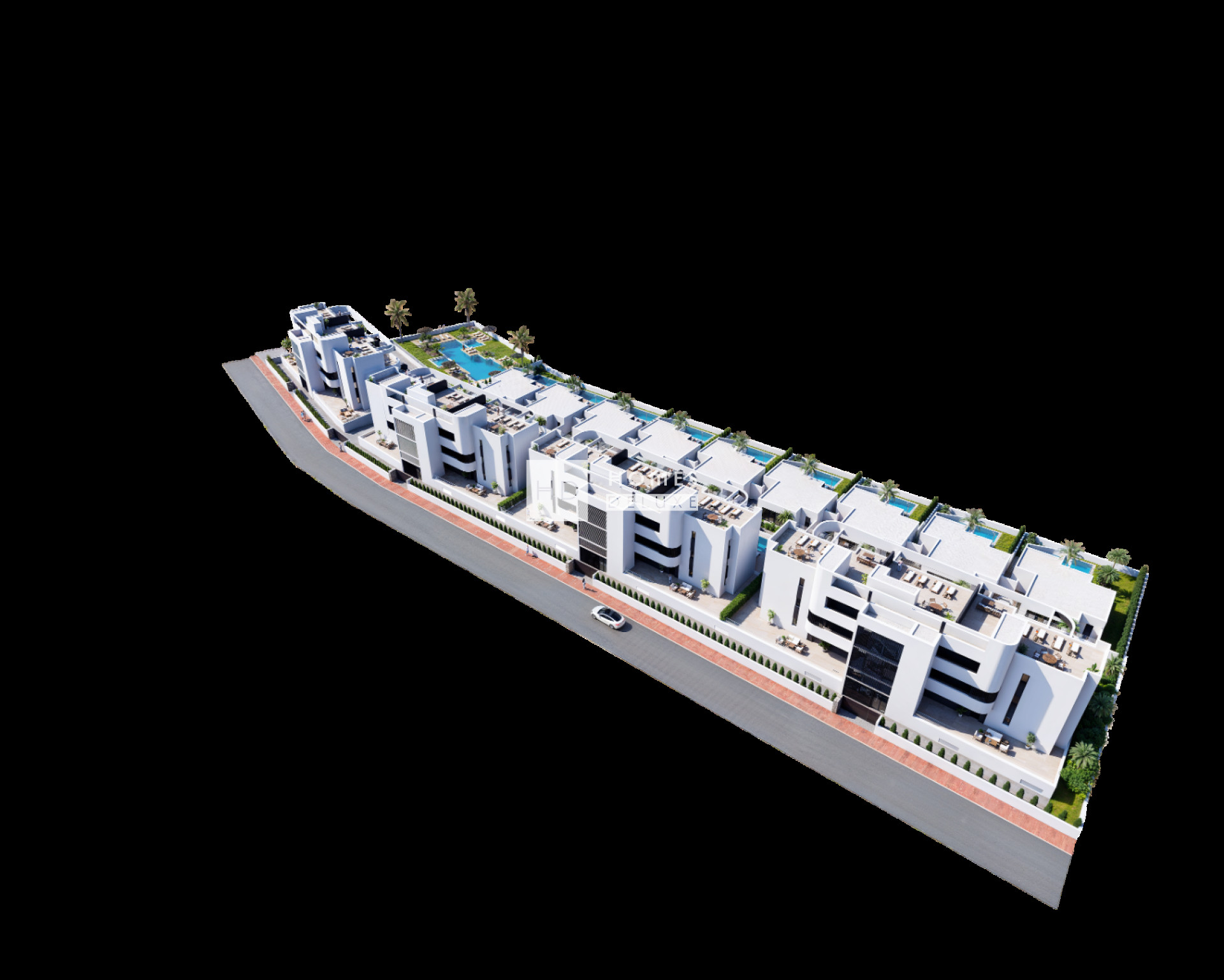 L'aménagement intérieur comprend un hall d'entrée menant à un salon et une salle à manger spacieux et lumineux, avec de grandes fenêtres donnant sur la terrasse privée. Dans l'espace de vie principal se trouve une cuisine moderne de style américain finie dans des tons écrus et bois (d'autres finitions ou couleurs sont disponibles). Il y a également une buanderie / salle de stockage séparée très utile. La grande chambre principale comprend une salle de bain attenante et un dressing, ainsi qu'un accès à la terrasse par une porte-fenêtre. Il y a deux autres chambres doubles de bonne taille et une salle de bain séparée pour les invités. Les options du penthouse bénéficient d'un impressionnant solarium sur le toit de 94m2 ou plus qui est pré-installé pour une cuisine d'été et un jacuzzi.