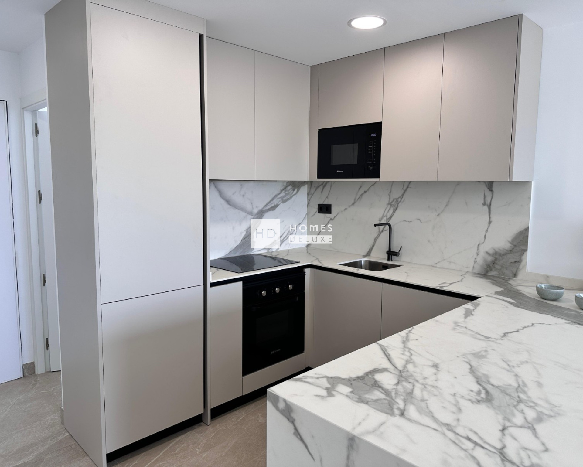 Les appartements se distinguent par leur orientation, leurs terrasses privées, leurs jardins au rez-de-chaussée et leurs vues panoramiques. Ils comprennent des matériaux de haute qualité et bénéficient d'une certification énergétique "AA". Les propriétés comprennent une pré-installation pour l'air conditionné, une plaque vitrocéramique et une hotte aspirante dans la cuisine, des armoires encastrées dans toutes les chambres, des stores électriques, un système d'interphone vidéo et une place de parking souterrain.