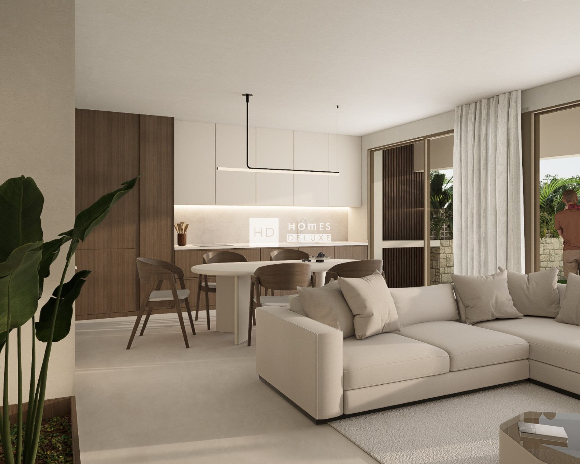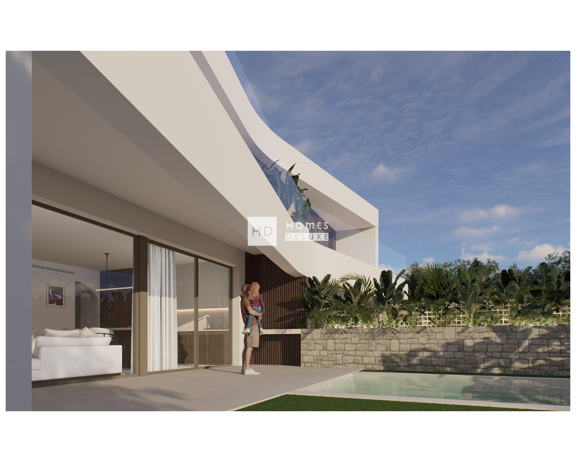 L'aménagement intérieur comprend des pièces ouvertes et communicantes qui privilégient l'entrée de la lumière naturelle et la sensation d'espace. La villa offre la possibilité de répartir les pièces selon vos préférences et avec le choix entre 2 ou 3 chambres, le choix entre une cuisine américaine dans le salon ou une cuisine indépendante, le tout avec un design moderne et des finitions de haute qualité.