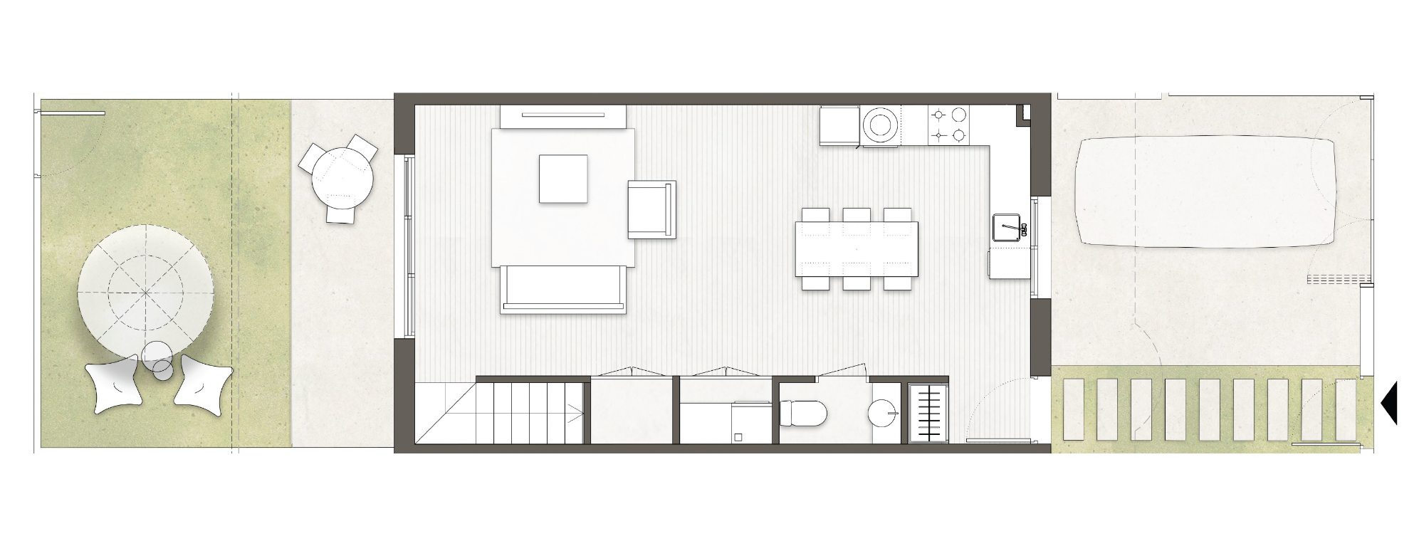 Les propriétés sont réparties sur deux niveaux avec un solarium sur le toit et sont conçues pour offrir intimité et lumière naturelle. Vous avez le choix entre des propriétés de 2 chambres et 2,5 salles de bains ou de 3 chambres et 2,5 salles de bains. L'aménagement intérieur comprend un spacieux salon et une salle à manger ouverts avec des portes-fenêtres donnant sur la terrasse et le jardin. Dans l'espace de vie principal se trouve une cuisine moderne de style américain avec une porte donnant accès à l'arrière de la propriété et au parking. Le rez-de-chaussée comprend également une buanderie séparée très pratique et des toilettes pour invités. L'escalier intérieur vous mène au premier étage où se trouve l'impressionnante suite principale avec une grande chambre, une salle de bains attenante et un dressing avec de nombreux espaces de rangement. Il y a deux autres chambres doubles de bonne taille et une salle de bains séparée pour les invités. Les deux chambres ont accès par des portes-fenêtres à une terrasse privée à l'arrière de la propriété, qui dispose d'un escalier extérieur menant au vaste solarium sur le toit pour profiter du soleil toute la journée.