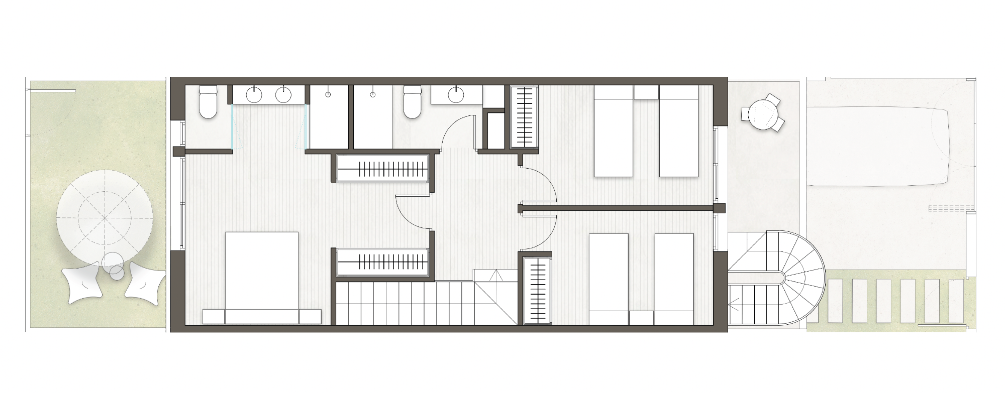 Les maisons intègrent des solutions de construction hautement efficaces et de grande qualité afin de favoriser le bien-être, la protection de l'environnement et les économies d'énergie. Les résidents de ce complexe résidentiel profiteront de l'un des meilleurs climats au monde. Les maisons sont composées de deux à trois façades, ce qui permet une lumière naturelle et une ventilation de qualité. Elles comprennent quatre terrasses avec différentes orientations pour profiter à la fois du soleil et de l'ombre, un grand solarium sur le toit et un parking privé dans chaque maison, ainsi qu'une piscine commune extérieure chauffée et un espace de détente pour le plaisir des résidents.