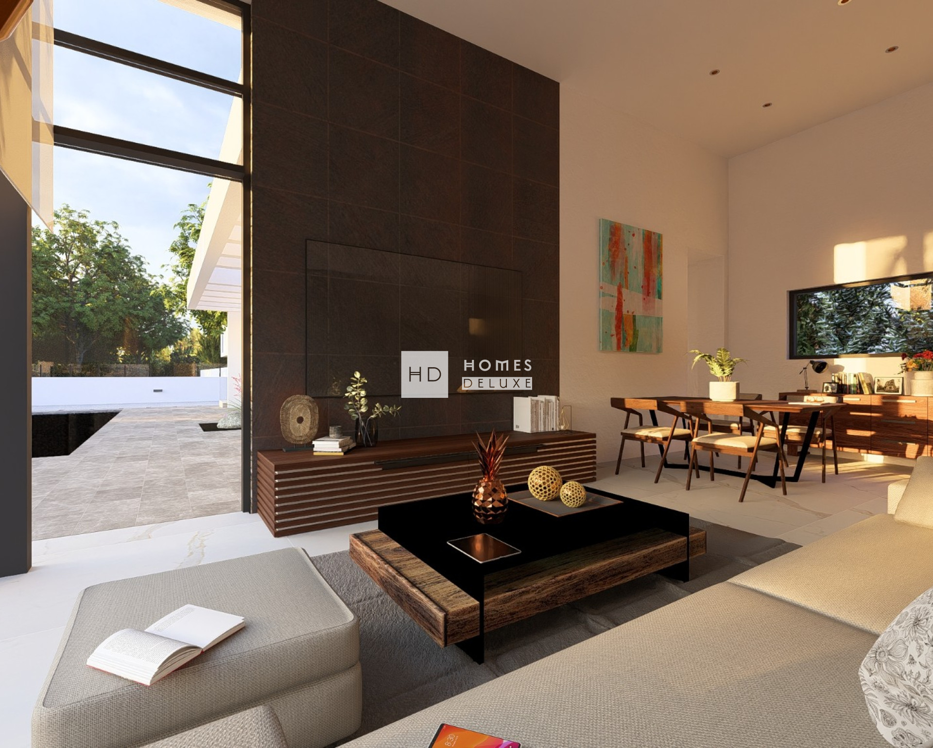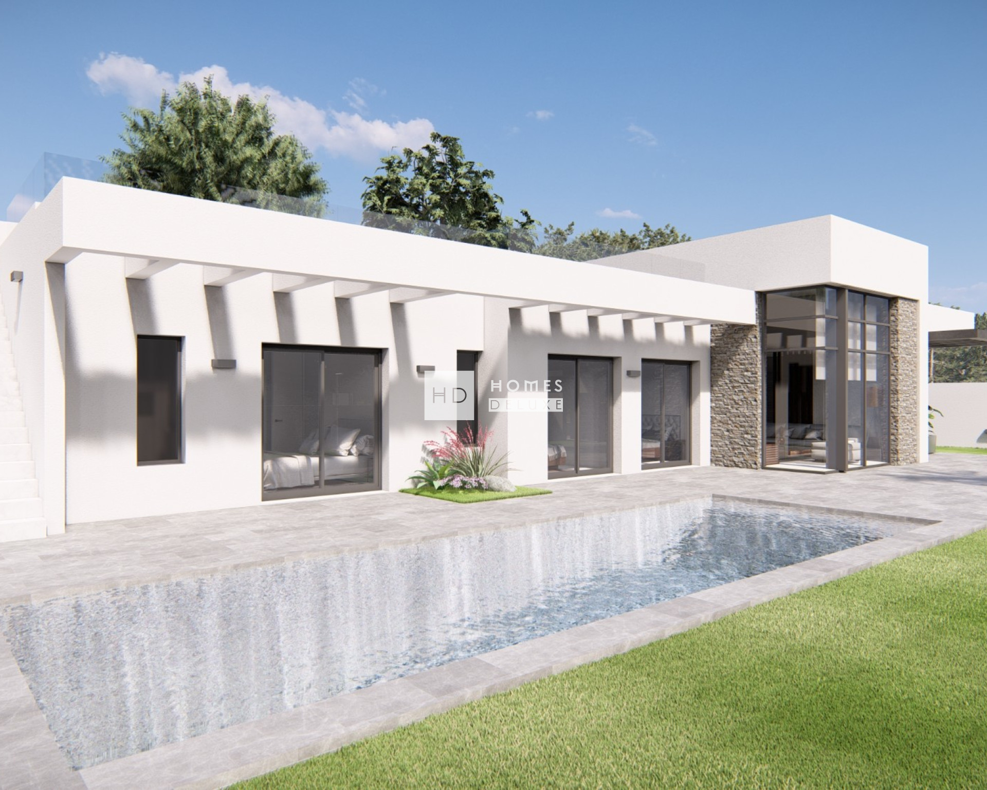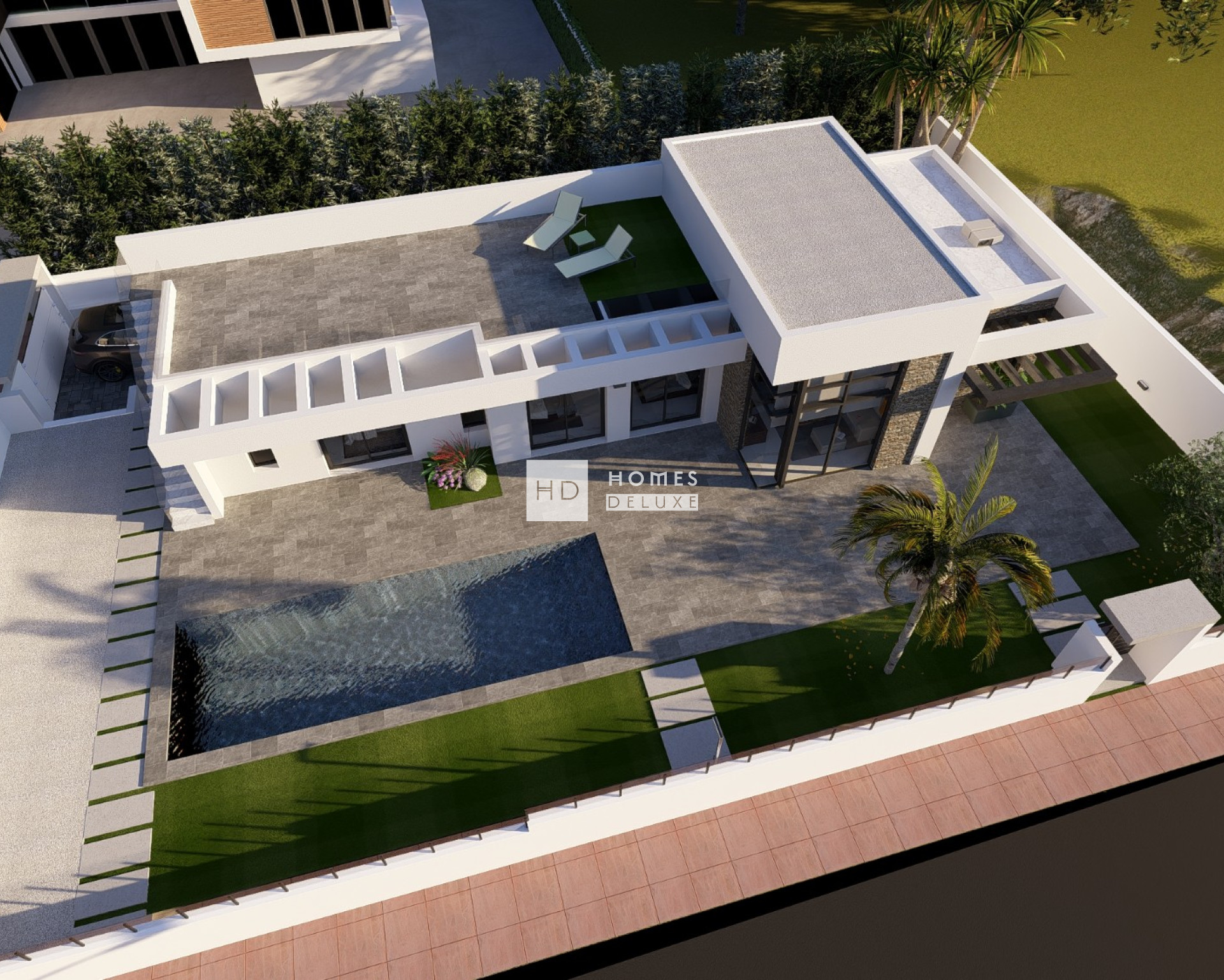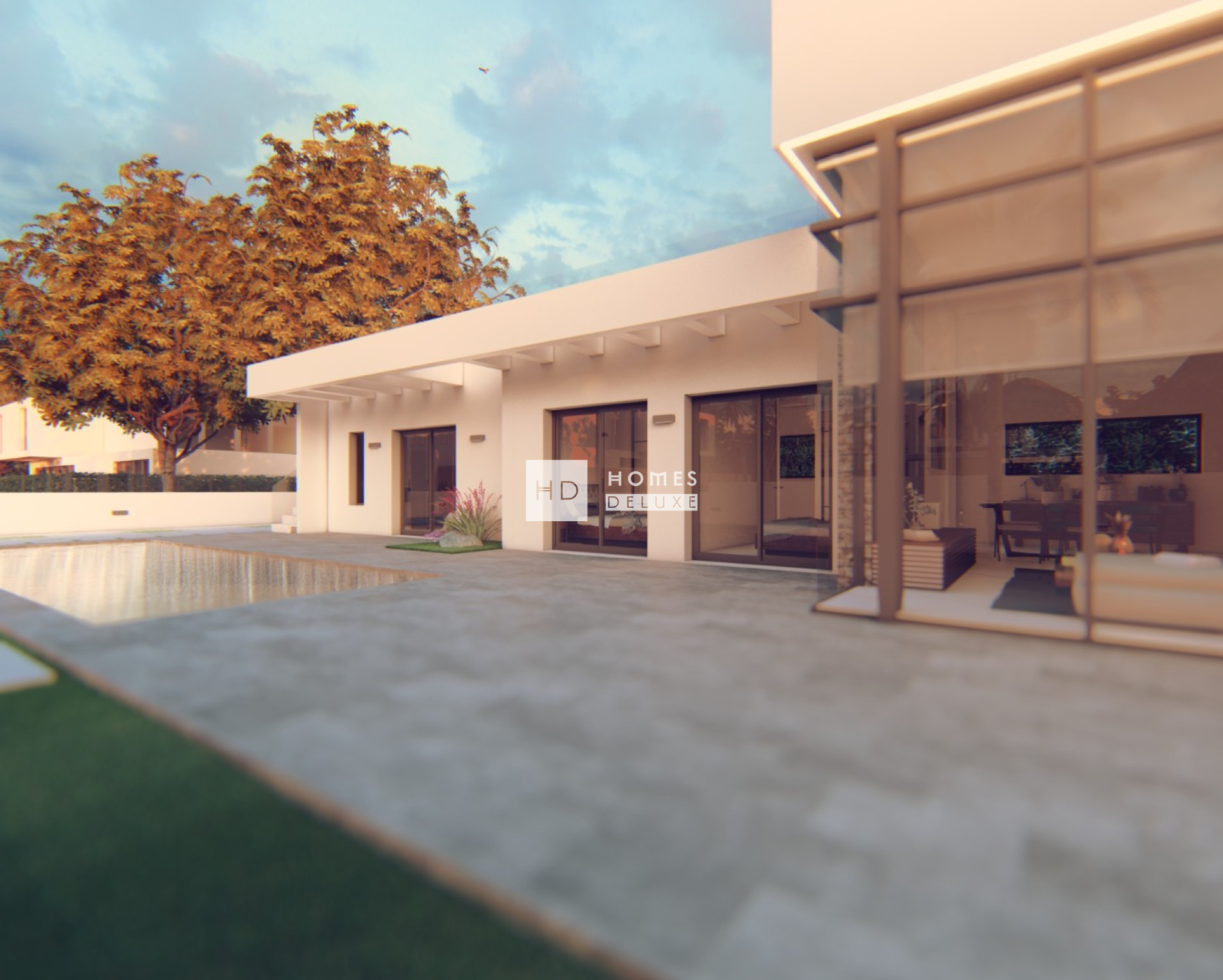 La maison est livrée entièrement équipée, à l'intérieur comme à l'extérieur, avec la climatisation, le chauffage au sol dans toutes les salles de bains, les appareils électroménagers de cuisine, des armoires encastrées dans toutes les chambres, un éclairage LED intérieur et extérieur, un jardin avec gazon artificiel et gravier blanc, une piscine privée avec pré-installation pour une pompe à chaleur, une douche extérieure et un garage privé.