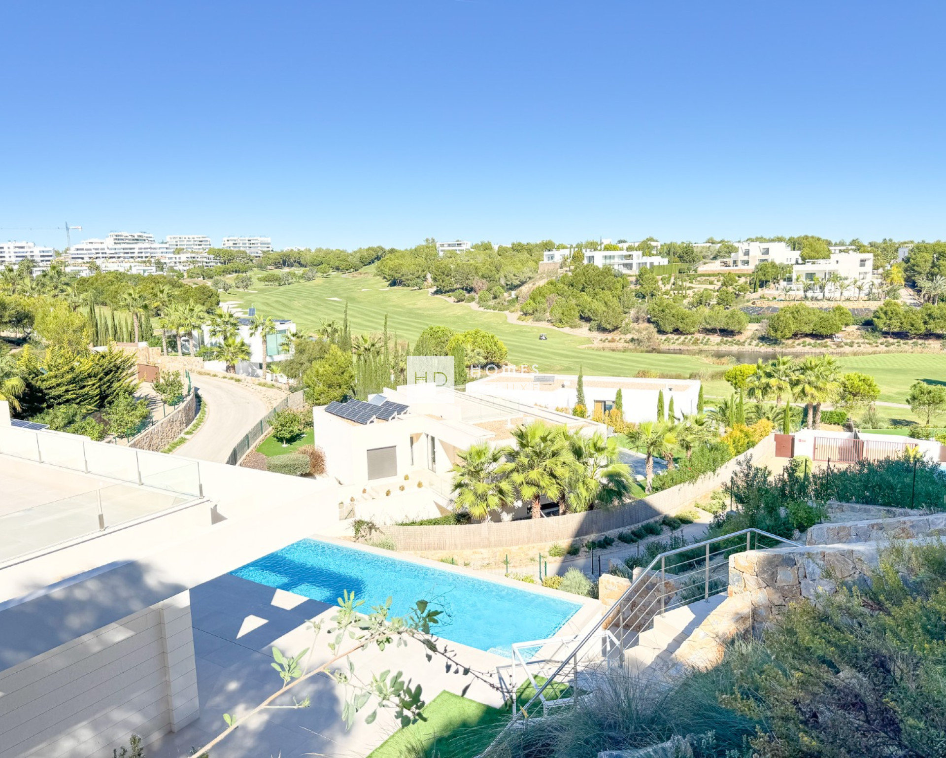 Luxueuse villa indépendante dans la communauté Madroño Las Colinas Golf avec 5 chambres, 4 salles de bains, salle de cinéma, garage, sous-sol et piscine privée avec vue imprenable sur le terrain de golf. Emplacement privé en deuxième ligne du terrain de golf. Vues panoramiques à 180° depuis une grande terrasse au rez-de-chaussée, ainsi que des terrasses supplémentaires à l'étage supérieur. Grand sous-sol avec 3 chambres, 2 salles de bains, une salle de cinéma et une buanderie. Garage privé pour deux voitures et espace pour plusieurs autres. Cuisine moderne avec des appareils électroménagers haut de gamme et un design moderne avec des finitions de haute qualité et de nombreuses caractéristiques spéciales. Située dans le complexe de golf exclusif de Las Colinas, cette propriété offre un magnifique refuge pour travailler depuis votre bureau à domicile ou vous détendre en famille. À seulement quelques minutes de toutes les commodités locales, ainsi que d'autres terrains de golf, de baies accueillantes avec des plages de sable blanc et des magasins.