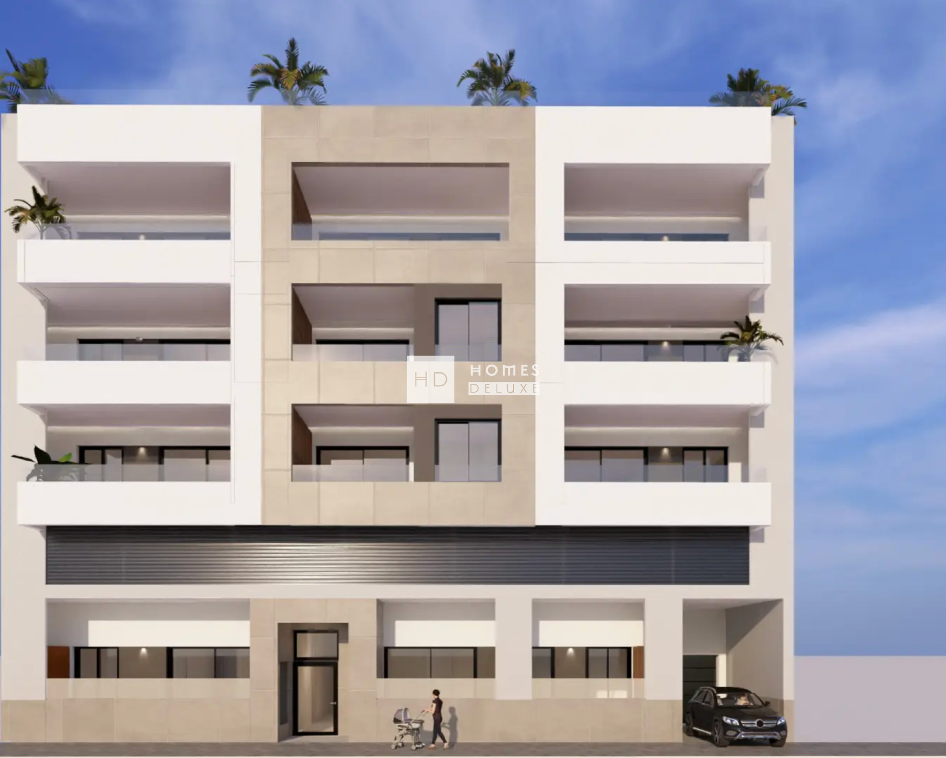 L'aménagement intérieur comprend un hall d'entrée menant au spacieux salon et salle à manger ouverts, dotés de grandes fenêtres qui s'ouvrent sur la terrasse privée. Dans l'espace de vie principal se trouve une cuisine américaine moderne entièrement équipée, avec une finition laquée blanche et des portes vitrées. La grande chambre principale comprend une salle de bains attenante. Il y a deux autres chambres doubles de bonne taille et une salle de bains séparée pour les invités. Les penthouses de 4 chambres disposent d'un escalier intérieur menant au premier étage, où se trouvent une autre chambre double avec salle de bains attenante, ainsi qu'un vaste solarium sur le toit qui agrandit encore l'espace extérieur. Les propriétés sont équipées d'une pré-installation pour la climatisation centralisée, d'appareils électroménagers de cuisine (four, plaque de cuisson, hotte aspirante, micro-ondes et réfrigérateur-congélateur), d'armoires encastrées dans toutes les chambres et d'un parking extérieur privé.