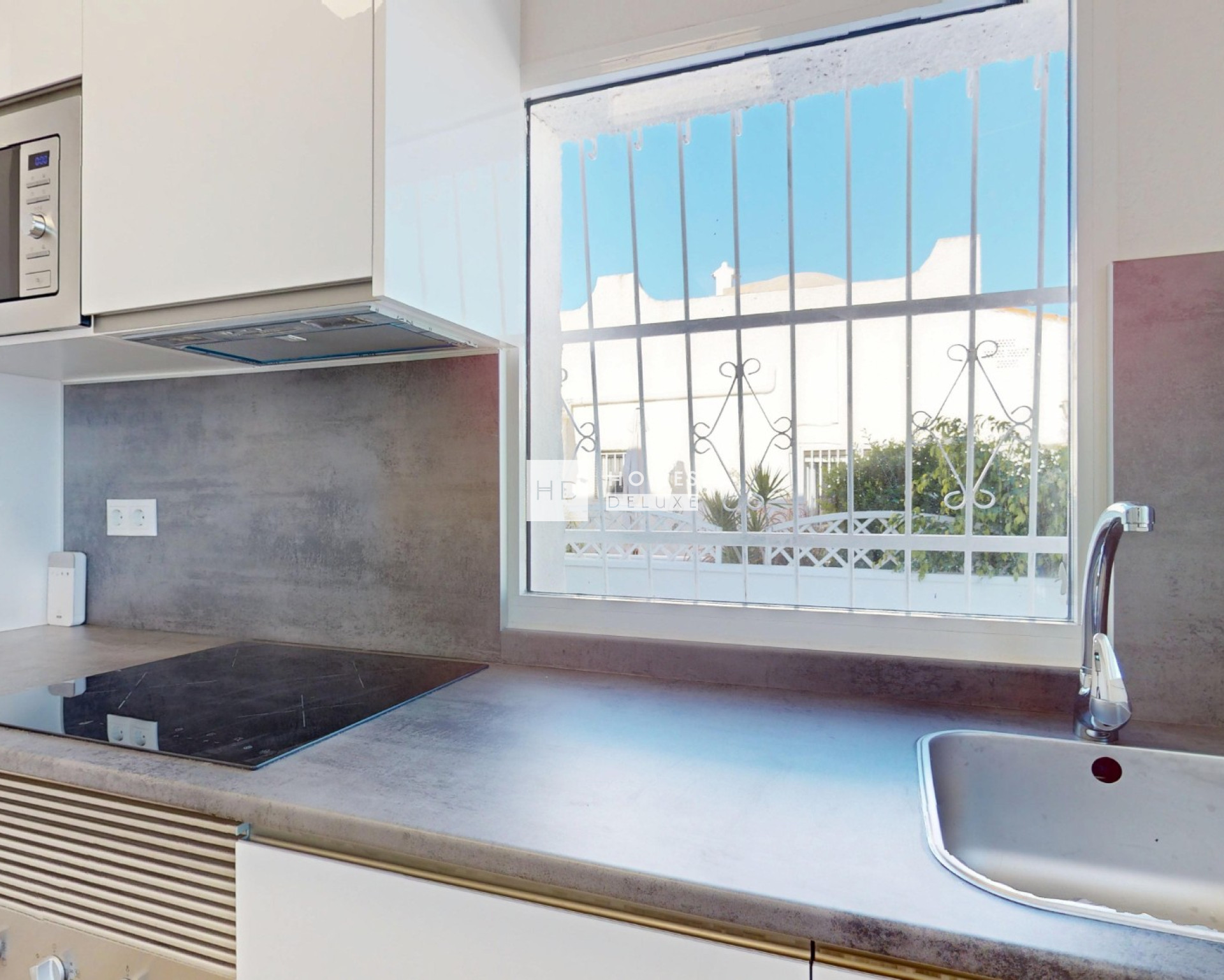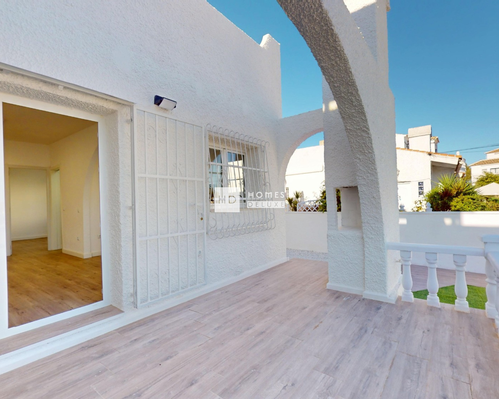 La propriété, qui a été entièrement rénovée, offre une surface habitable de 58 m² avec 2 chambres, 1 salle de bains, du parquet stratifié et une cuisine toute neuve équipée de tous les appareils électroménagers. La propriété dispose d'un terrain généreux de 202 m² et se distingue par son extérieur spacieux et son jardin de 147 m², parfait pour profiter du climat toute l'année. De plus, le grand terrain permet au futur propriétaire d'installer une piscine privée s'il le souhaite (à ses frais). L'espace extérieur est encore agrandi par le solarium de 48 m² sur le toit, avec gazon artificiel et clôture en bruyère, qui offre un espace idéal pour se détendre en toute intimité.