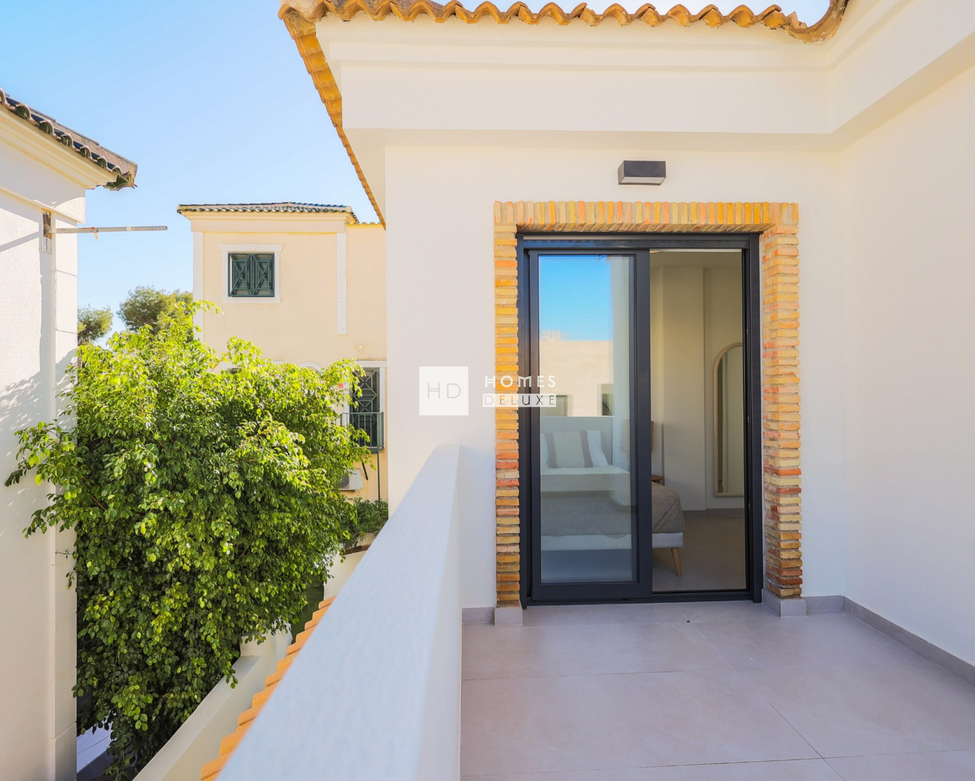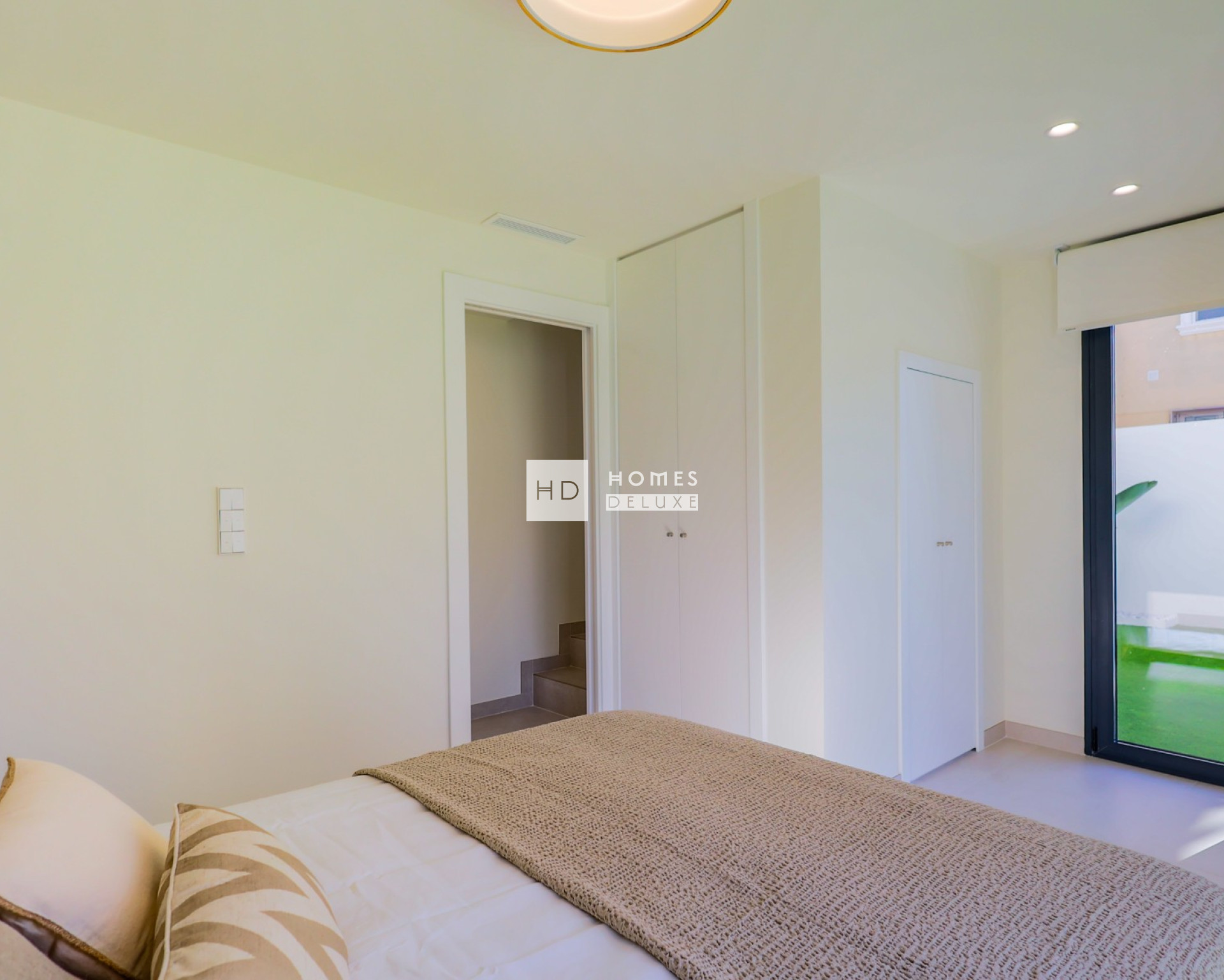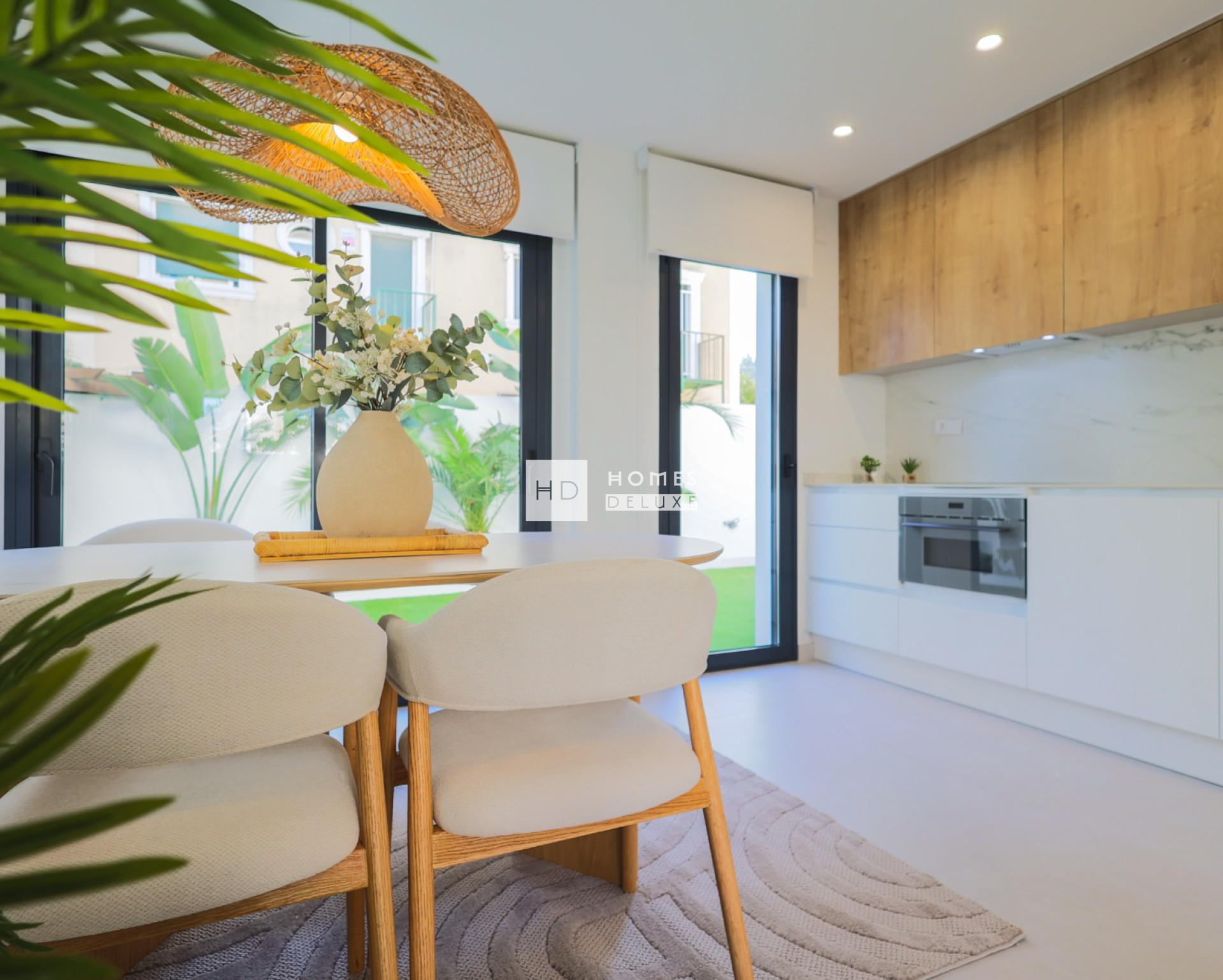 L'aménagement intérieur comprend un hall d'entrée menant au spacieux salon et à la salle à manger ouverts, avec de grandes fenêtres dans tout l'espace créant beaucoup de lumière naturelle. Dans l'espace de vie principal se trouve une cuisine américaine entièrement équipée et élégante, avec des finitions en blanc et en bois. Le rez-de-chaussée comprend une chambre double de bonne taille avec de grandes fenêtres doubles donnant sur la piscine, et une salle de bains séparée pour les invités. L'escalier intérieur vous mène au premier étage où vous trouverez deux autres chambres doubles et une salle de bains familiale. Les deux chambres du premier étage ont accès à leur propre terrasse privée par une porte-fenêtre.