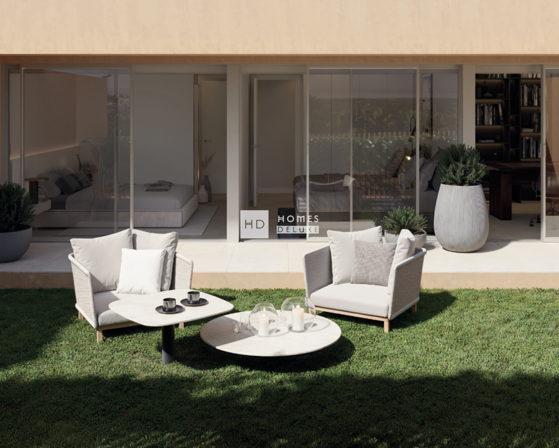 Vous avez le choix entre des appartements au rez-de-chaussée avec jardin privé et terrasse à l'avant et à l'arrière de la propriété, et des appartements au dernier étage avec un grand solarium privé sur le toit offrant une vue panoramique sur les lacs salés de Torrevieja. Les deux modèles tirent le meilleur parti de l'espace de vie extérieur. Certains appartements disposent d'un sous-sol qui agrandit encore l'espace de vie. L'aménagement intérieur comprend un salon et une salle à manger ouverts, lumineux et spacieux, avec de grandes fenêtres donnant sur la terrasse. Dans l'espace de vie principal se trouve une cuisine moderne de style américain avec des armoires basses et hautes, ainsi qu'un espace séparé dédié à la machine à laver et au chauffe-eau. La grande chambre principale comprend une salle de bains attenante et un dressing. Il y a une autre chambre double de bonne taille et une salle de bains séparée pour les invités. Les appartements du dernier étage disposent d'un escalier extérieur sur la terrasse avant qui mène au vaste solarium de 65 m² sur le toit. Les propriétés sont équipées d'une pré-installation pour la climatisation, d'armoires encastrées dans toutes les chambres, d'un éclairage LED extérieur, de stores électriques, d'un parking souterrain privé et d'un débarras.