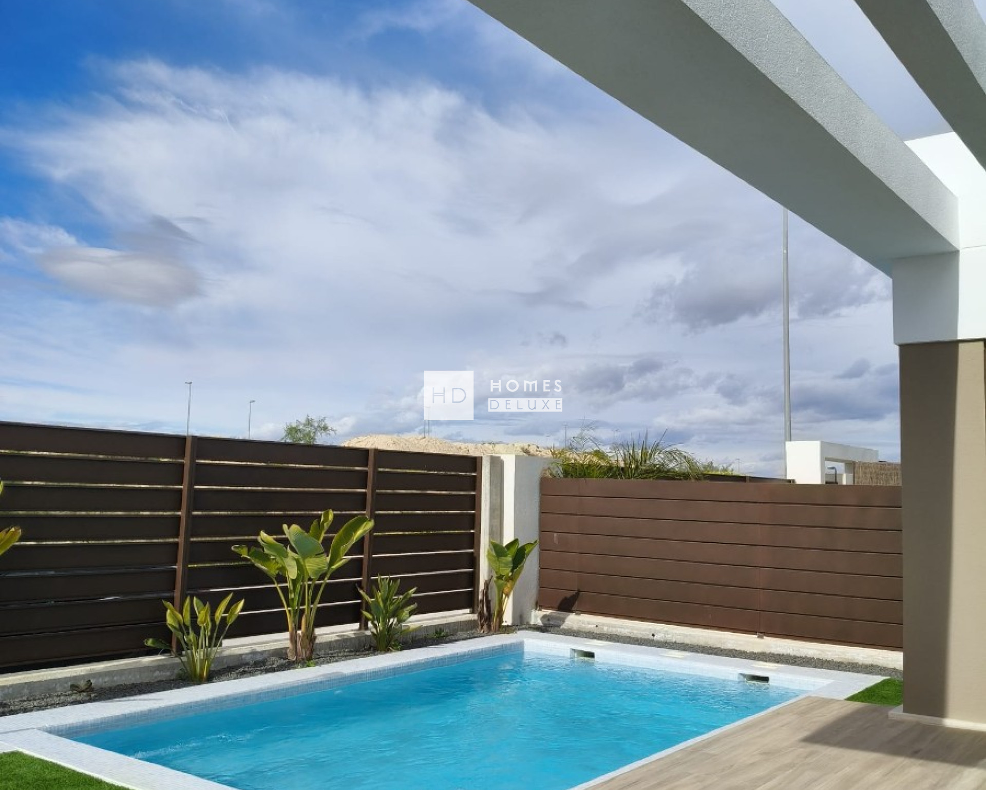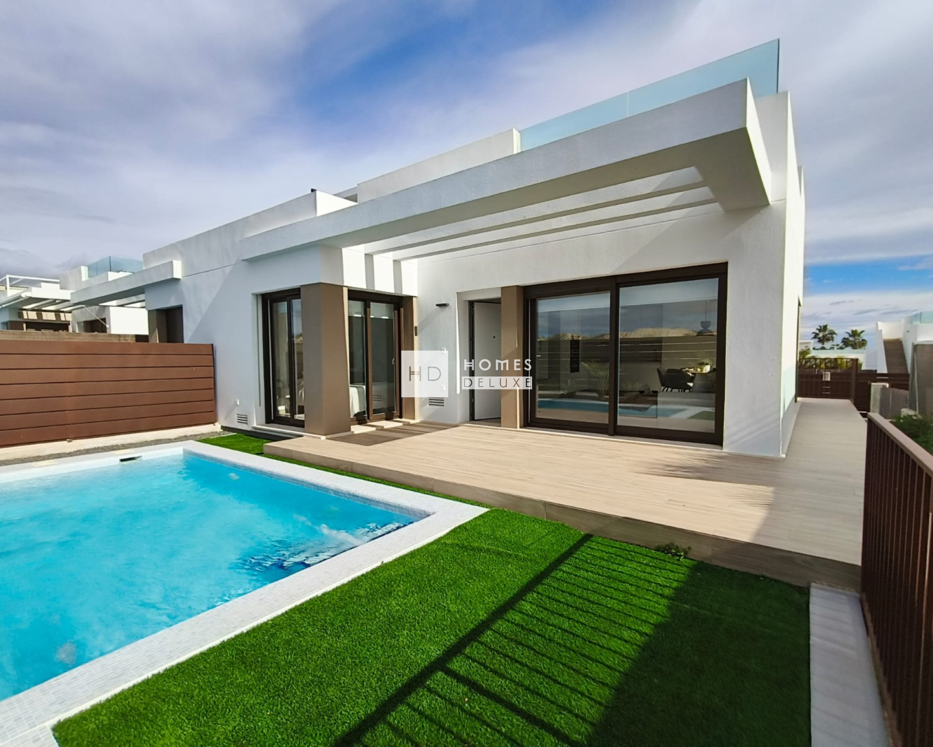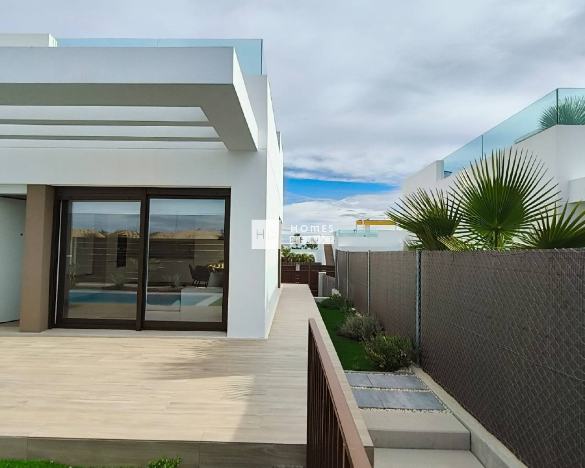 Villa jumelée neuve avec 3 chambres, 2 salles de bains et piscine privée, située dans le quartier résidentiel de Vistabella Golf Resort - Los Montesinos (Alicante), à proximité de toutes les commodités, notamment un supermarché, des bars et des restaurants, et à proximité d'autres lieux d'intérêt tels que les lagunes de Torrevieja, Guardamar del Segura et Orihuela Costa.