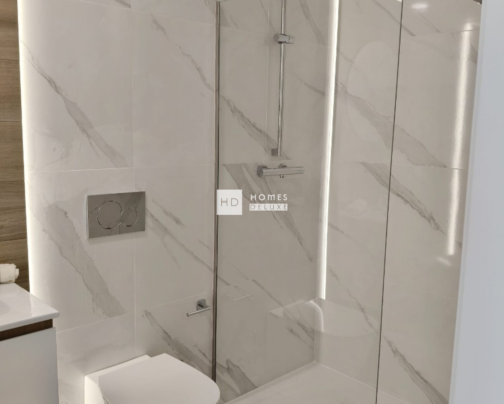 Cette villa clé en main est entièrement meublée et comprend des extras tels que des appareils électroménagers de cuisine, des luminaires, des panneaux solaires, un solarium sur le toit et un jardin paysager.